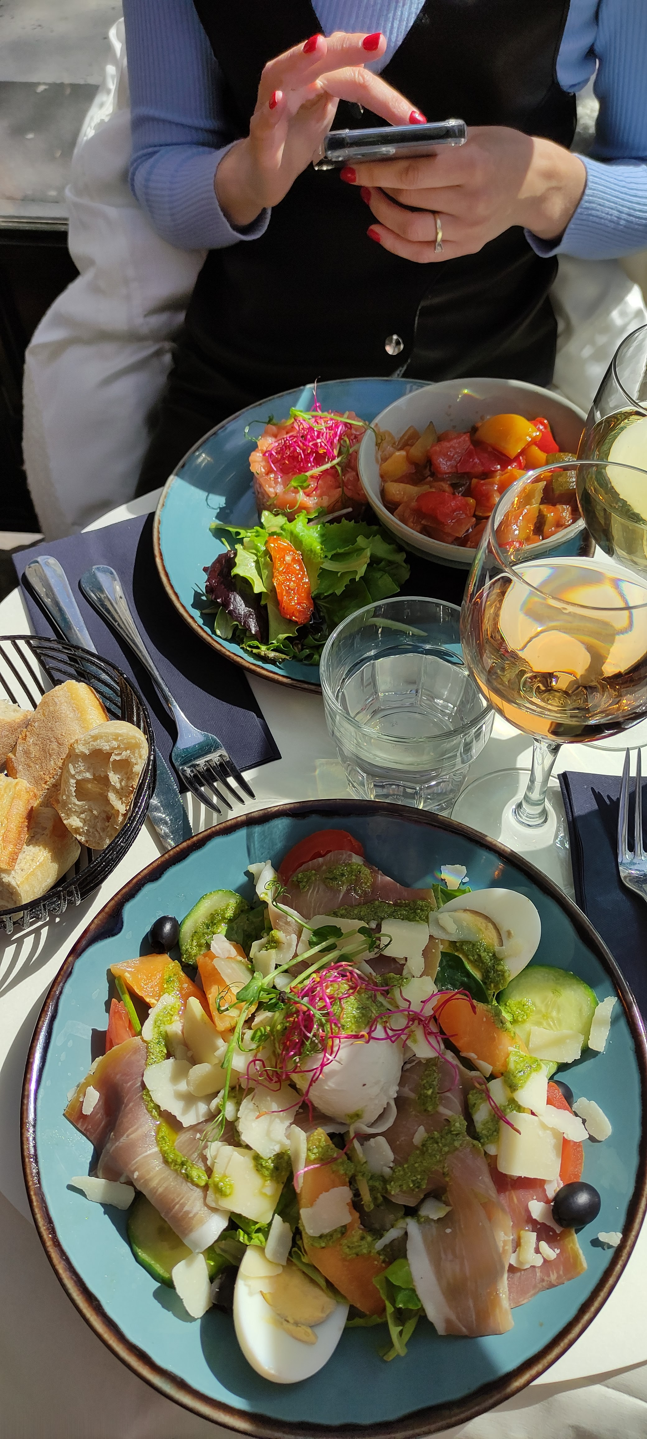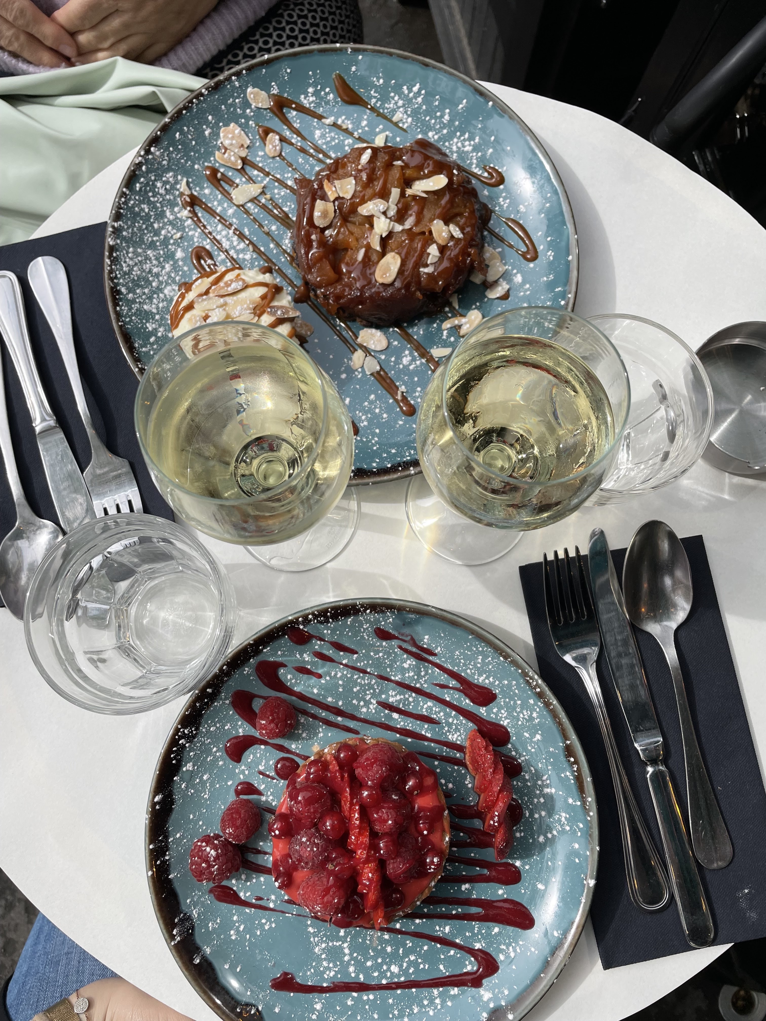Mais, pourquoi ce restaurant était vide alors qu’il y avait des files d’attente à 400 m !? Eh bien, je ne serai pas vous dire ! Nous avons été chaleureusement accueillis, idéalement placé sur une table pour deux en alcôve. Un régal régressif : coquillette jambon truffe, qui malgré la petite assiette cache une grande quantité. PS : quand nous sommes partis, la terrasse était pleine comme celle des voisins 😎