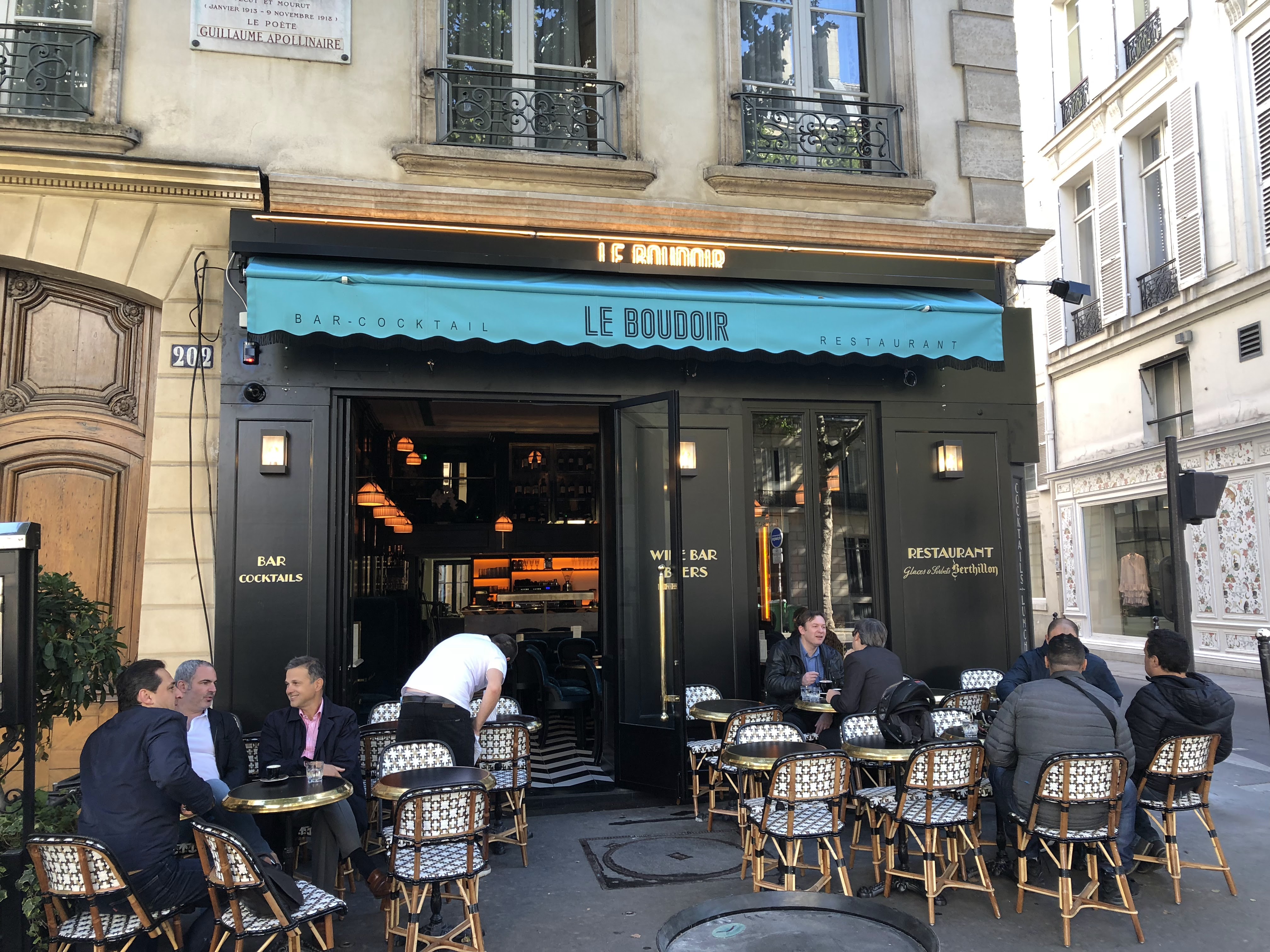 Ma femme et moi avons passé les dernières nuits d'un long voyage en France cet été à Paris et nous sommes très heureux de l'avoir fait ! Nous avons découvert Le Boudoir, un petit bijou du 9ème caché bien en vue sur le boulevard Saint Germain face aux rangées de charmants restaurants des ruelles voisines du 9ème que la plupart recherchent. L'atmosphère est belle à l'intérieur et subtile depuis la rue, vous pourriez donc passer à côté. Ne le faites pas. Cela vaut la peine d'y aller pour rencontrer Coco et Carla, deux des personnes les plus chaleureuses et gentilles que nous ayons rencontrées sur la planète. La nourriture est au rendez-vous, l'hospitalité est superbe et l'environnement est tout à fait ce que vous souhaitez pendant vos vacances, que vous le ressentiez en marchant ou non. Nous y sommes allés trois jours sur quatre sans regret et prévoyons d'y retourner.