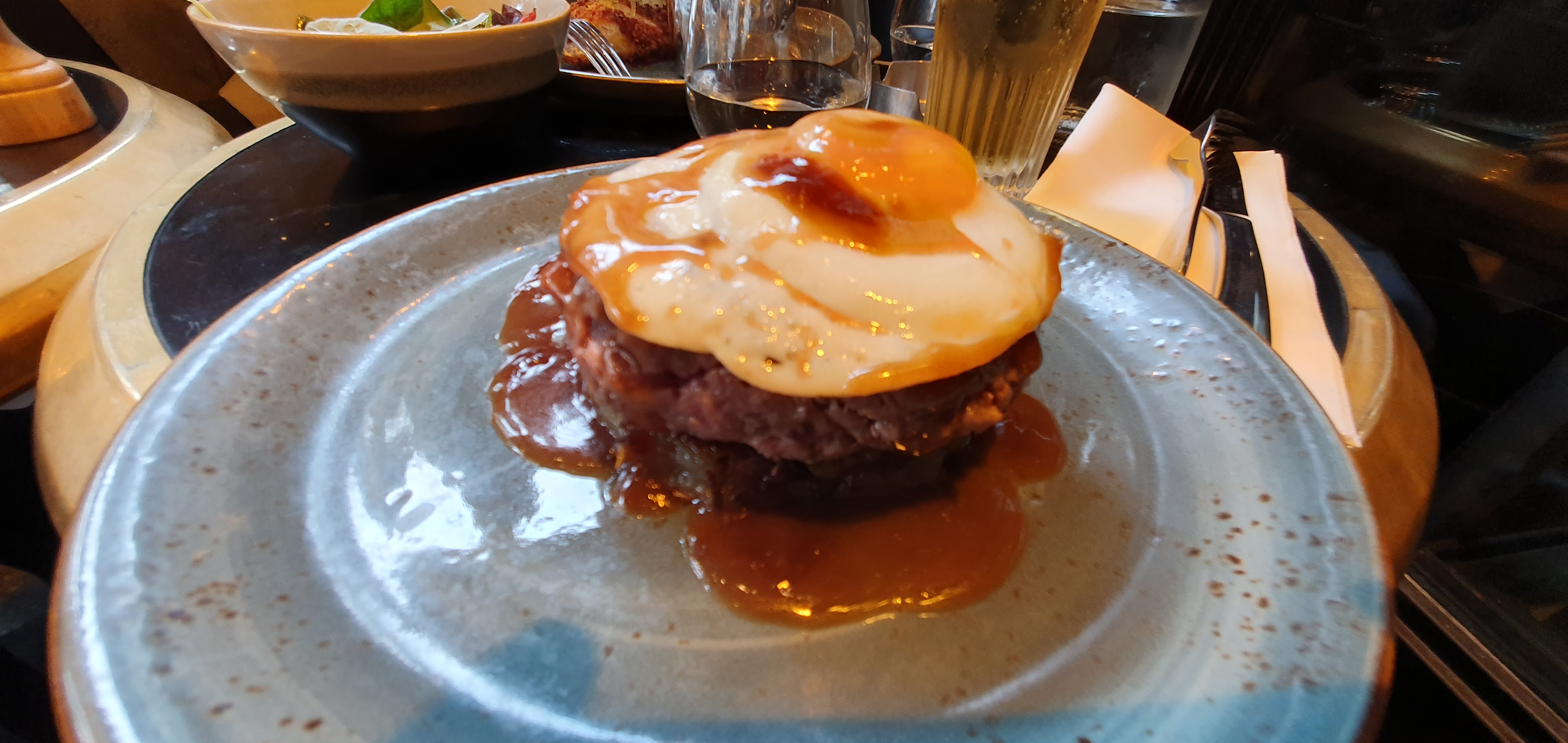 Très agréable moments bien accueilli Table de deux on a pris steak a cheval et tataki de thon Je recommande fortement Et remercie le sourire du personnel