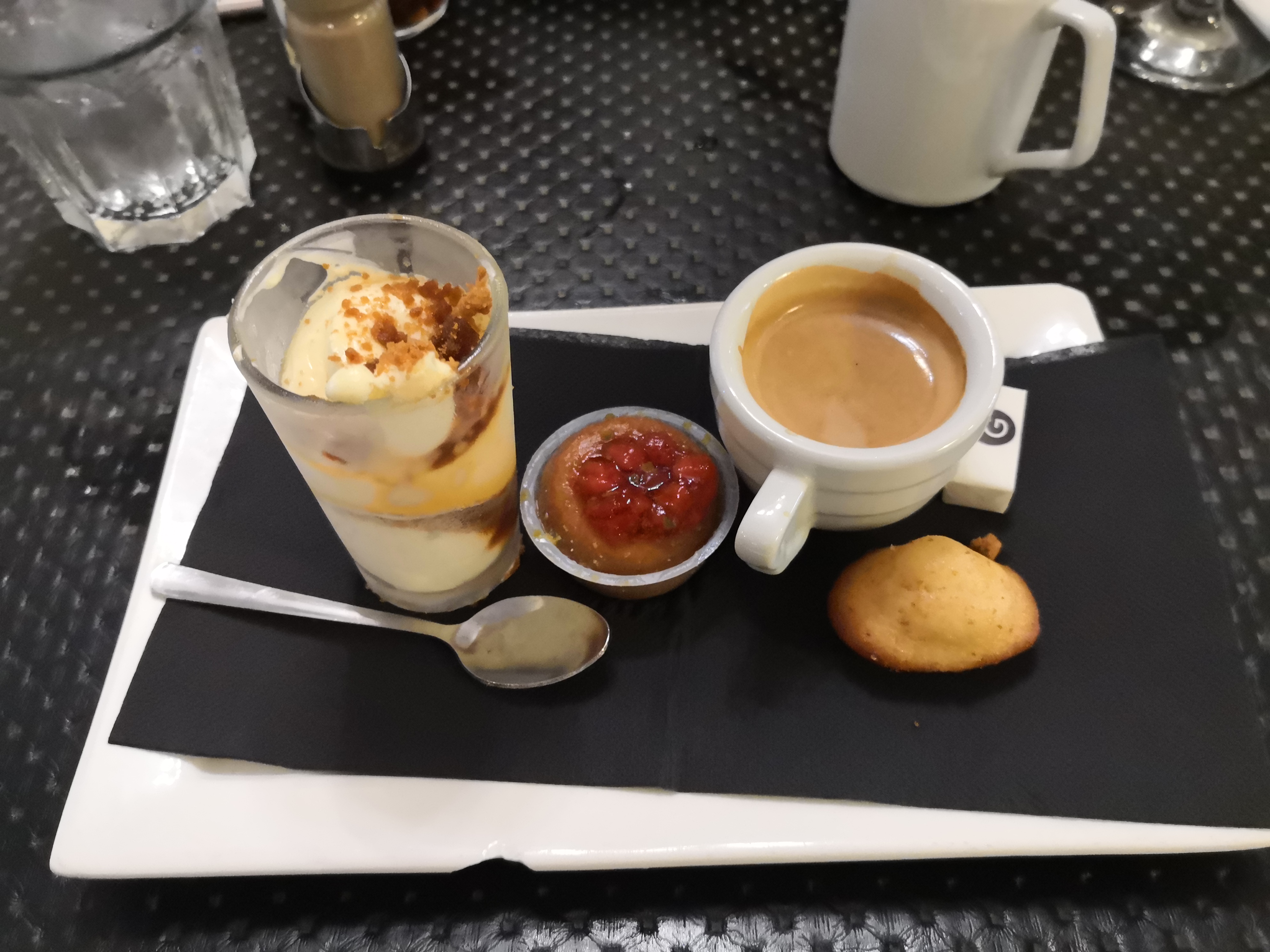 Décevant Menu plat du jour café gourmand pour 14 euros Plat du jour décevant :langue de bœuf servie avec la peau, retour cuisine! Deuxième assiette pire encore morceau mal découpées avec gélatine cette fois! Sortie en ayant faim! Aucun geste commercial Je n y remets plus les pieds et ne recommande pas