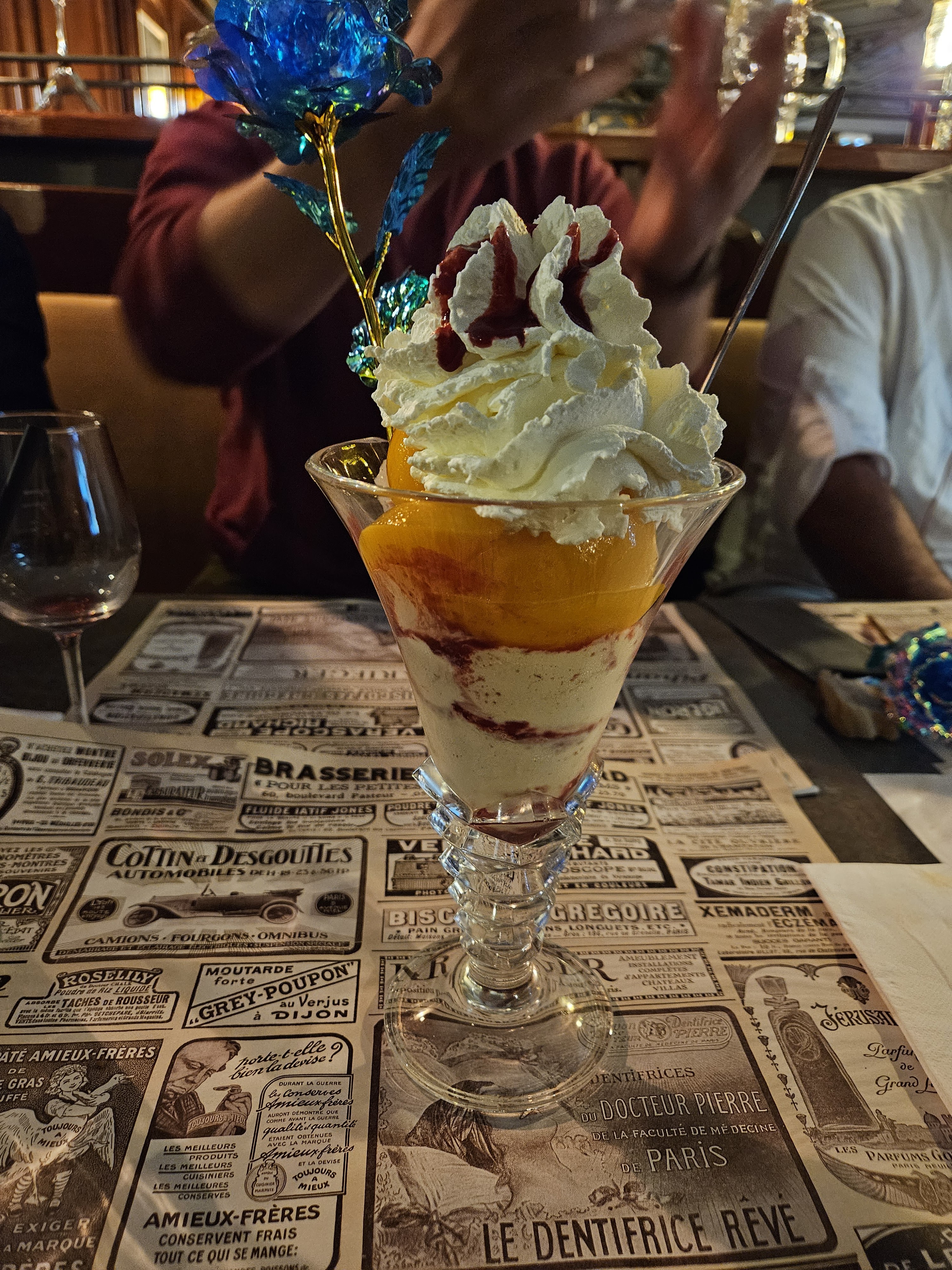 Belle découverte !!! Nouveau propriétaire (depuis 2023), belle carte, serviable et rapide. Arrivée tardive, en plein service sur un week-end de festival avec un enfant… aucun souci, placement au calme, service rapide, serveur cool sans chichi. Les quantités sont plutôt bonnes surtout sur les glaces. PS: Micro bémol, la chantilly en bombe qui ne tient pas (pas maison). Si vous arrivez à en faire de la véritable pour l’été, ça serait un vrai plus.