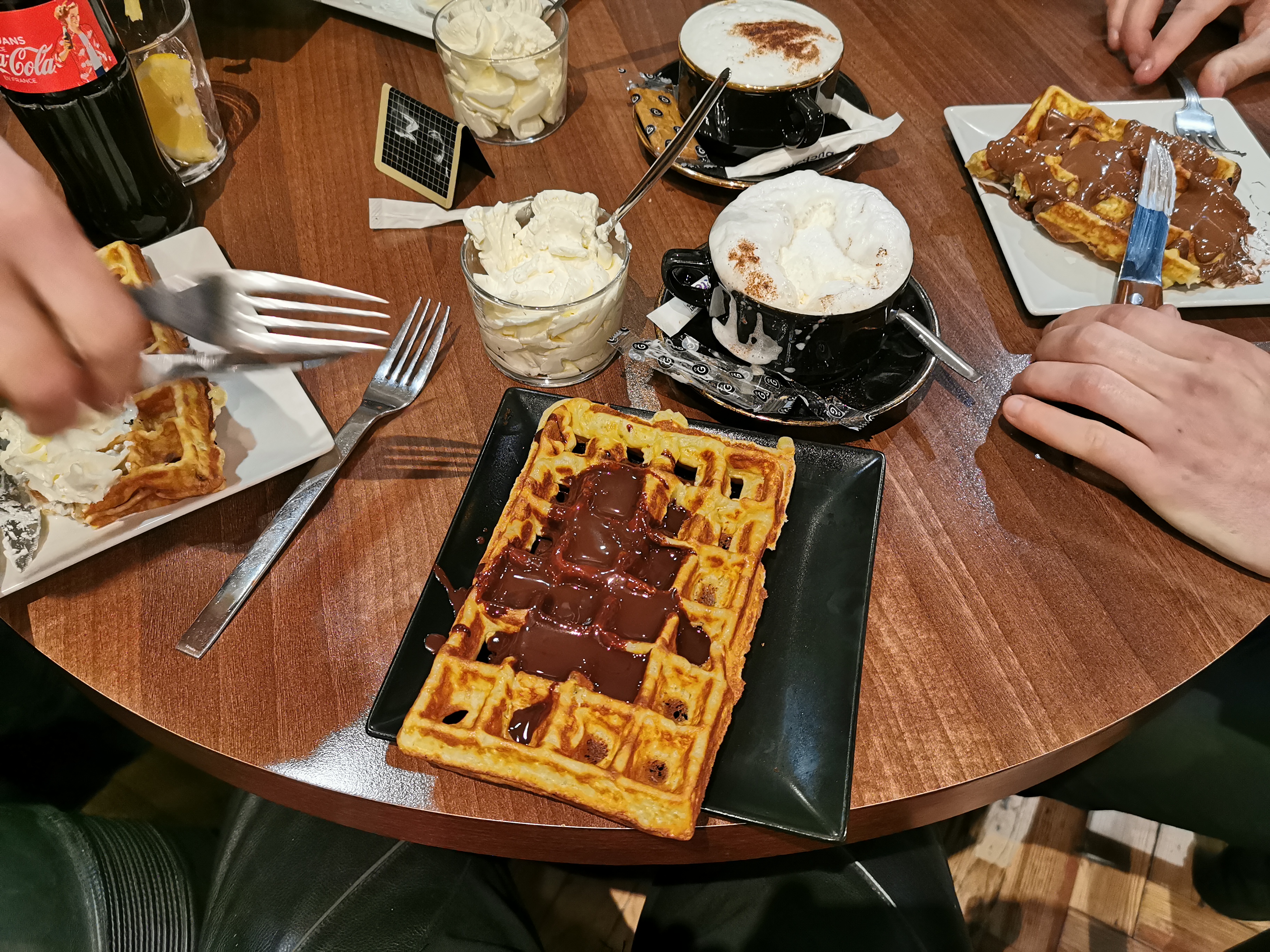 Très très long, personnel pas agréable, gaufre ultra grasse et immangeable (j’ai un doute qu’elle soit faite maison). Si vous voulez passer un bon moment éviter cette établissement……….