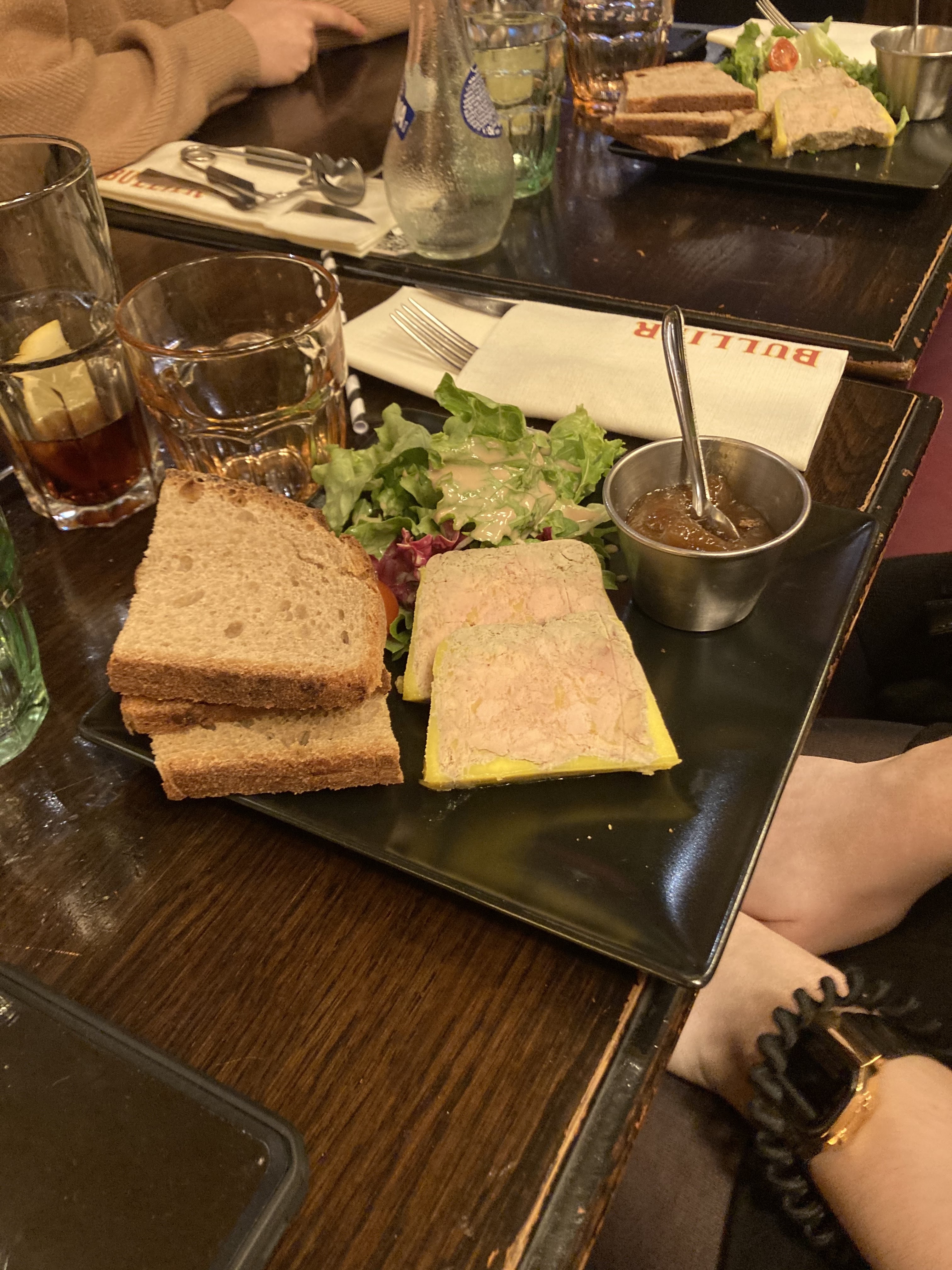 j'ai déjeuner au bullier courant février. Foie gras servi avec juste assez de toast pour une demie portion, le produit n'était pas de bonne qualité (le bloc s'effritait au moindre coup) et servi avec une salade dont la sauce industrielle donnait un goùt bizarre à l'ensemble... La Viande hachée du Hamburger fait maison était saignante et froide au coeur (ce qui fait penser à du décongelé). Un verre de vin rouge argentin que je n'ai pas fini. Le service en salle était lui impeccable. Près de 50€ pour quelque chose qui en vaut beaucoup moins. Je déconseille, mangé de la viande décongelée on peut le faire à moindre coût.