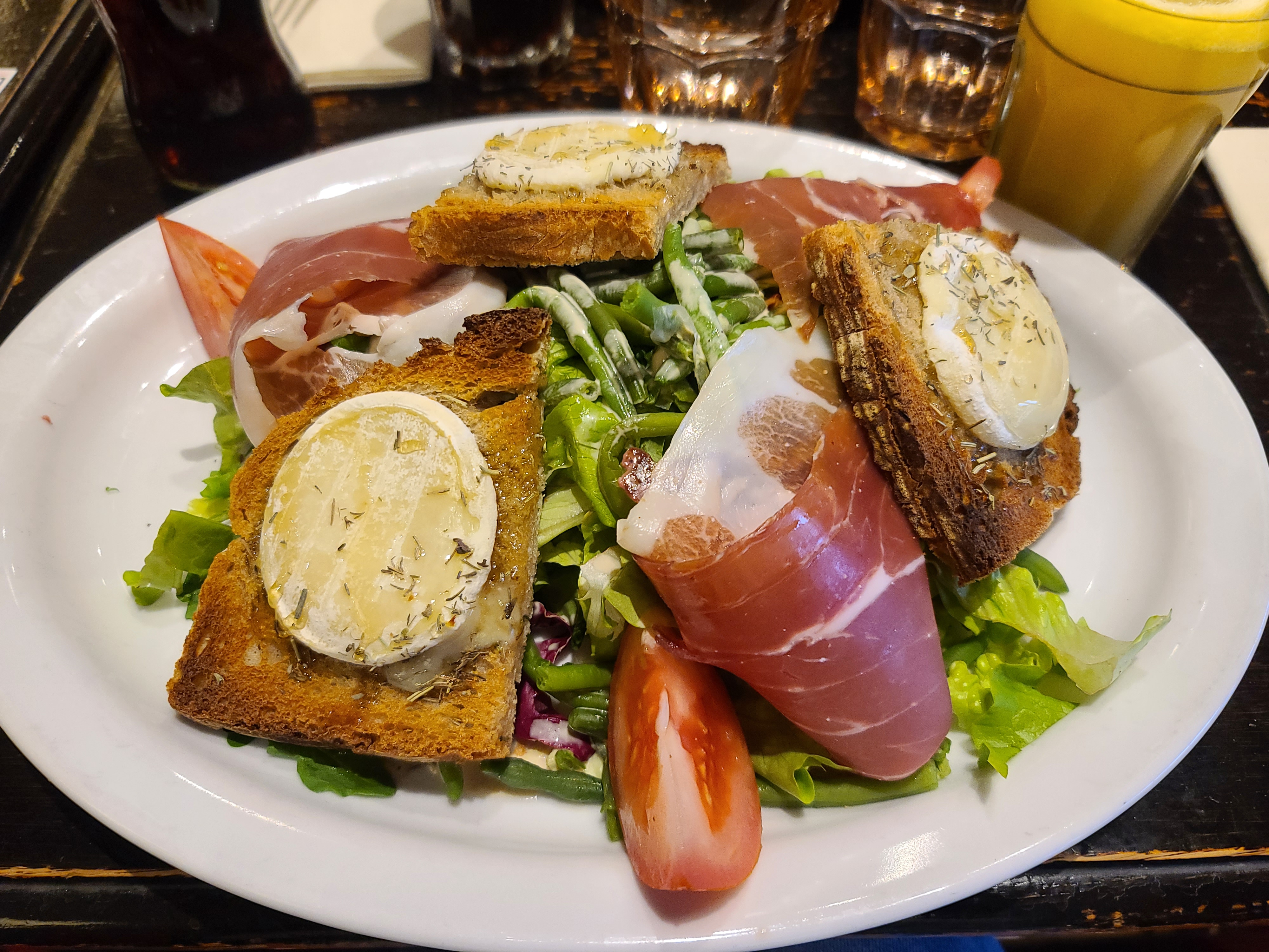 C'était le meilleur restaurant que nous aurions pu choisir à notre arrivée à Paris. Le serveur était sympathique et serviable. Il nous a donné un menu en anglais. L'espresso était si bon que j'en ai eu deux malgré l'heure tardive. La salade était au-delà de mes attentes et très fraîche. Très pittoresque et bon prix. Bonne atmosphère.