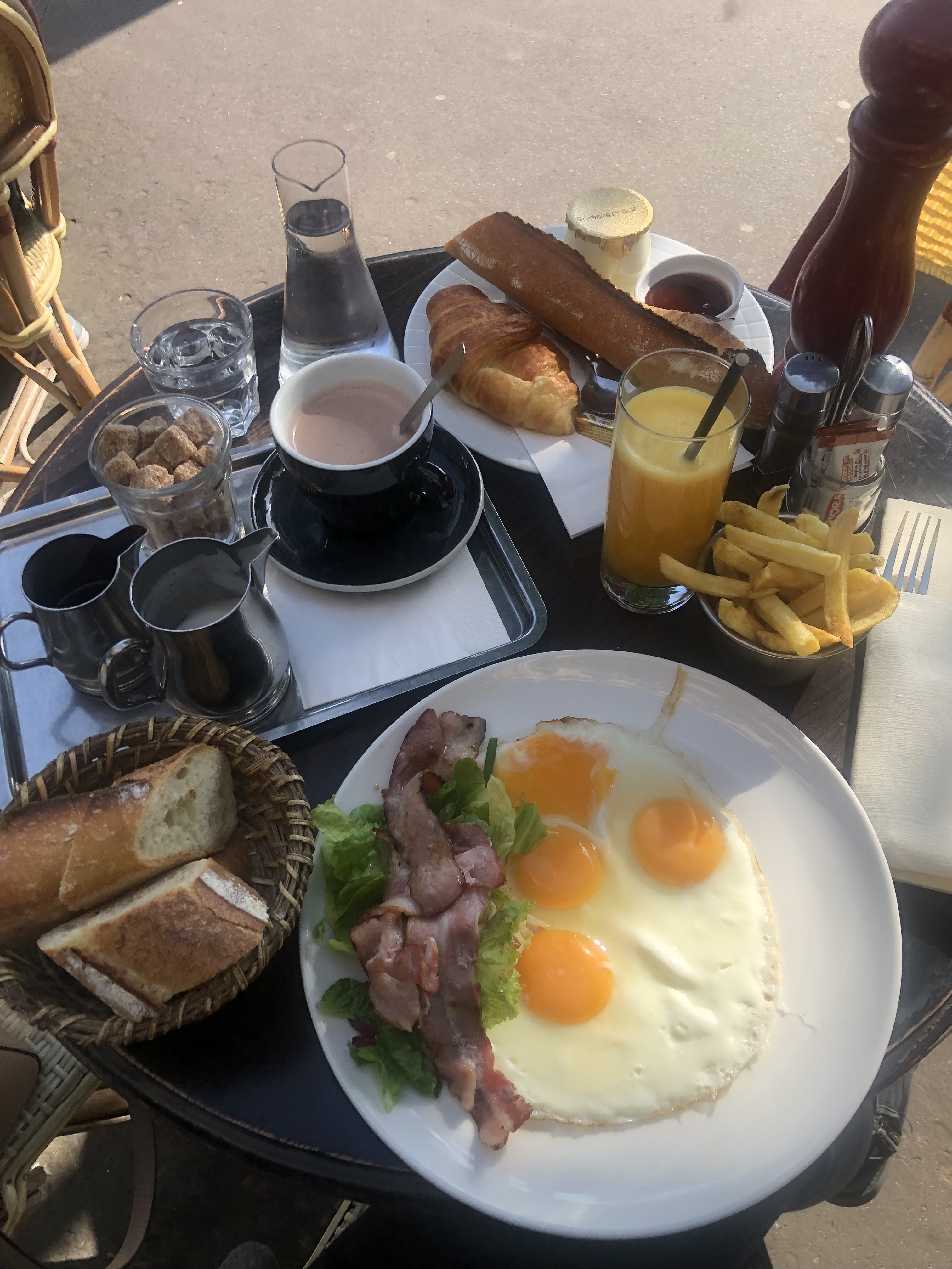 omelette frites et de multiples cafés avant et après. les serveurs étaient très agréables mais il fallait aller les chercher.