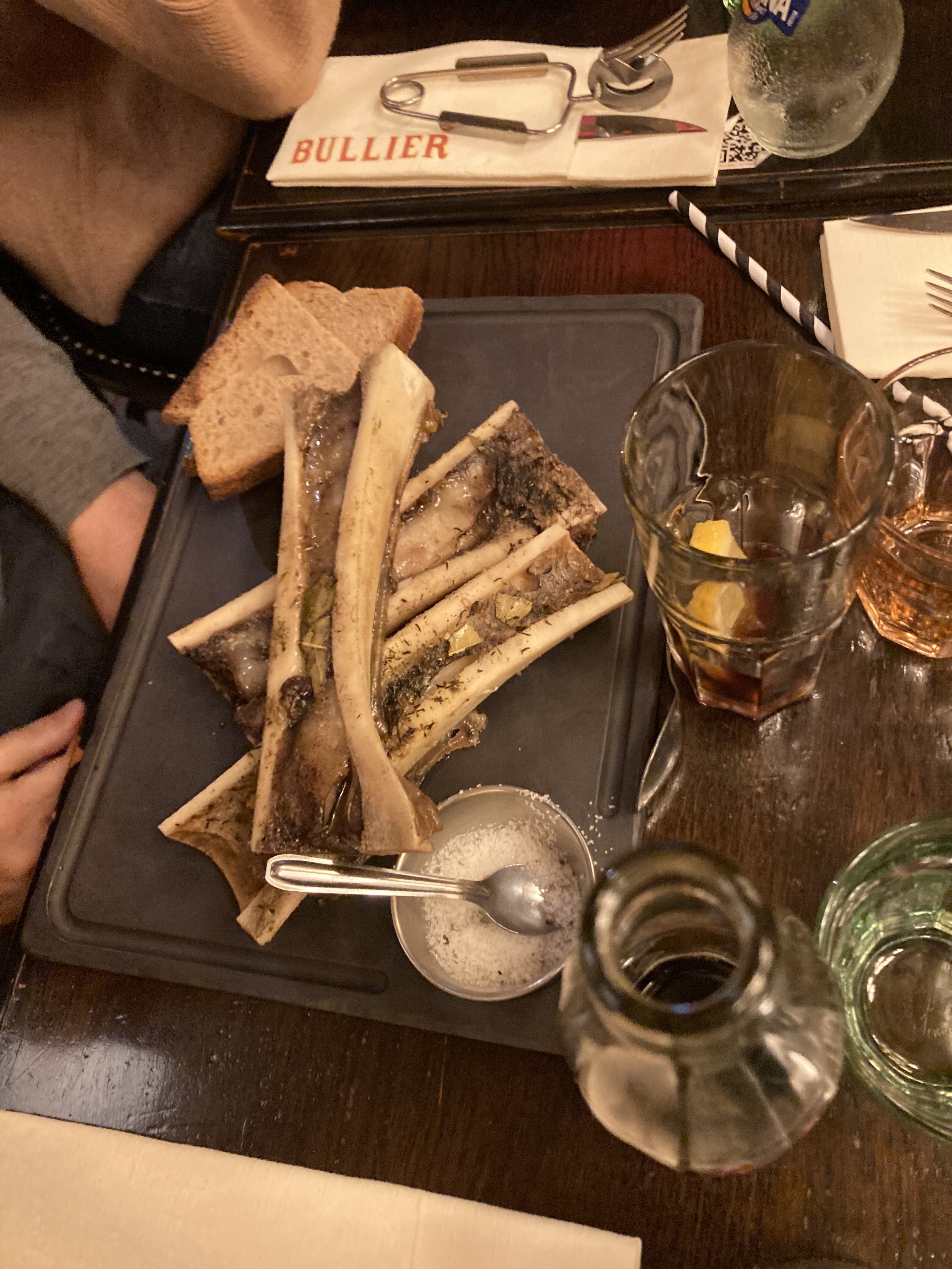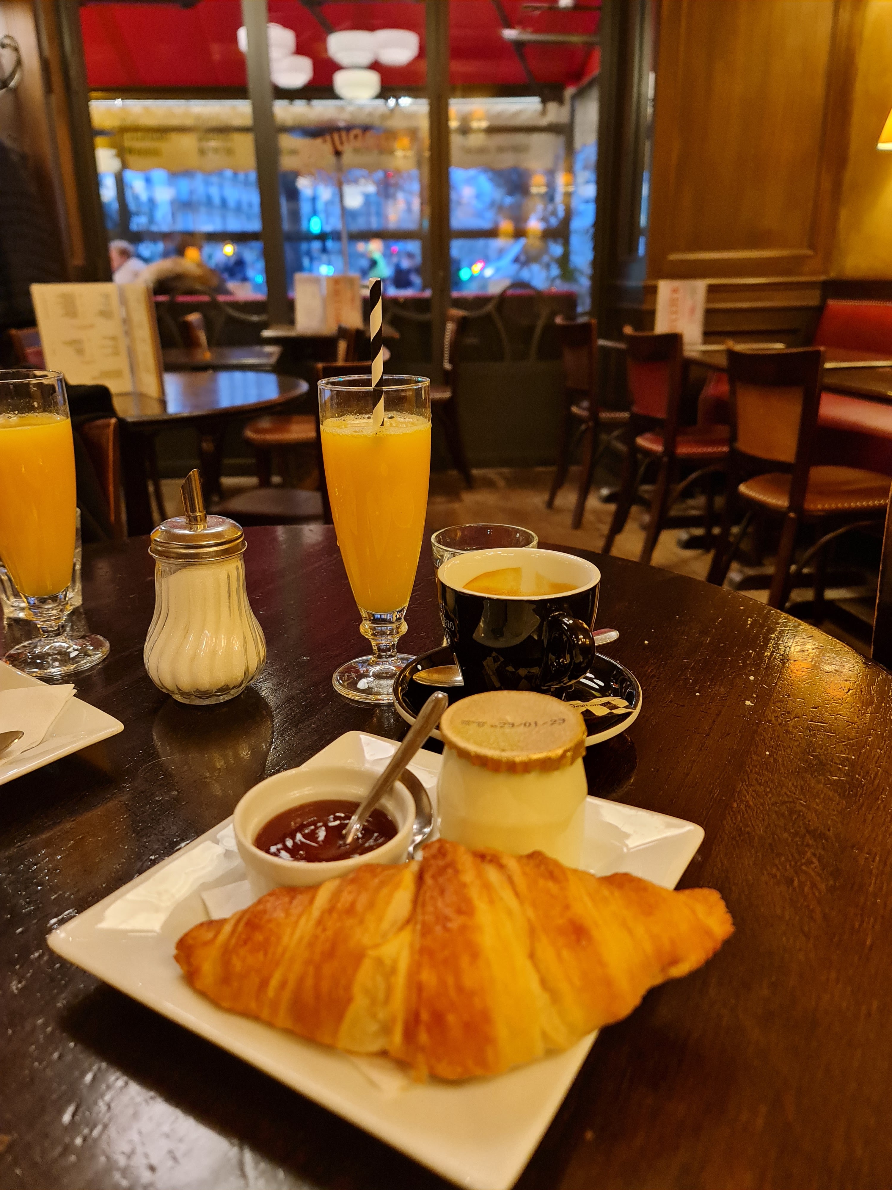 J’ai pris un petit déjeuné français à 13€. J’ai attendu un bon moment avant d’être servi alors que ce n’était pas blindé. Je reçois mon plateau, la moitié du pot de lait est rempli pour mon chocolat chaud, pas de sucre pour mon yaourt (qui est un simple Danone). Un jus d’orange sans goût. Ce n’est pas le Bullier que je connaissais !