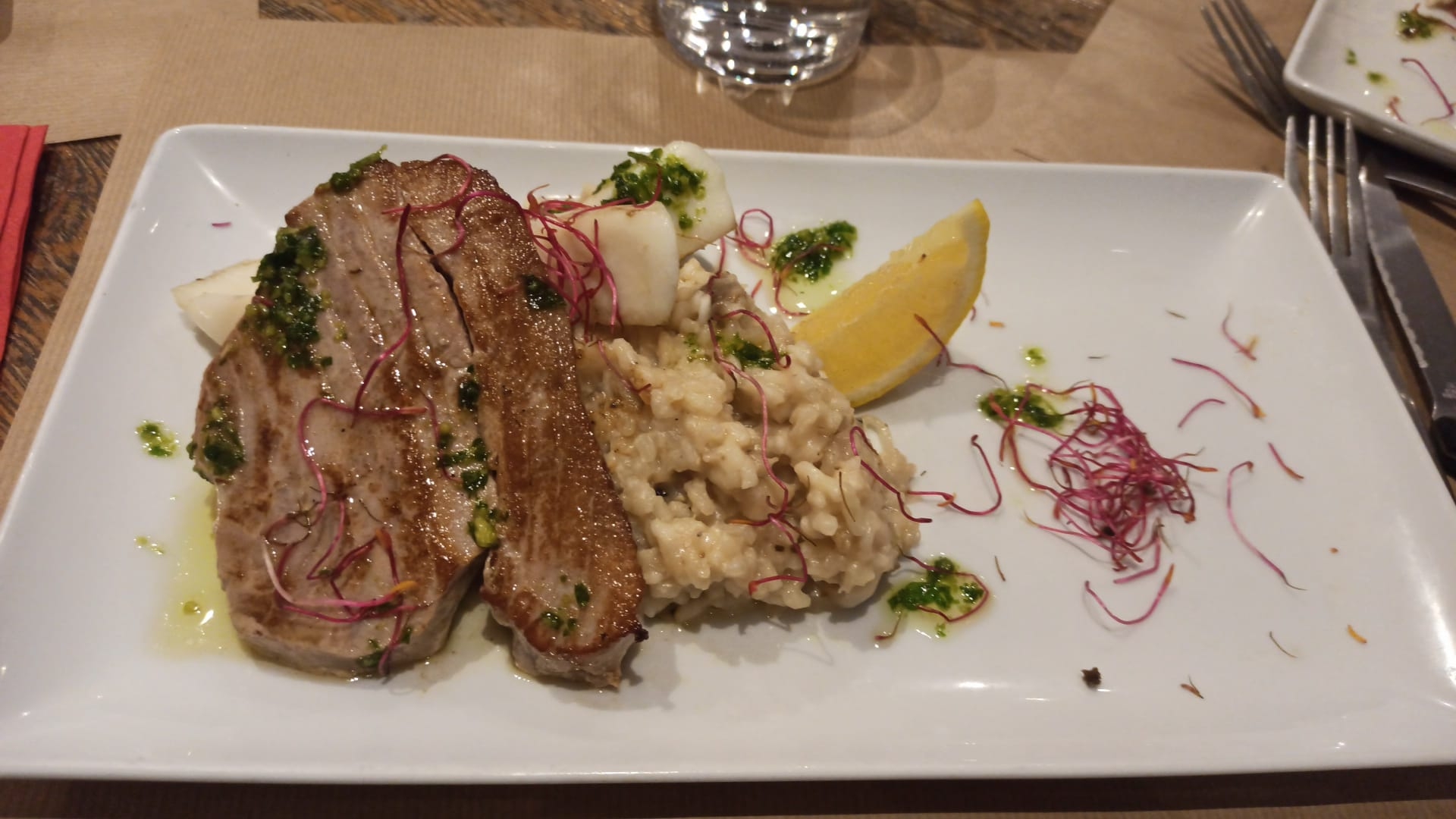 Menu excellent. Quiche aux trois fromages, risotto steak de thon et seiche et moelleux chocolat orange et un demi pour 20€. Service rapide et souriant. Nous reviendrons.