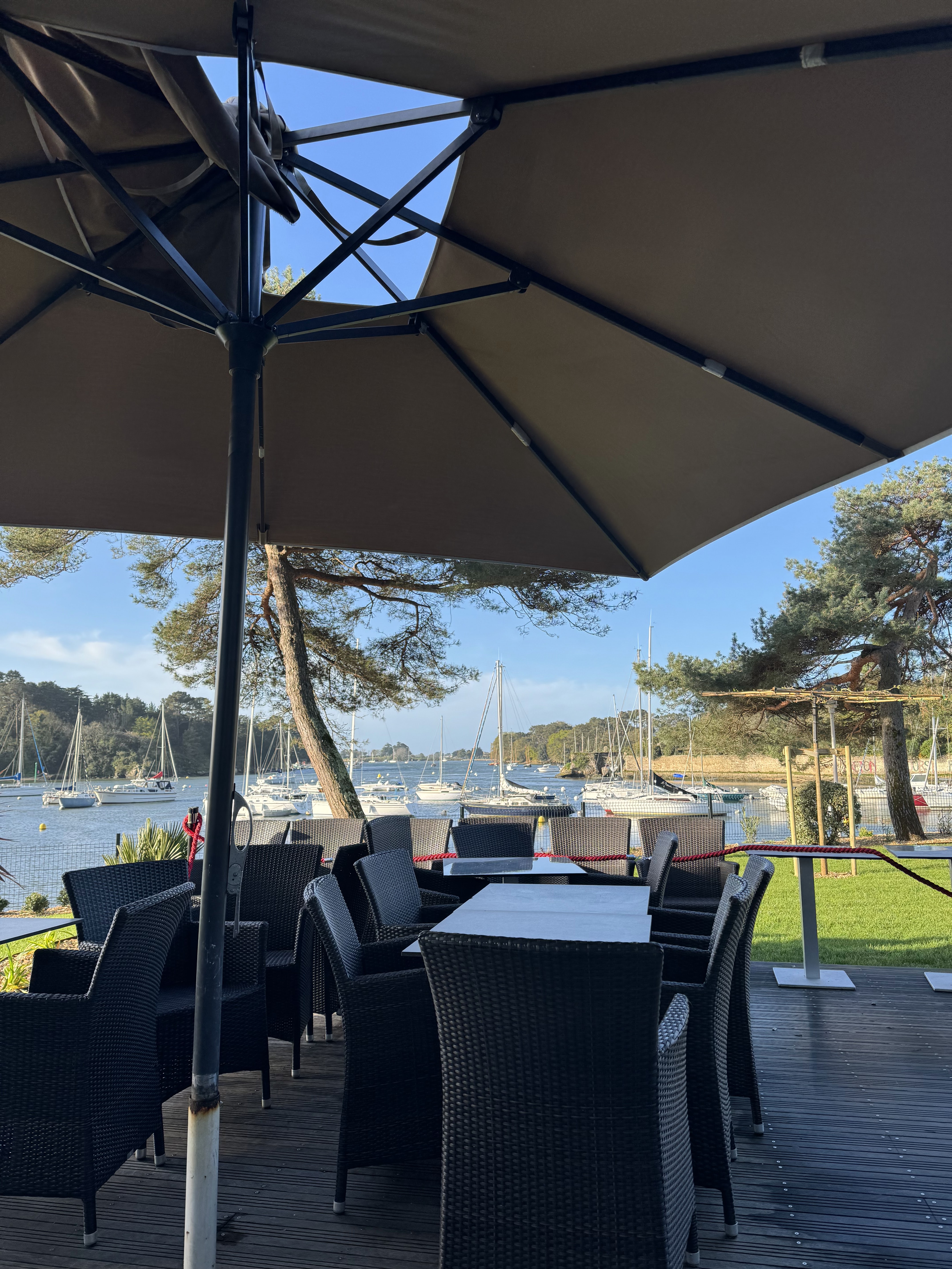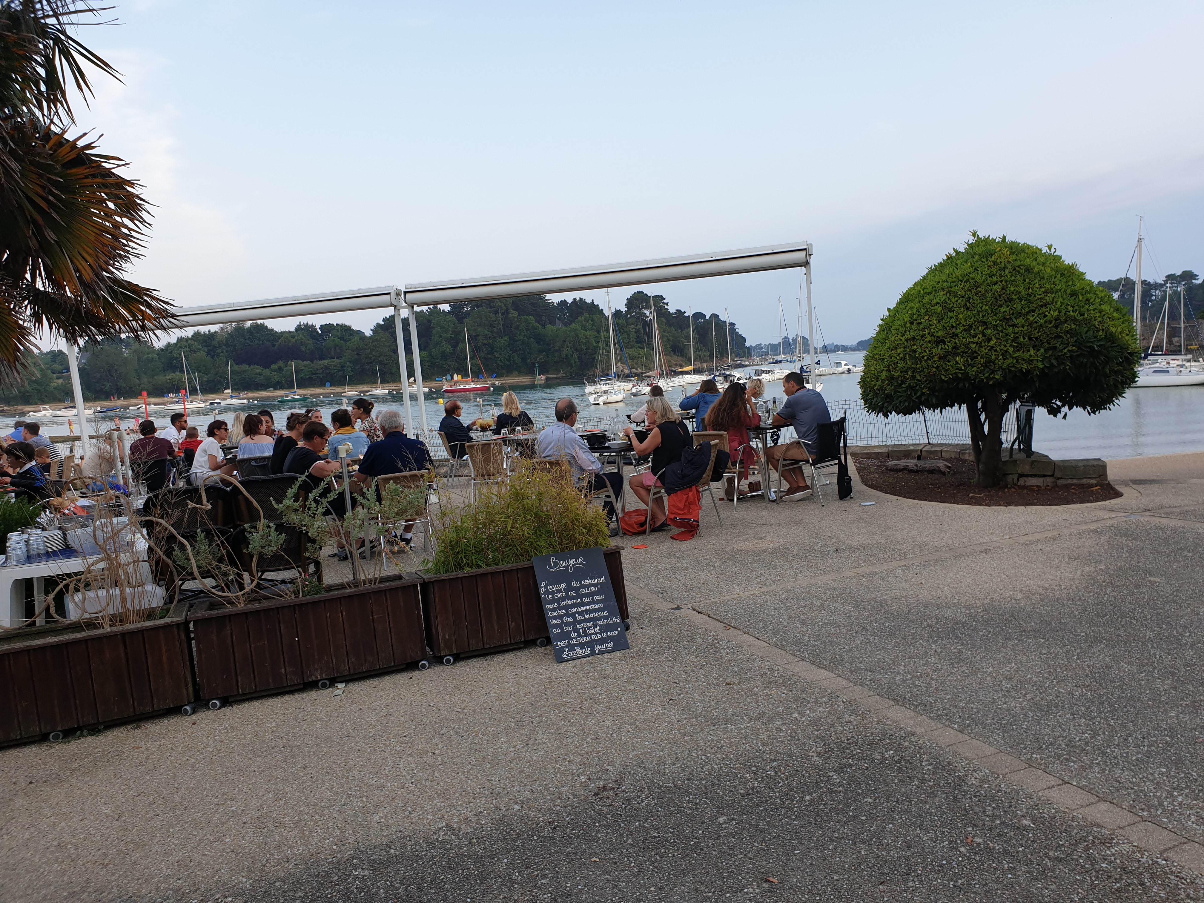 On y mange d'excellents produits de la mer. Crabes, homards, langoustines, huitres, palourdes, etc. Ce qui déjà en soi un bonheur. Mais la vue, que dire de la vue. L'une des plus jolies de Vannes.