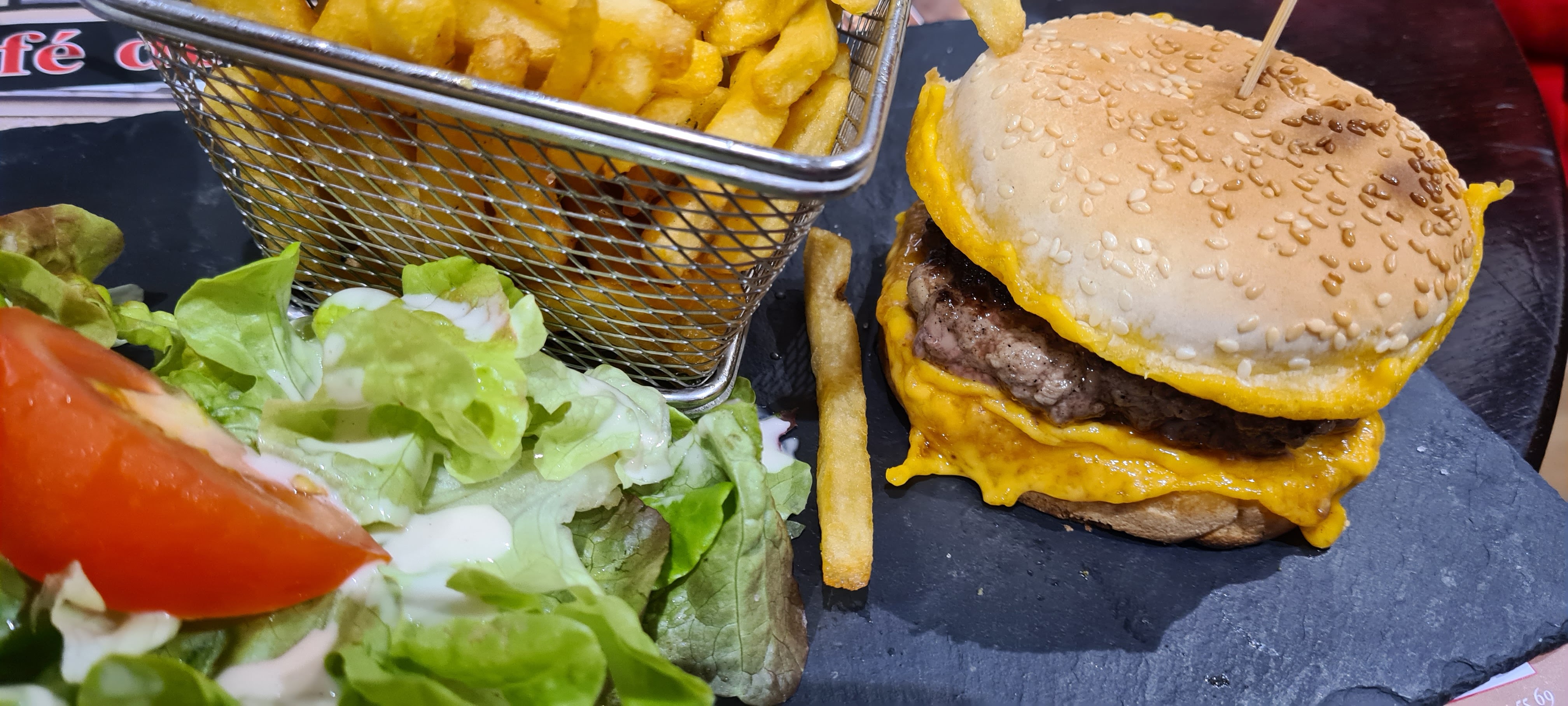 Nourriture délicieuse pour peu d'argent. Véritable café français où vous pourrez déguster de délicieux plats. Ne vous attendez pas à des délices culinaires ou à des tableaux dans votre assiette