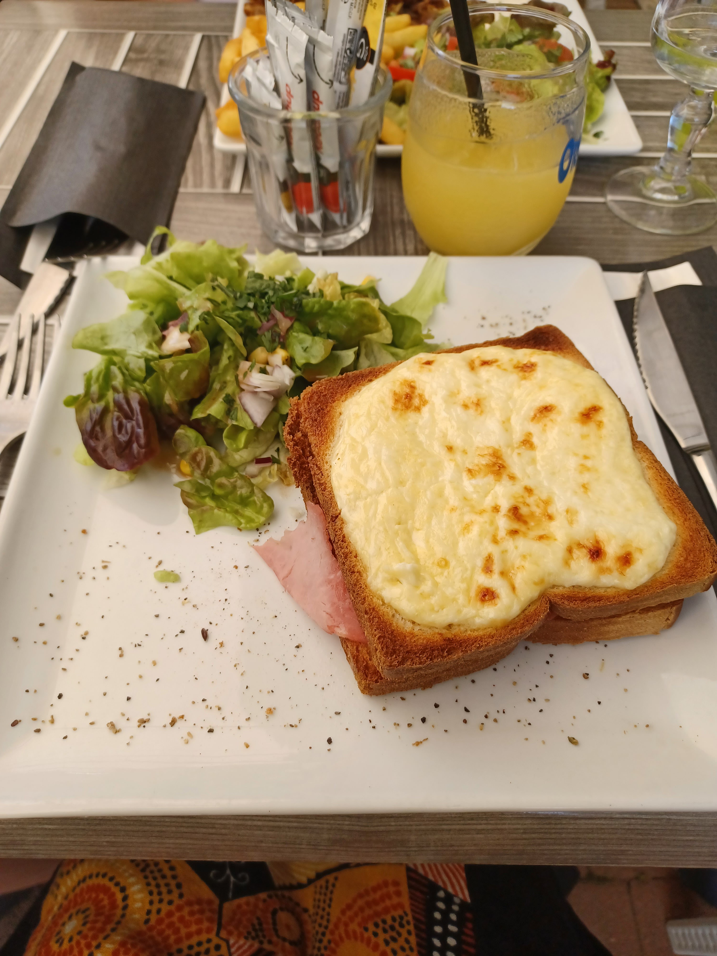 Le seul jour où il fait beau en plein mois de mars,1 seul serveuse la pauvre mais super sympa. Les plats servis 45 min plus tard, même des personnes arrivant après on été servis avant,et heureusement on a pris une salade césar et un croc Mr .