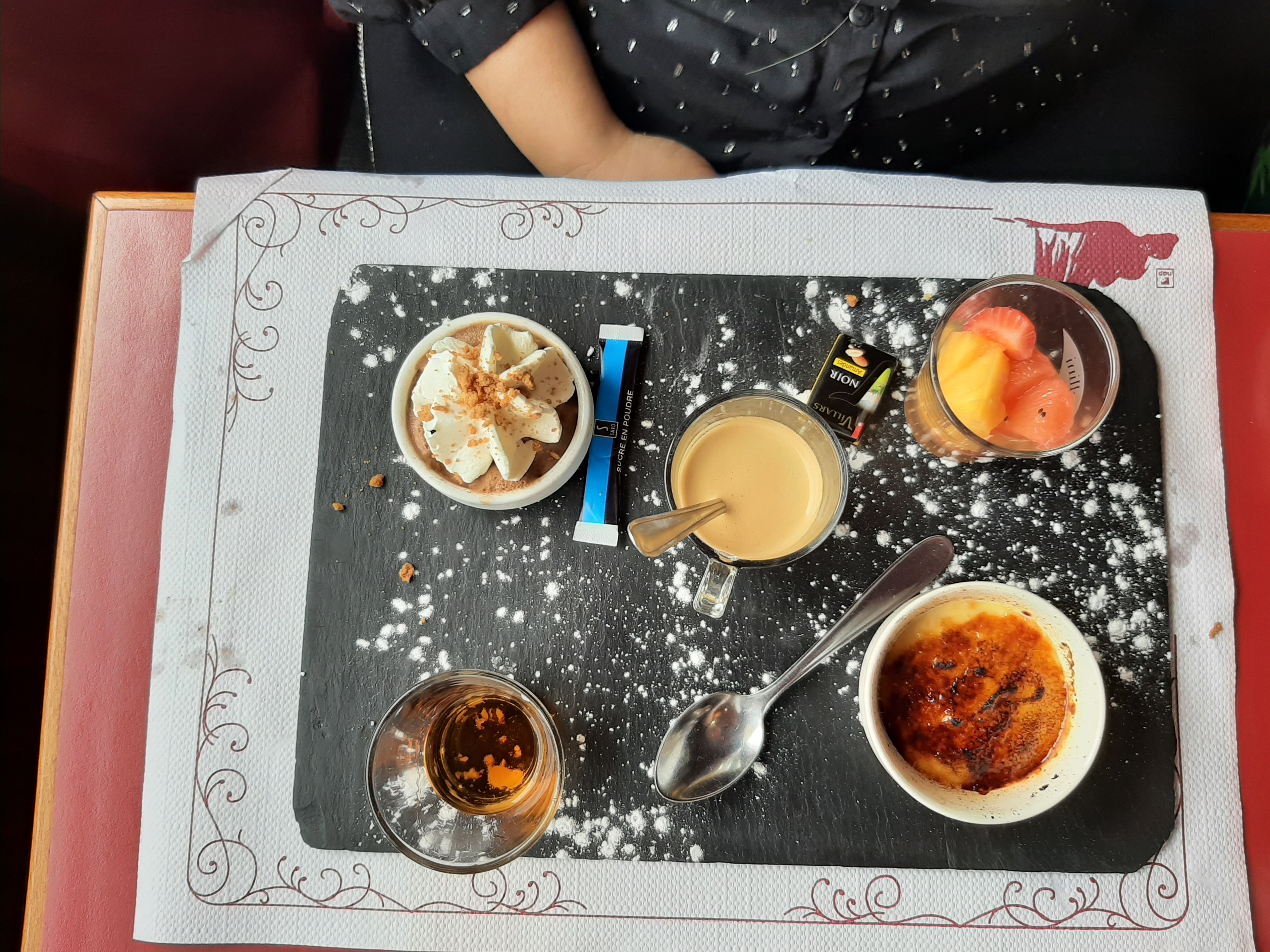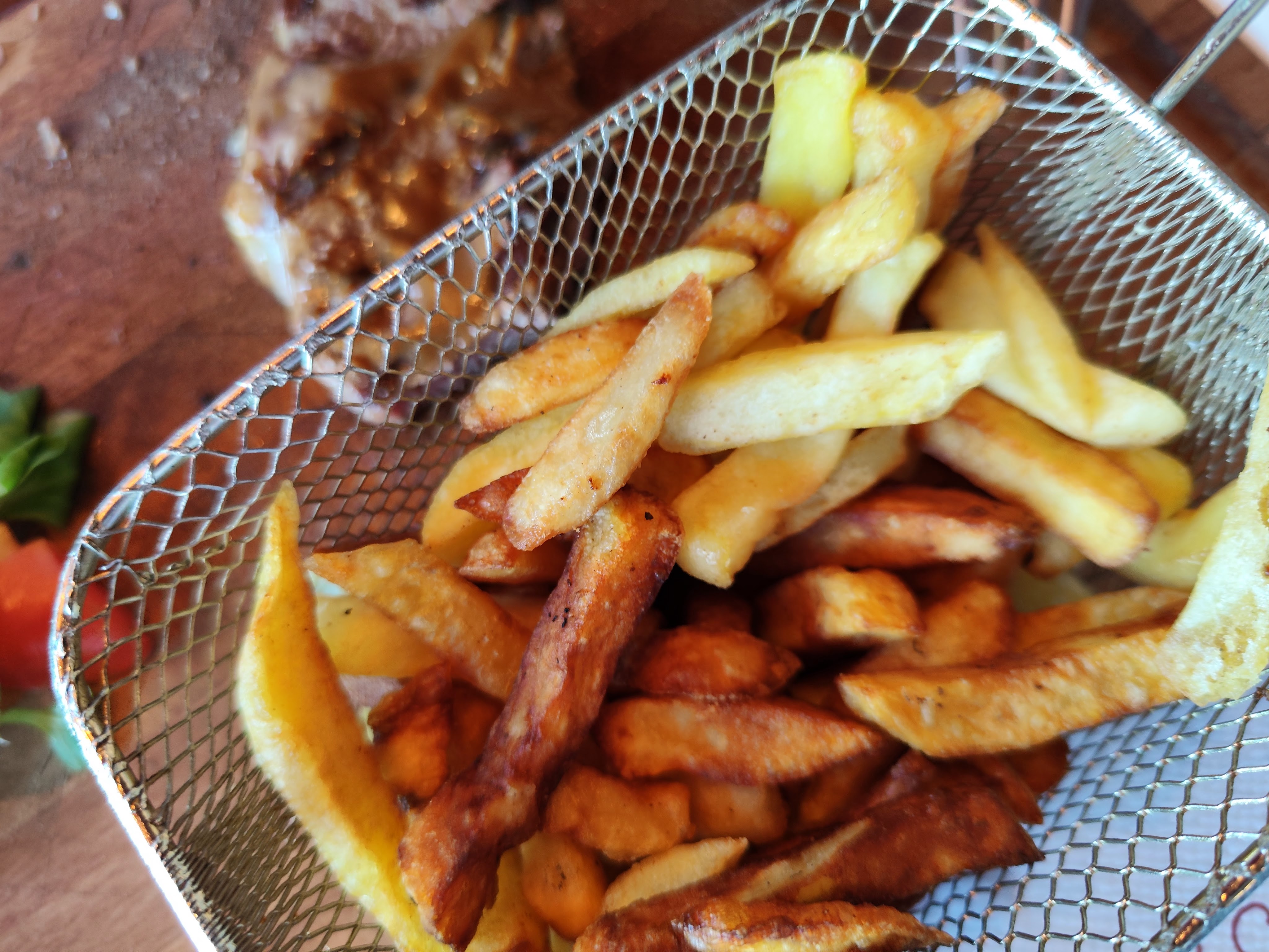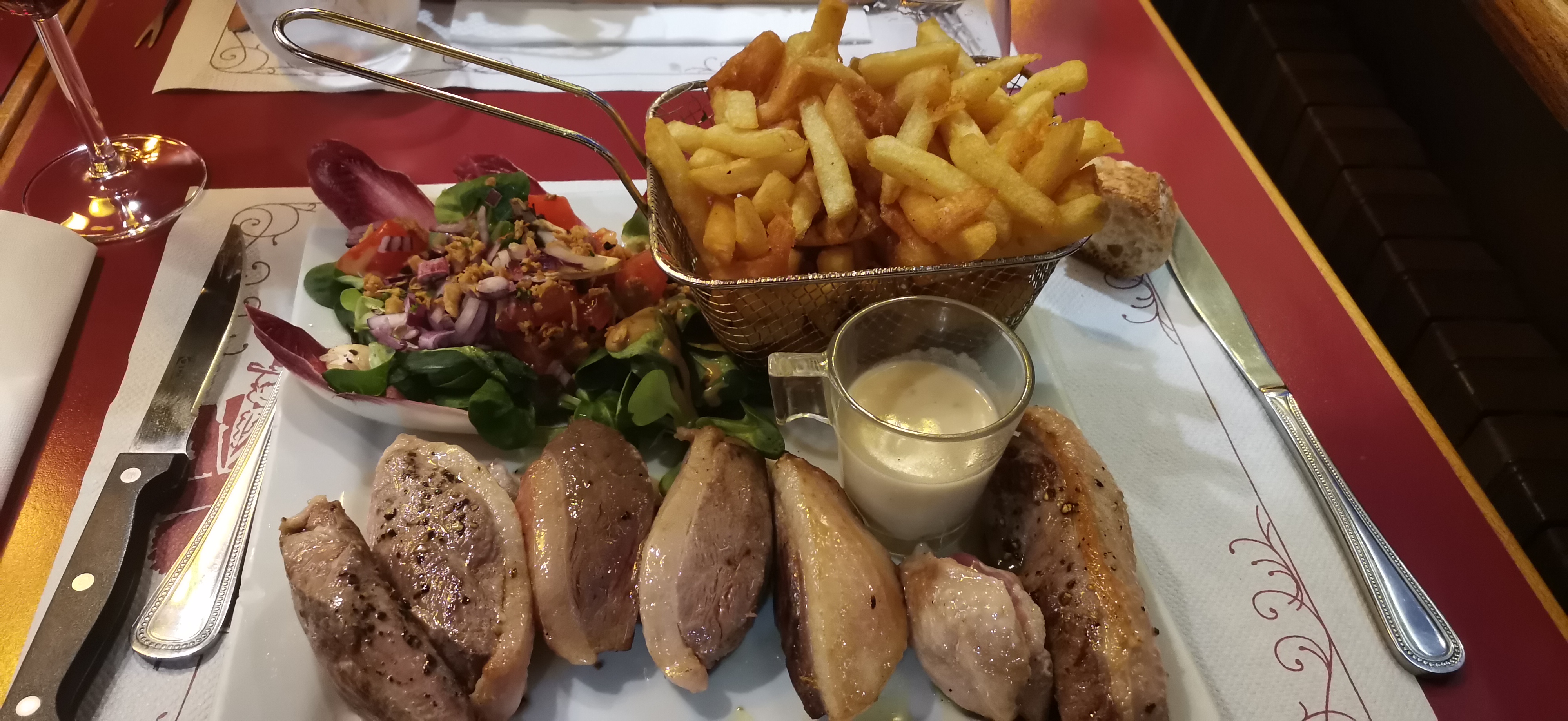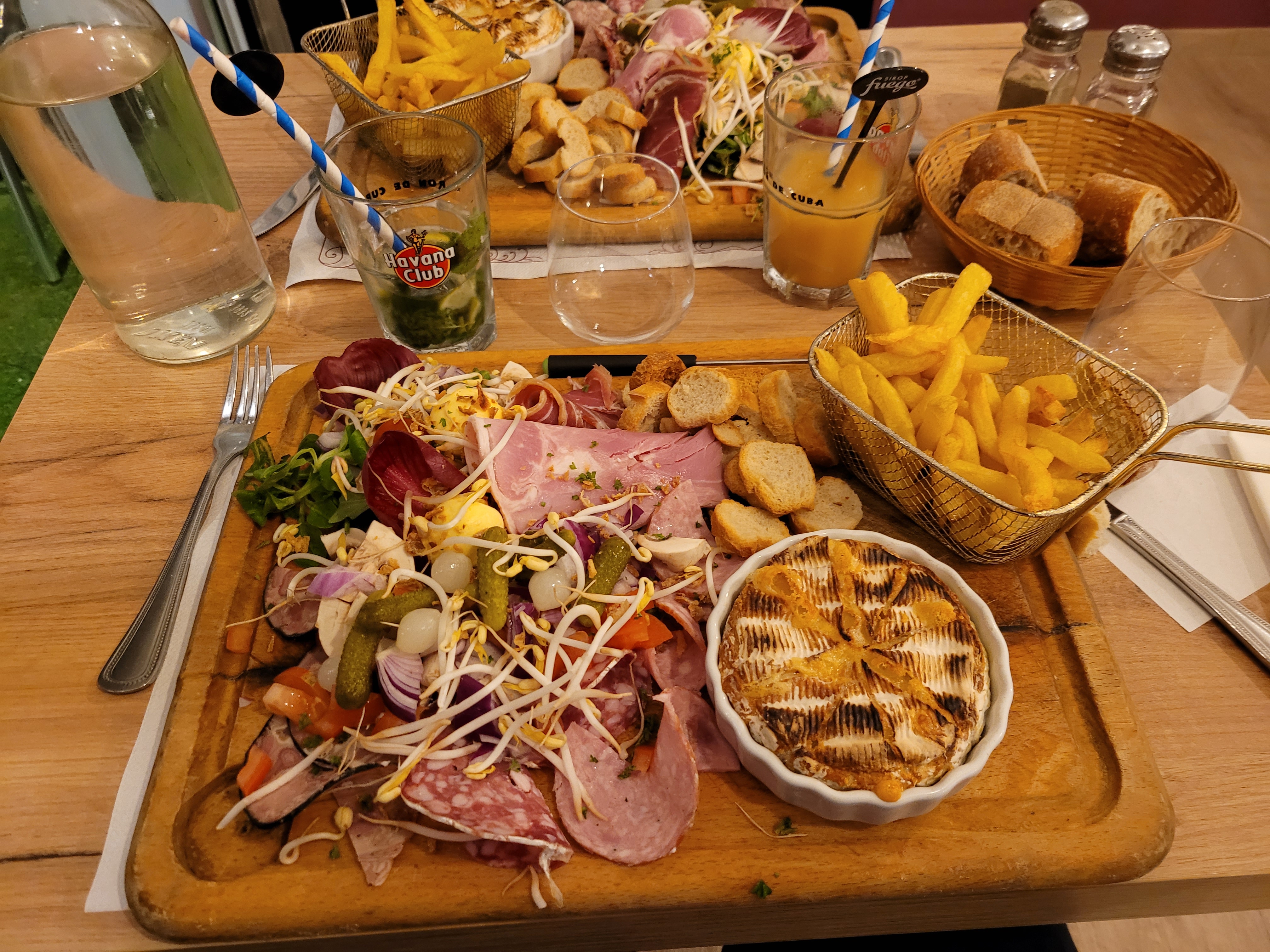 Planches de fondue de camembert très bonnes, frites passables. Mais crème brûlée ratée liquide et tiède