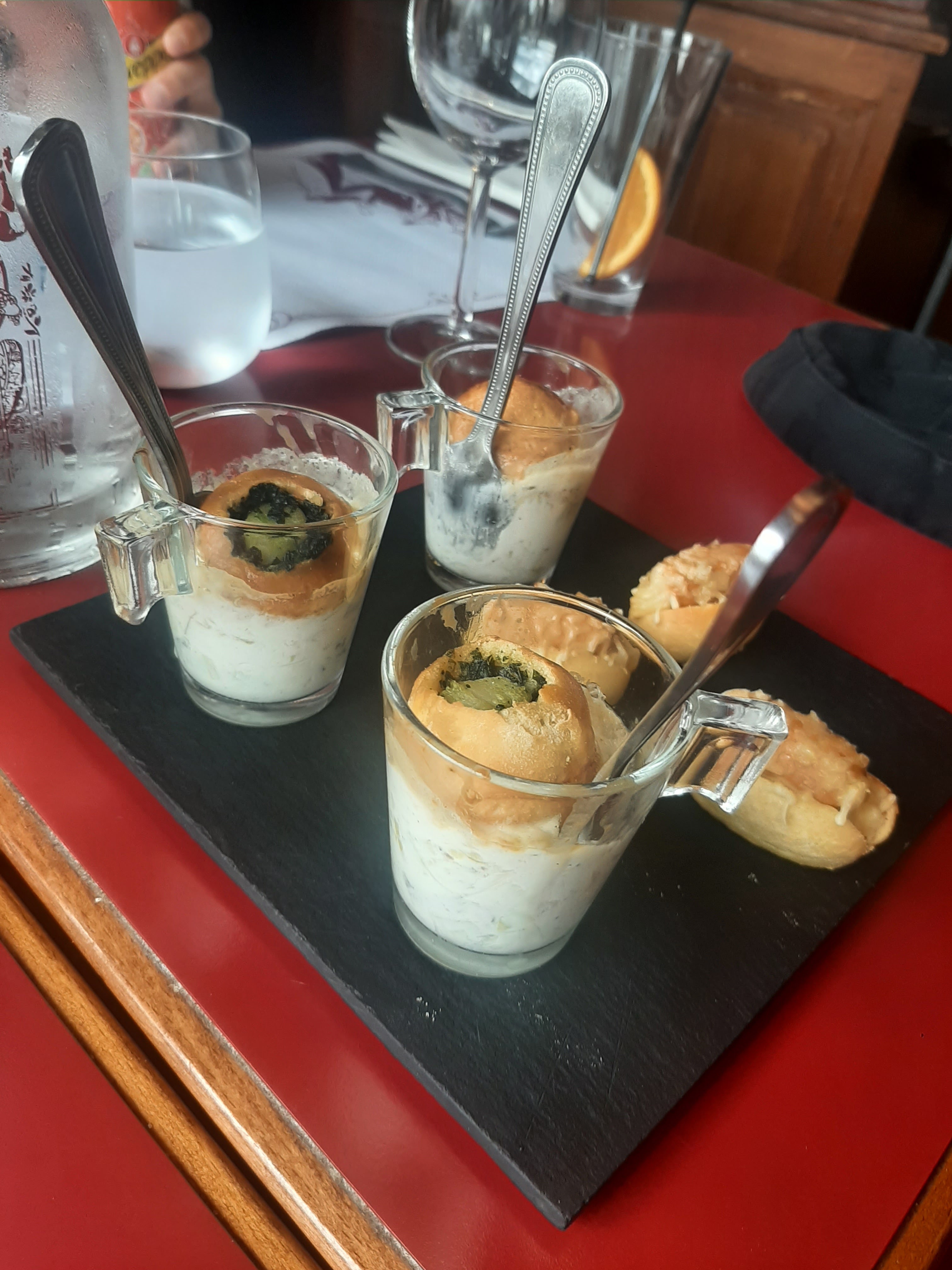 Je n'ai pas trop apprécié le chien qui pleurait sans arrêt à côté de nous. Beaucoup de soucis pour le service. Nous avons eu de la tolérance car le petit jeune était très gentil et essayait de faire bien. Les plats sont très bons.