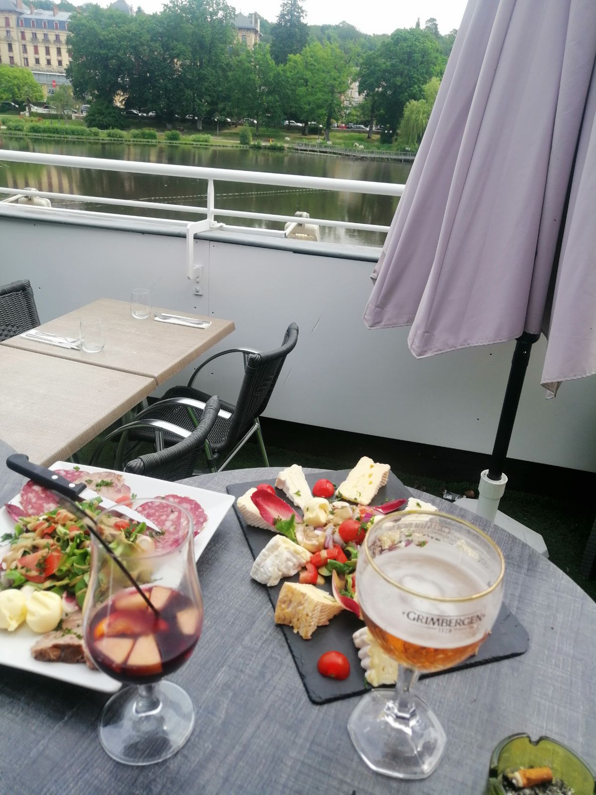 Très bien, possibilité de prendre un verre à l'intérieur ou en terrasse à toutes heures,la brioche perdue/glace à la vanille ou caramel/Chantilly délicieuse, leur terrasse vue sur le lac 😎 idéal le jour du feu d'artifice, Un petit reproche sur les petits carreaux, qui donnent sur la rue, sallent.