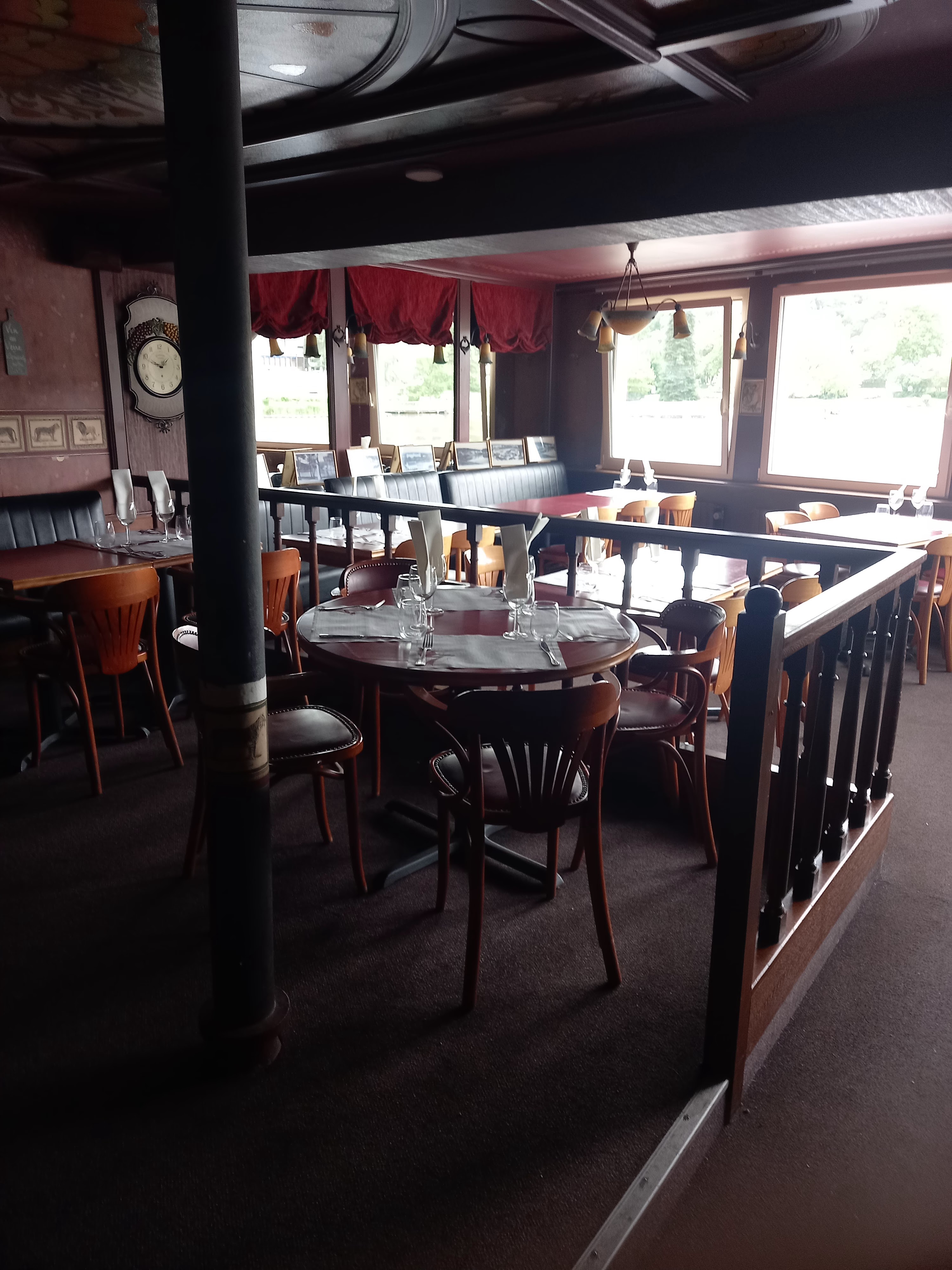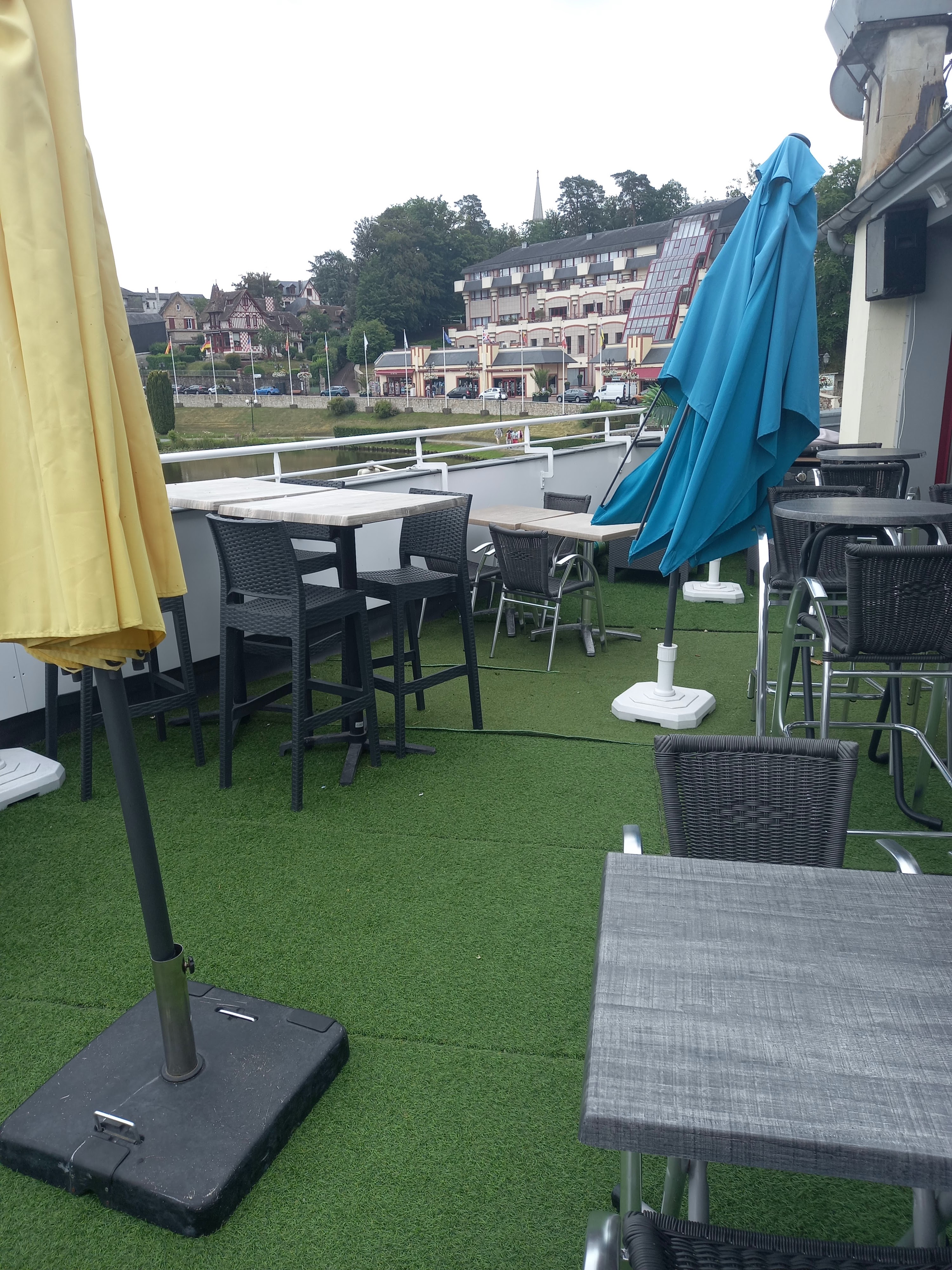Pourtant pas grand monde d’installer, nous avons attendus bien 20 min pour deux entrées ( dont une assiette de fruits de mer qui pour moi était très limite niveau fraîcheur ) . Nous avons commandés une andouillette qui pour moi manquais de cuisson . Et pour finir on demande un café crème , le serveur nous ramène un café avec du lait .. ensuite ils se sont tous positionnés pour dire qu’un café crème c’est un café avec du lait chaud .... no comment. Tous ça pour la somme de 80€ . Je déconseille fortement ! Il y a de meilleurs restaurants sur bagnole de l’Orne avec une bien meilleure vue