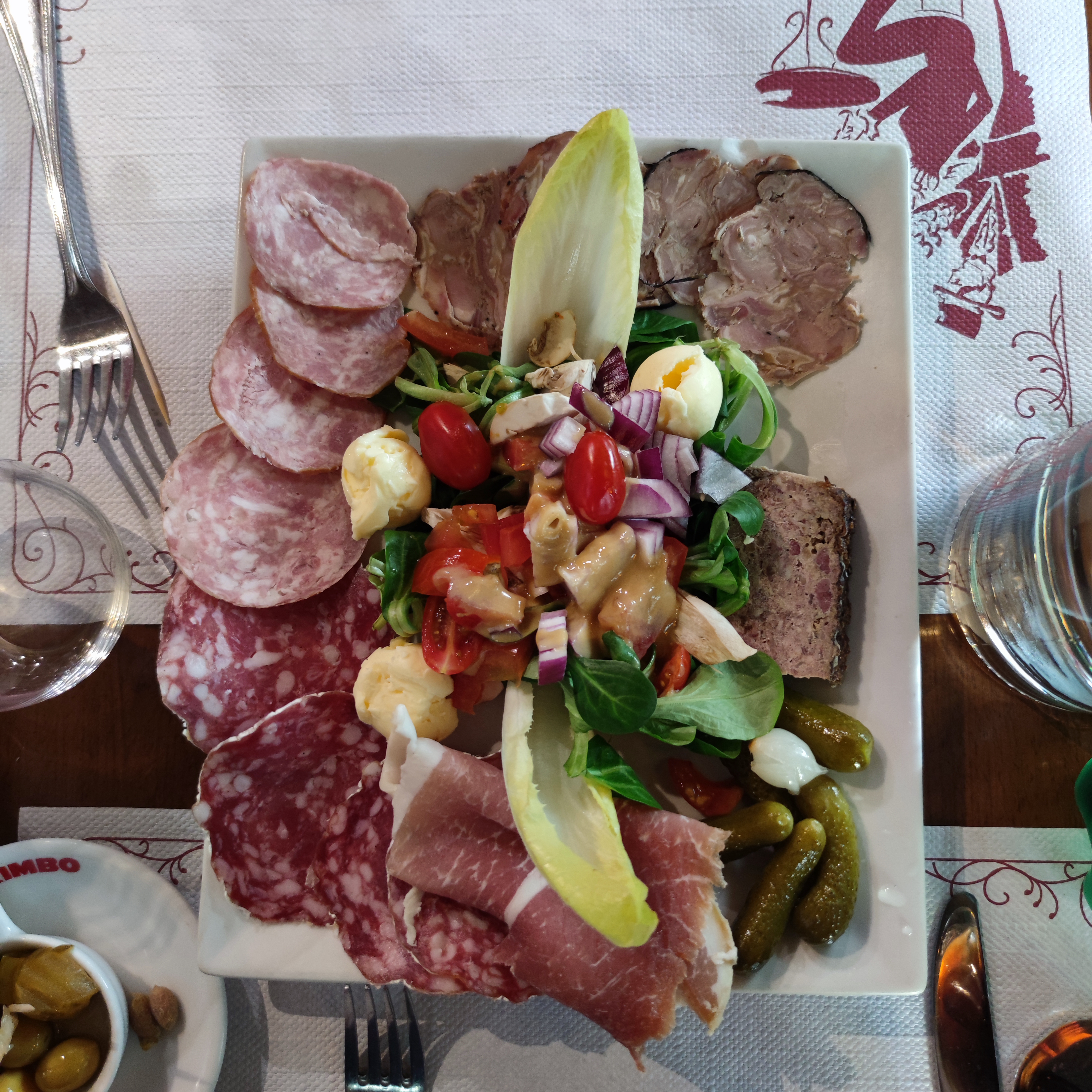 Nous avons commandé 2 planches : Charcuterie et tapas ! Charcuterie à température ambiante....tapas avec un goût de huile trop utilisée...panière très sales, table en terrasse côté rue très sale....dommage... pour Bagnoles...et de plus les prix sont excessifs... Je tiens à préciser que le personnel est sympa ....dommage pour eux...