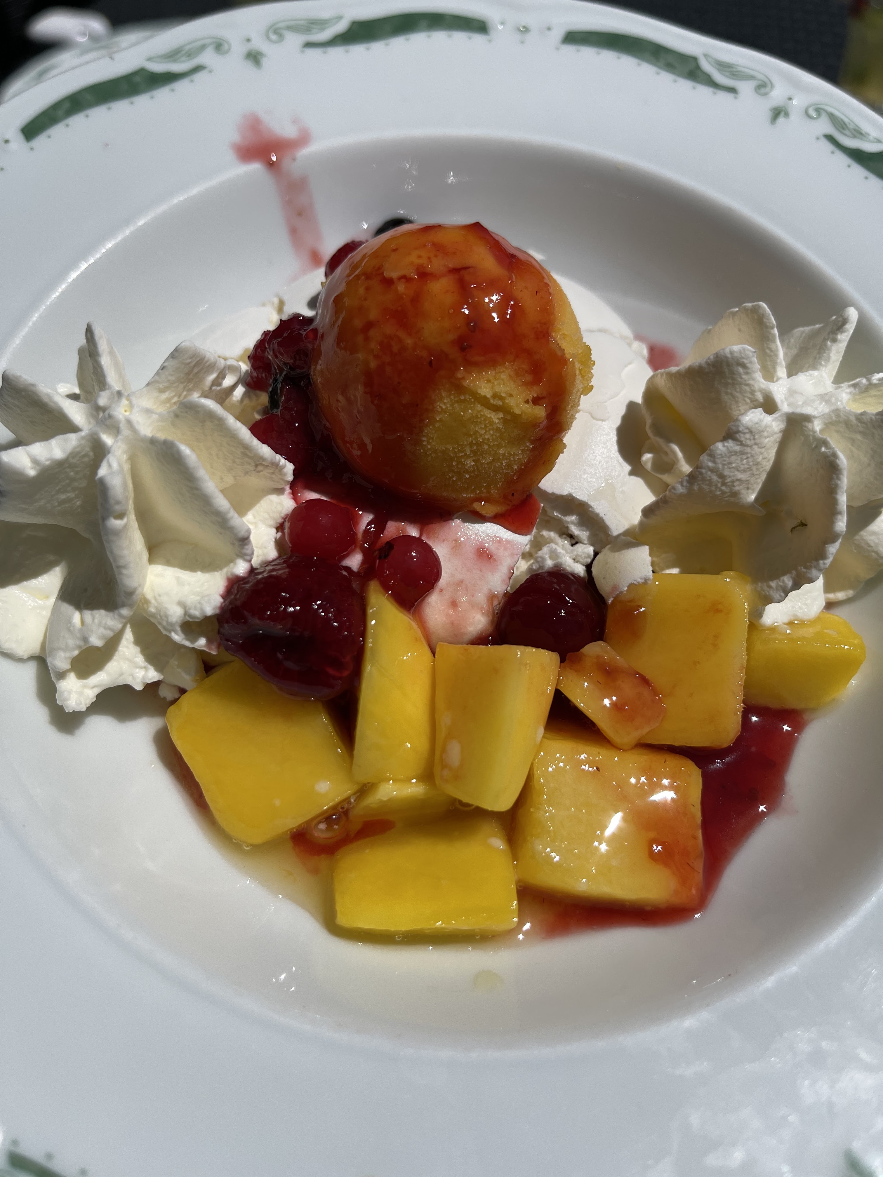 Repas servi tiède..., couverts sales, erreur de commande, seul le dessert et le vin ont été corrects. Vue sur le lac et une déco 1900.