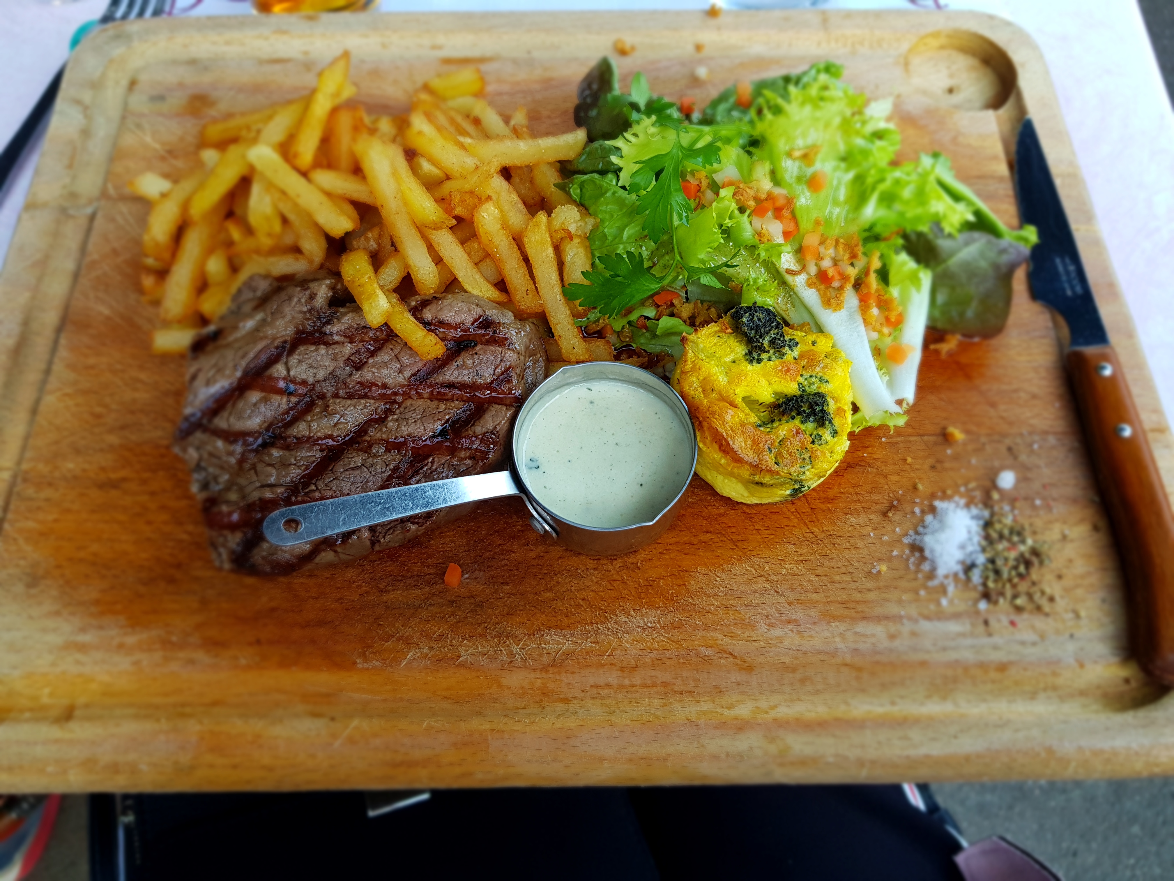 La planche filet de bœuf café de Paris est un pur régal et copieux. Personnel chaleureux, je recommande vivement.
