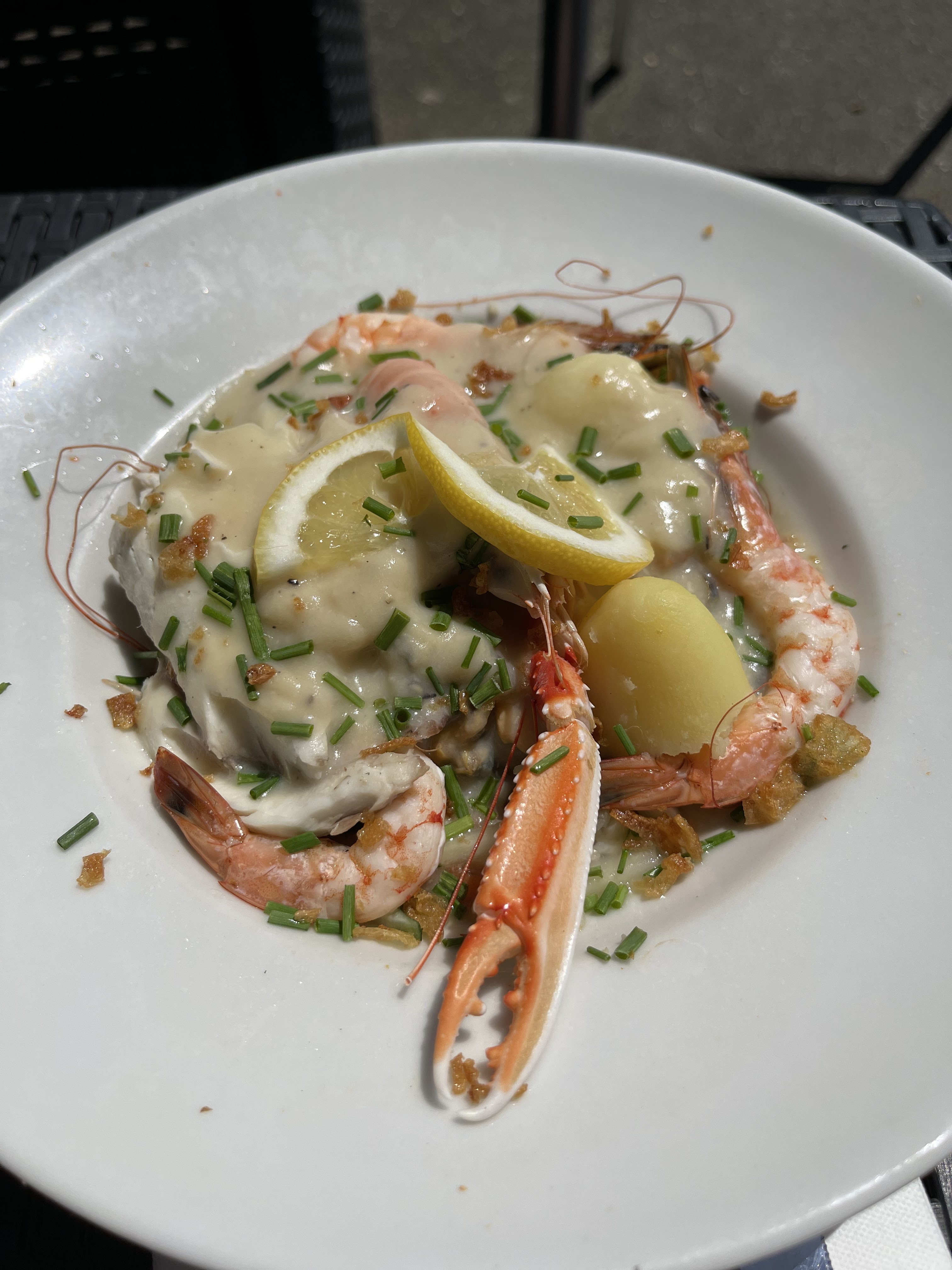 Beau décor, bon accueil, belle vue et surtout un ravissement pour moi. Cuisine généreuse et fine avec pleins de surprises (rajout de crustacé etc. aux plats) un service à table impeccable. Heureuse découverte à refaire.