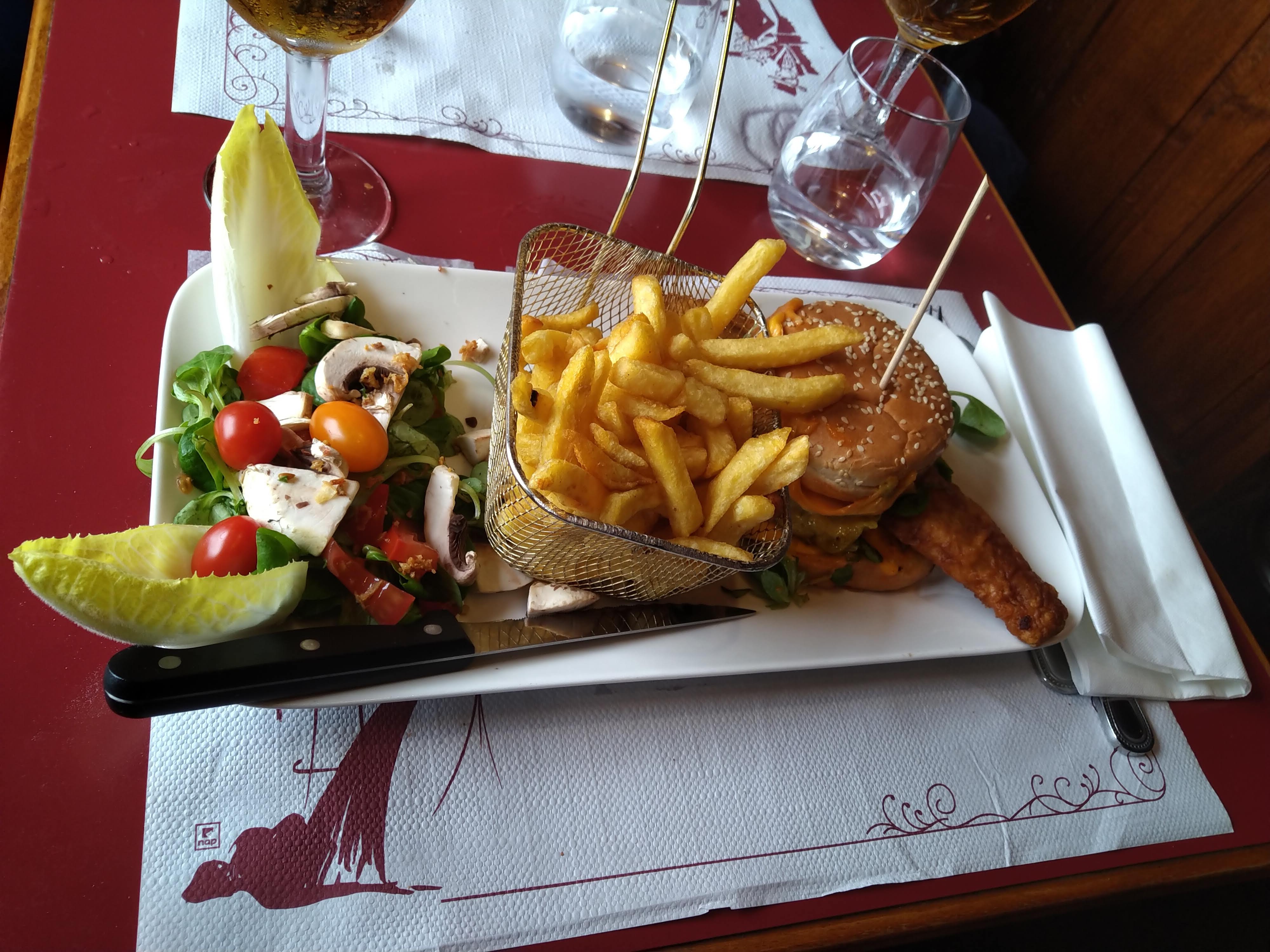 Nous y sommes allées avec mon copain manger le soir, pour lui un magret de canard qui était très bon Moi j'ai commandé un burger au poulet avec sauce mayonnaise Les filtres étaient bonnes Mais Le burger arrive c'était du ketchup au lieu de la mayonnaise .. Je renvoie donc le burger il me l'amène finalement avec une sauce mayonnaise mais a moitié cramé et de plus il n'était pas franchement bon.. Et en plus le mojito était Inbuvable (je déconseille fortement) On a tout de même eu un geste commercial (ils nous ont offert les boissons) pour combler notre depection d'où ma note de 3 étoiles.