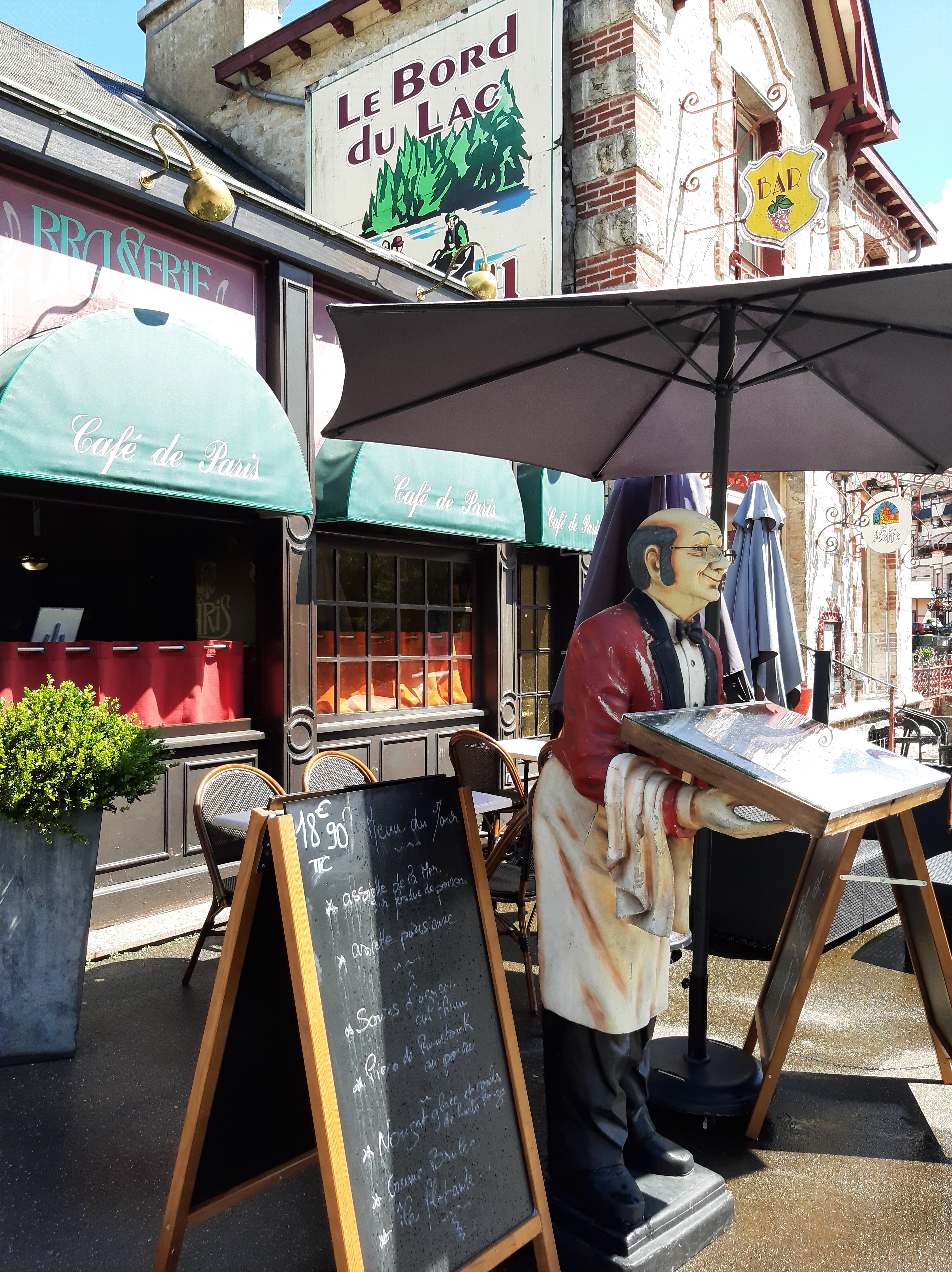 Nous avons tellement apprécié notre déjeuner au Café de Paris que nous y sommes retourné le soir même ! L'accueil est chaleureux, le personnel très professionnel, efficace et surtout très sympathique. La carte est variée et les produits sont frais. Les présentations sont généreuses et appliquées. Terrasse avec vue sur le lac très agréable et presque confidentielle. Merci à toute l'équipe.