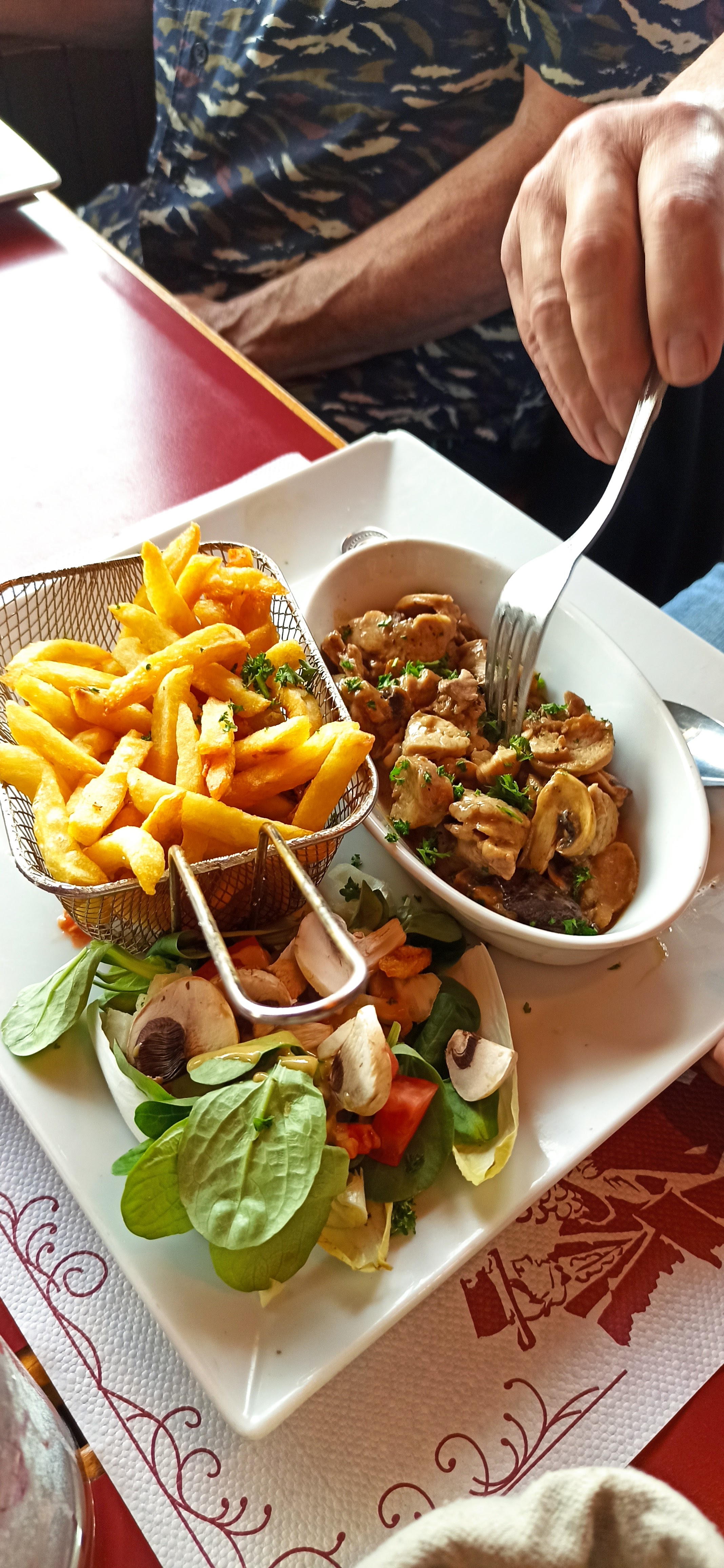 Très déçue, suprême de volailles aux morilles sans morilles mais avec des champignons de Paris, et le dessert on devait avoir un coulis de framboise qui était plutôt un sirop... Service expéditif et on nous a demandé de partir pour laisser la place au deuxième service... Je ne recommande pas du tout...