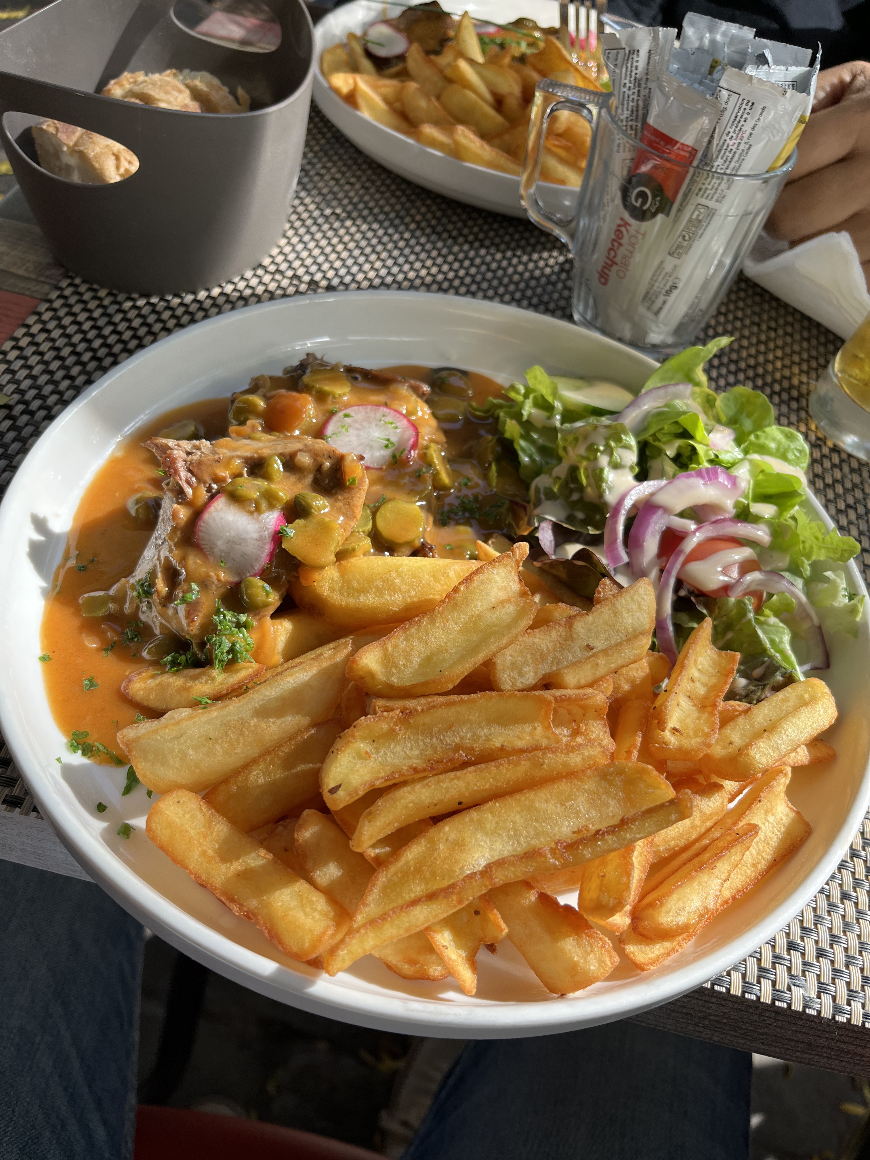 En ce qui concerne les plats rien à dire très bons, très bien servis, belles assiettes, cependant en ce qui concerne le service très déçus ! Tout d'abord les sauces sont sur la table en plein soleil pendant des heures... Pas top ! De plus nous avons eu affaire à 3 serveurs/serveuses different(e)s donc un peu perdus à chaque fois qu'ils venaient à notre table. Enfin nous sommes restés longtemps sans pouvoir recommander de boissons entre l'apéritif et le plat, et nous avons attendu 30 min pour commander des desserts, personne n'étant venu nous voir nous sommes partis sans en commander... Et pourtant il s'agissait d'un dimanche midi, la terrasse n'était pas pleine, mais gros défaut d'organisation au niveau des serveurs ! Dommage un peu déçus de cette expérience, mitigés concernant une prochaine visite ou non...
