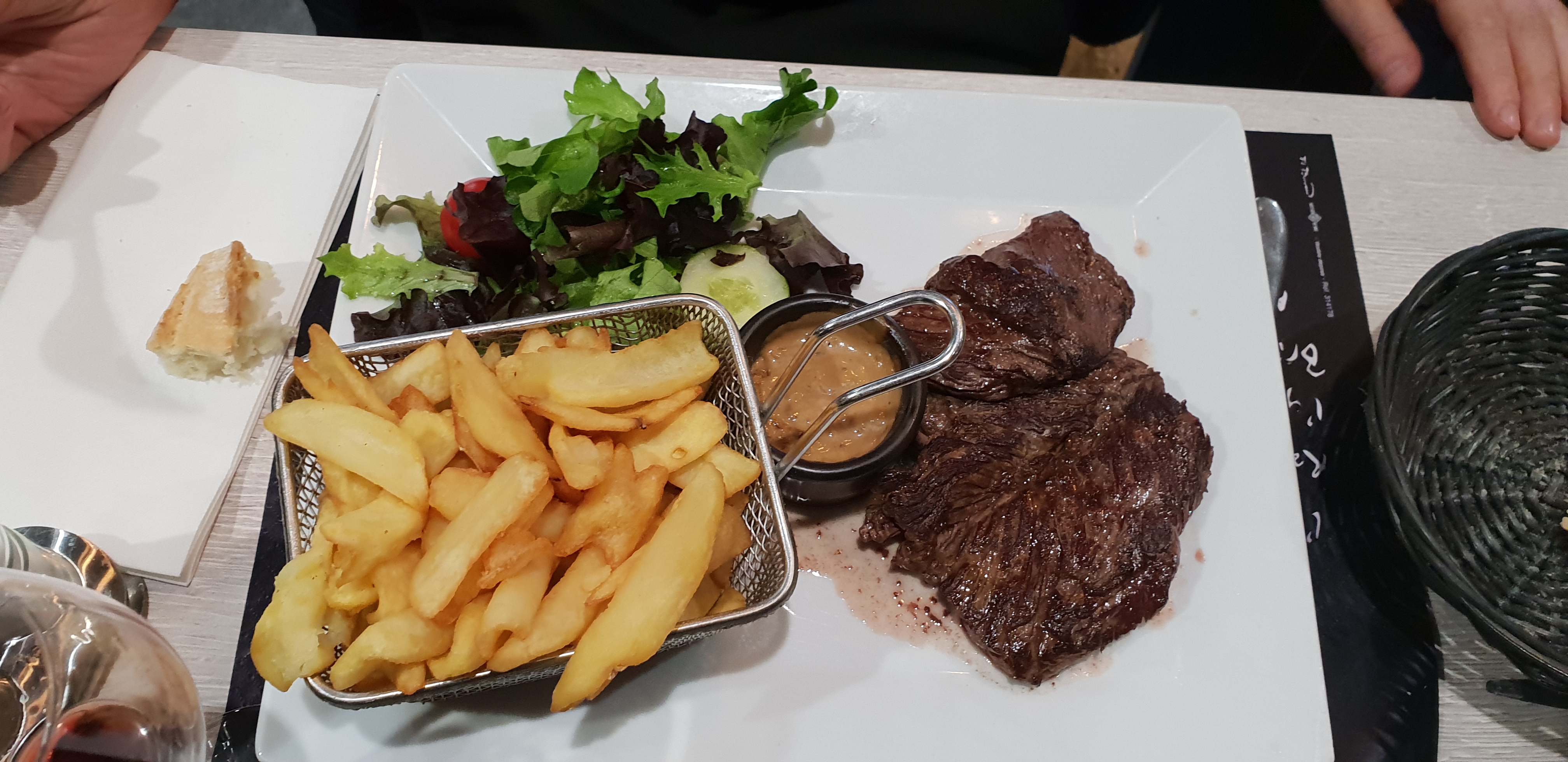 Personnel sympa. Planche de charcuterie correcte. Andouillette extra. Entrecôte tendre et copieuse. Rapide et propre. Desserts pas super top!