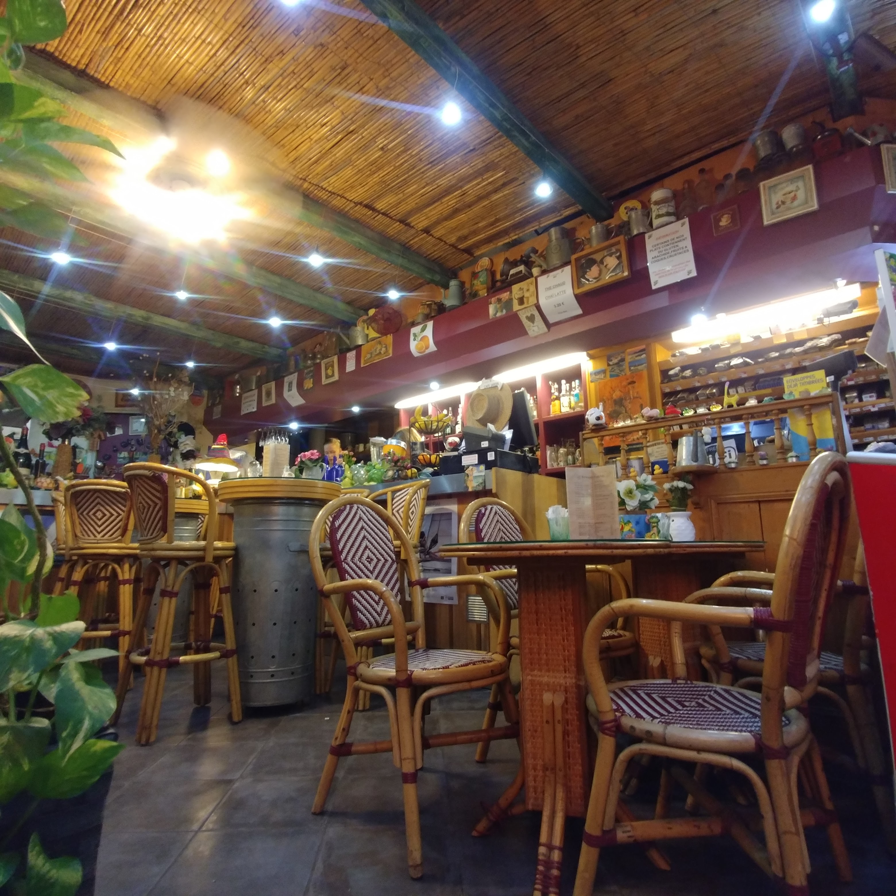Un lieu a découvrir absolument , niché dans le fond d'une petite rue avec sa façade originale . Café resto décoré avec une multitude d'objets hétéroclites .Vous mangerez à l'ombre des lauriers et plantes vertes dans le jardin .Menu plat + dessert à 16,50 euros excellent , Noémie nous a gentiment accueilli et servi .Nous reviendrons c'est sûr