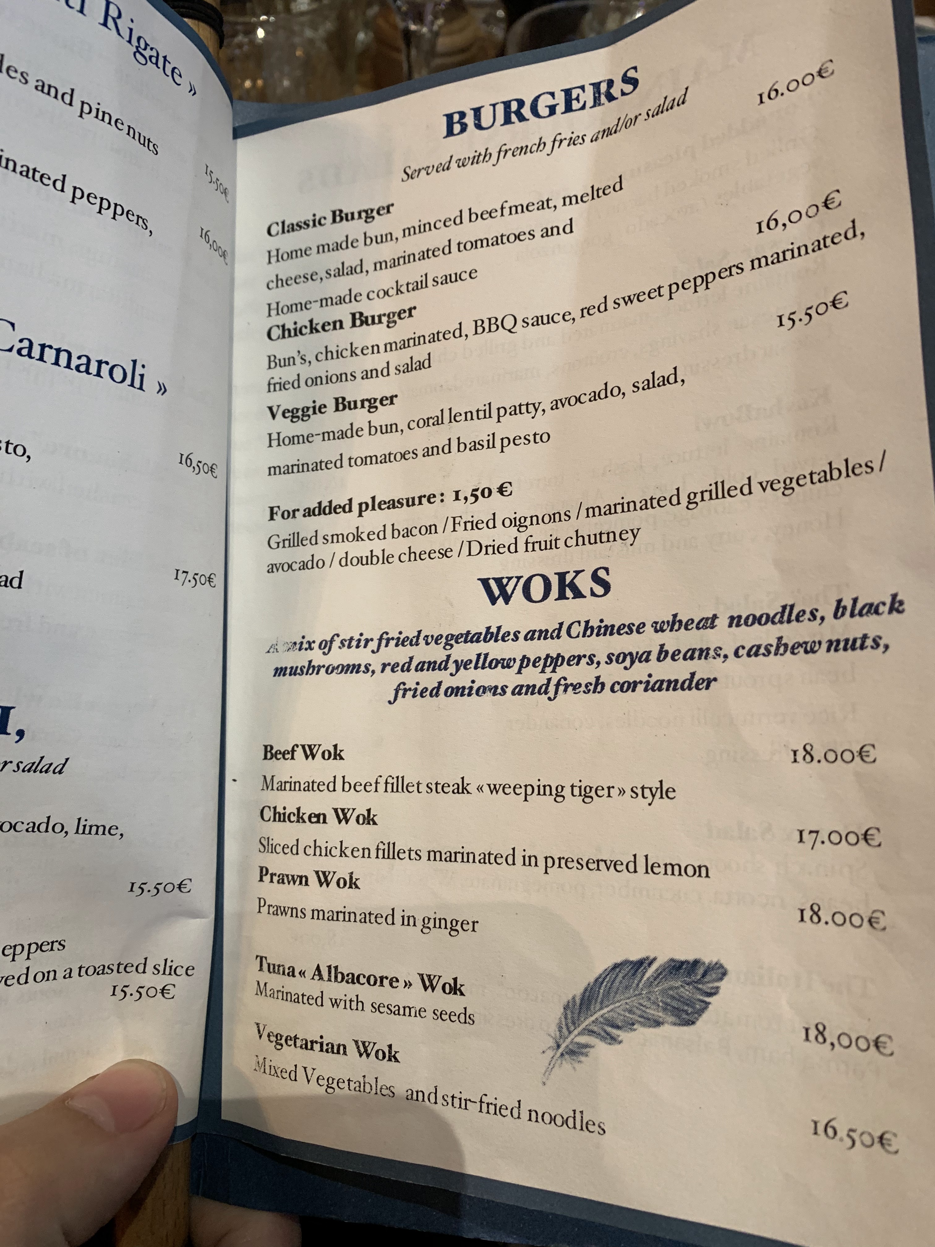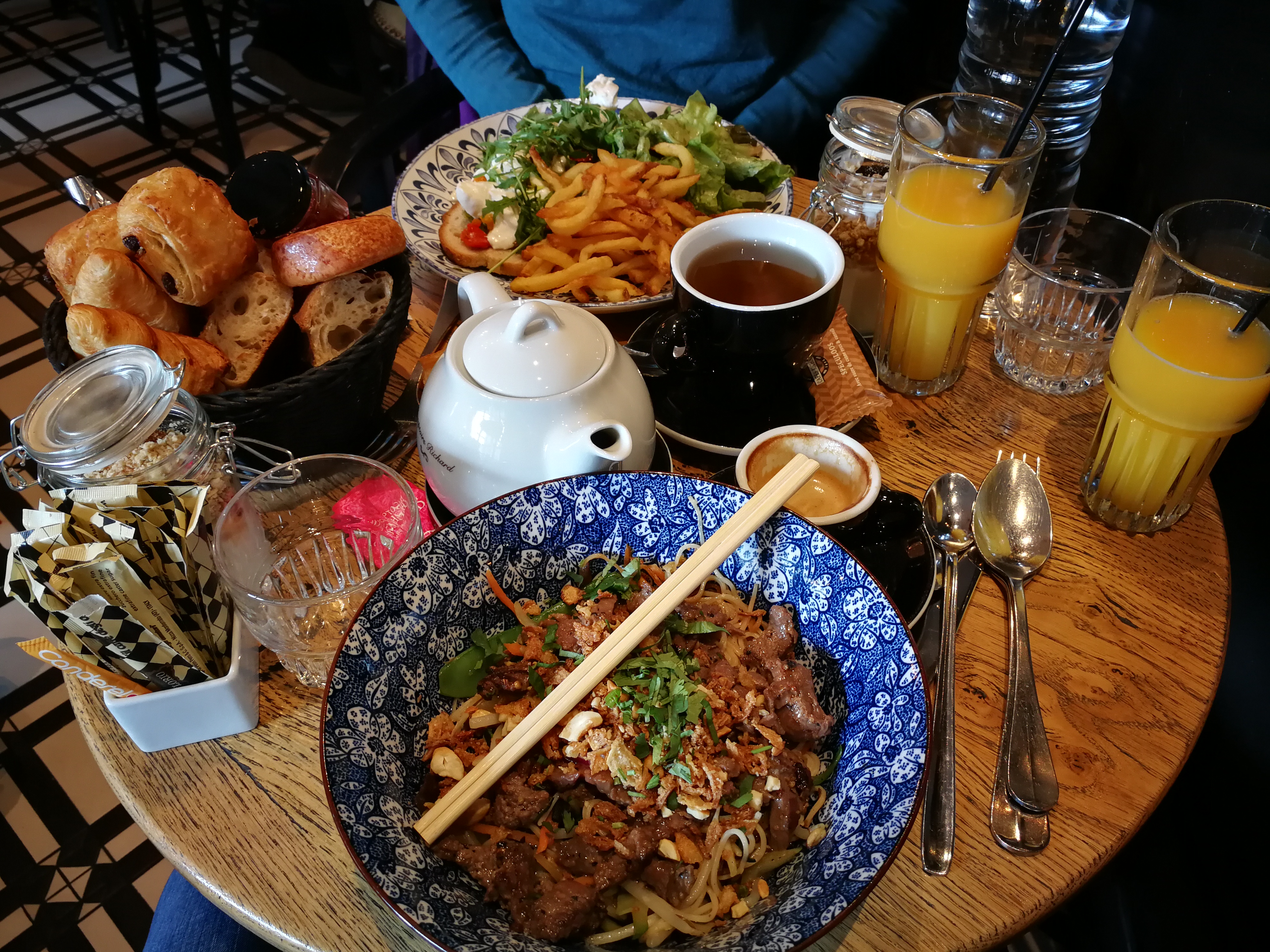 Un sac un peu mélangé. Portions et rapidité du repas ultrarapides. Le personnel était correct, mais un peu mauvais en anglais, ce qui a créé des malentendus. L'ambiance est sympa. Le prix est typiquement parisien et un peu élevé, surtout pour ce niveau de qualité médiocre. Certains plats étaient vraiment bons comme le Beef Wok et le Gratin. Mais le steak français était littéralement un vieux cuir provenant d'une chaussure. La viande la plus dure que nous ayons jamais vue. Peut-être que nous n'avons pas eu de chance avec la viande. Mais le chef ne devrait même pas envisager de mettre cela dans l’assiette et mieux vérifier ! Nous avons eu un repas de remplacement. Je sais qu’ils peuvent faire mieux et j’espère qu’ils s’amélioreront. Je lui donnerais 2,5 étoiles dans l'ensemble, mais comme c'est impossible, un 3.