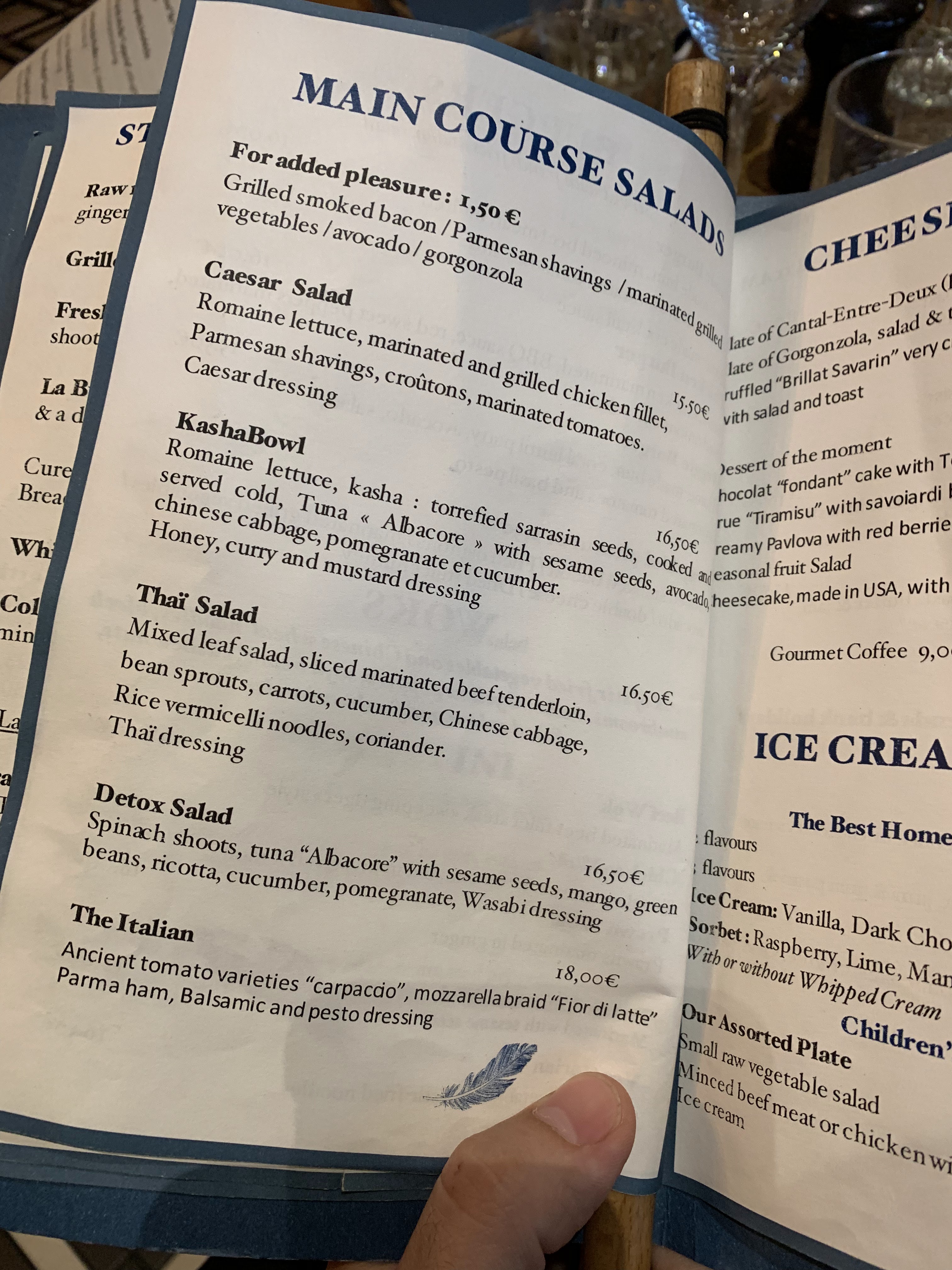 Restaurant très sympa. Je conseille le risotto et la brioche façon pain perdu. MAIS si vous souhaitez manger un cordon bleu PASSEZ VOTRE CHEMIN. Deux petits morceaux de cordons bleus pour 20€ … alors que sur la carte,il est mentionné LE cordon bleu. Mon conjoint est déçu … nous ne reviendrons pas. Mauvais rapport qualité/prix.
