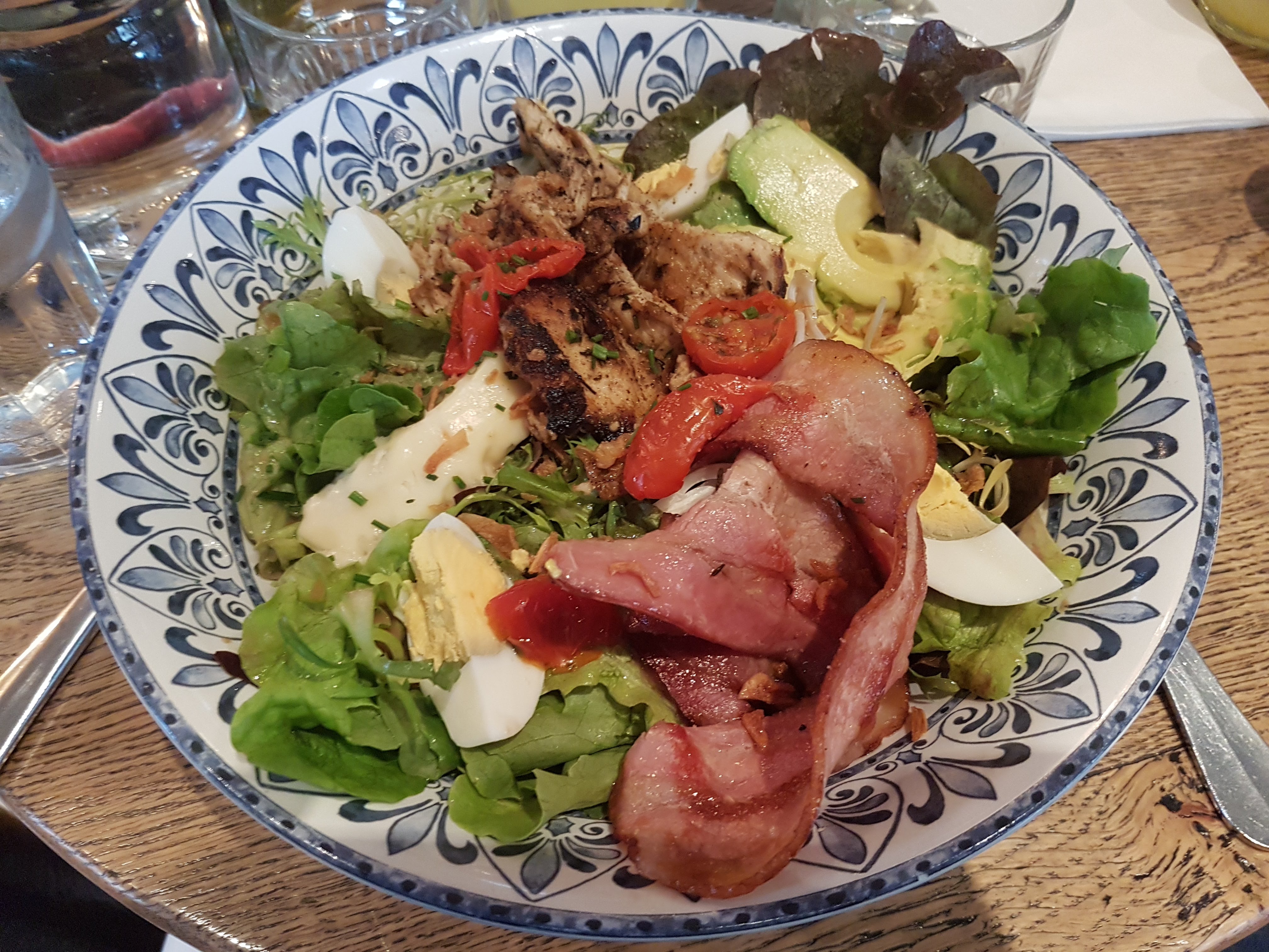 La salade repas est excellente, préparée et copieuse. L'endroit est chaleureux, ensoleillé et bien placé.
