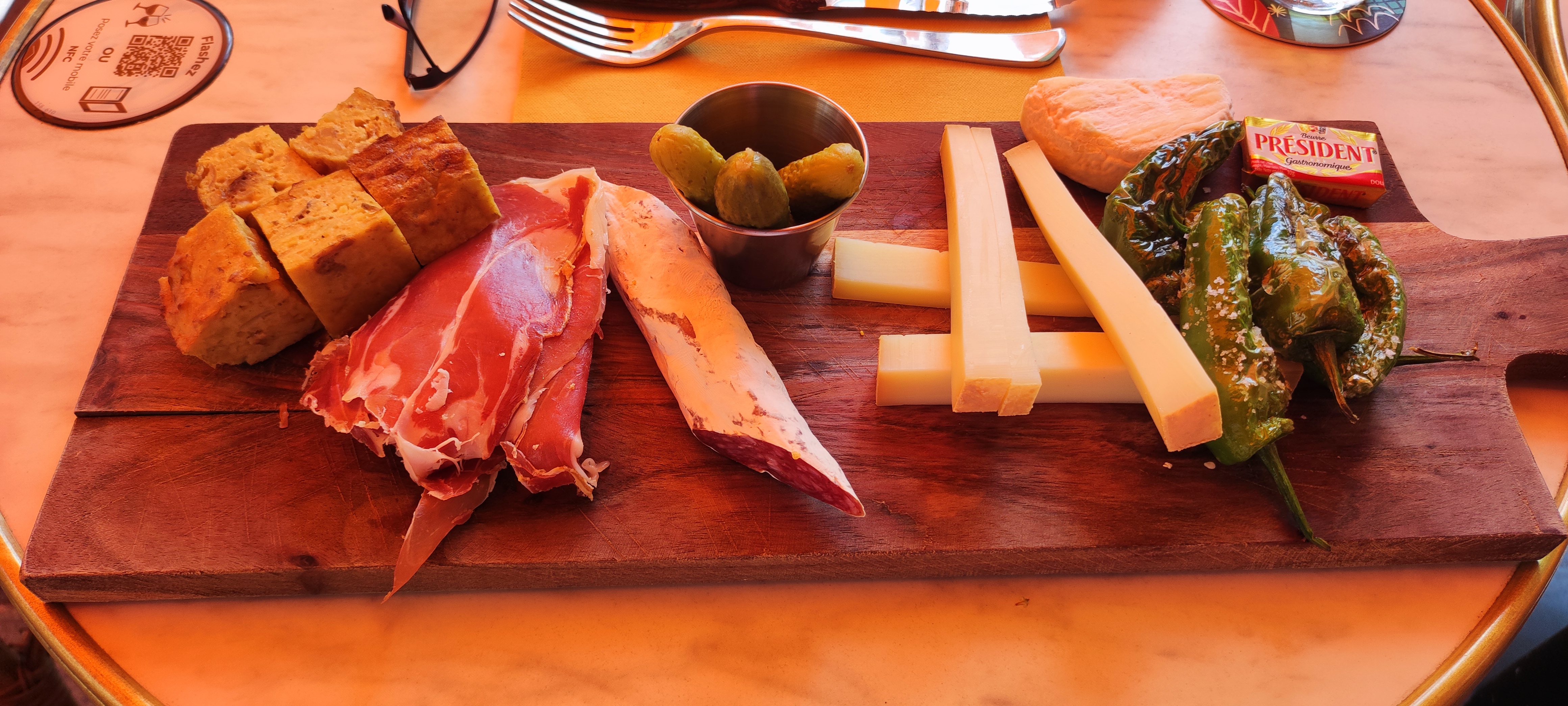Très bien servis par un serveur fort sympathique et efficace, nous avons pris l'assortiment de tapas qui même malgré ce nom inadéquat était bon ! (magret fumé, foie gras & saucisson de canard)