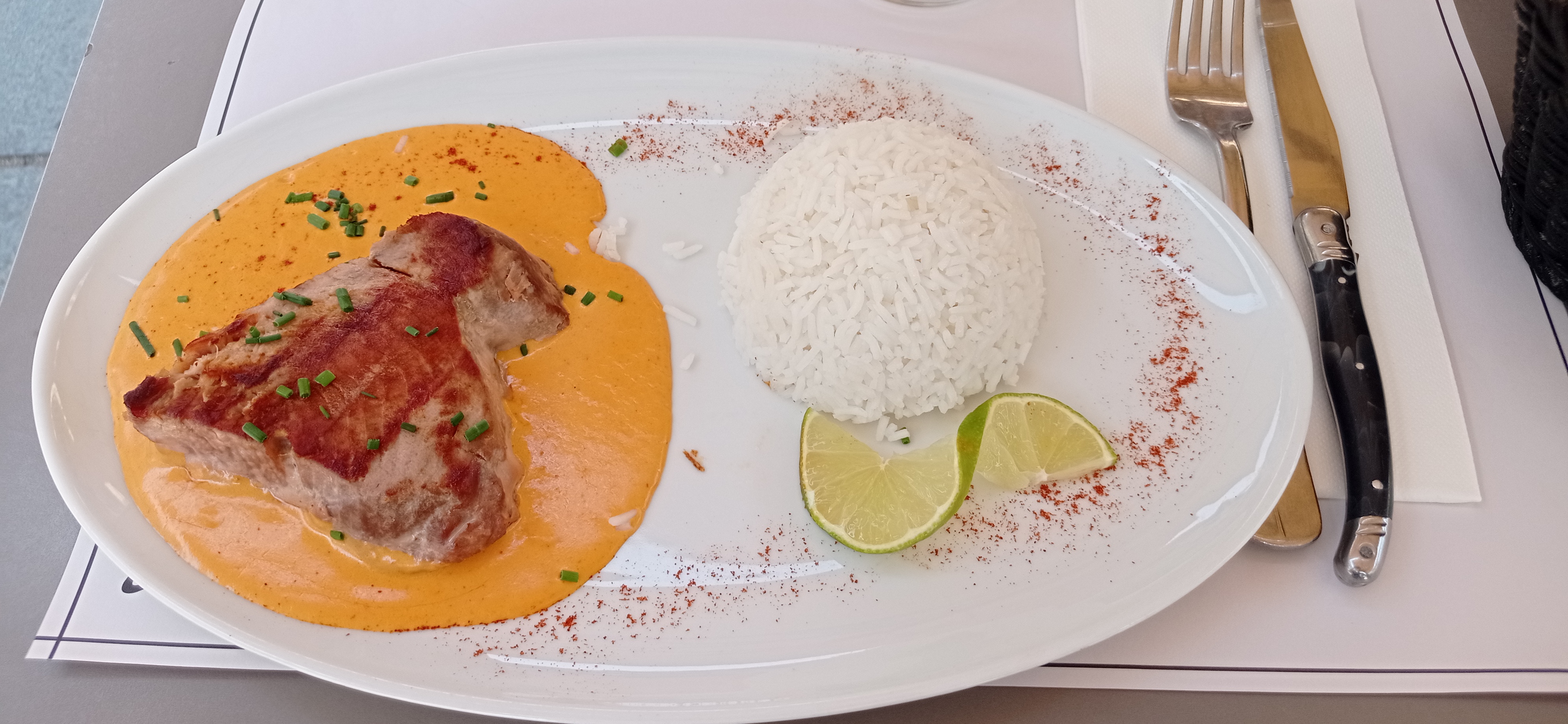 Accueil agréable service rapide formule incroyable thon grillé avec sa sauce chorizo et son riz basmati De plus pour le dessert nous avons eu une salade de fruits copieuses 👌 Prix attractifs Je vous le conseille 👍