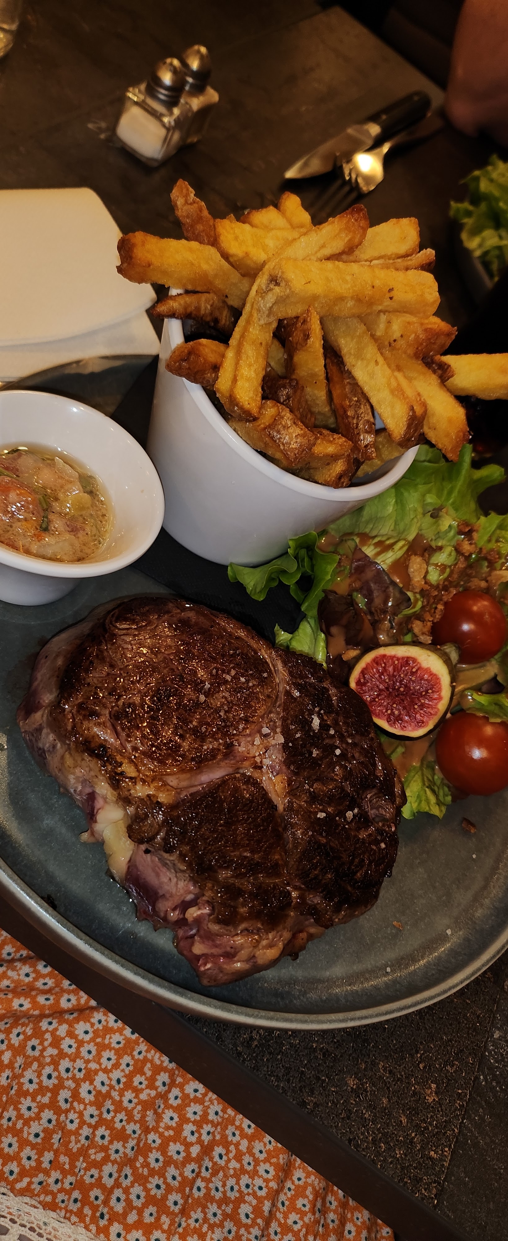 Accueil chaleureux, personnel au top, par contre, on m en avait dit du bien au niveau du menu mais nous avons voulu nous faire plaisir et prendre 1 magret foie gras au prix quand même de 22 euros +5 euros pour le foie gras.. resultat après un peu d attente, un magret et des frites sans intérêt et le pire..le foie gras..decongelé à la va vite et moitié cuit au micro onde..sec et avec un goût de viande decongelé..très déçu pour le prix.. Je reviendrais , ne pas rester sur une mauvaise impression mais , 1ere impression pas concluante.