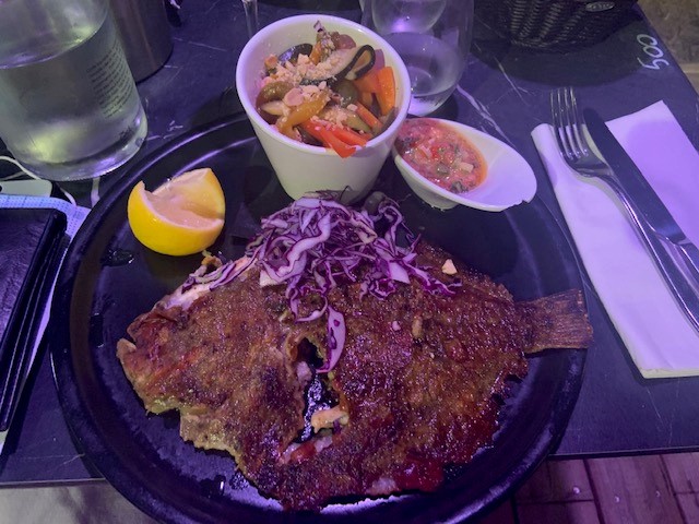 Très déçu du repas , semoule du couscous pas cuite du tout même sèche... donc renvoyée avec les excuses du serveur ( qui n'y est pour rien ) , plat de fruits de mer et poissons à 33.00 euros , trop cuit et sec pour le coup , quel dommage . La demi langouste était véritablement sèche sur le dessus , pas cuite à l'instant T, impossible . Geste du restaurant , une eau gazeuse offerte...( vulgaire eau gazifiee dans une carafe pas du tout ce que nous avons demandé ). Pas véritablement d'excuse pour le repas lors de l'encaissement.( nous attendions aucun geste uniquement des explications ) Mauvaise expérience pour un repas du soir . J'espère que le commentaire remontera à la cuisine.