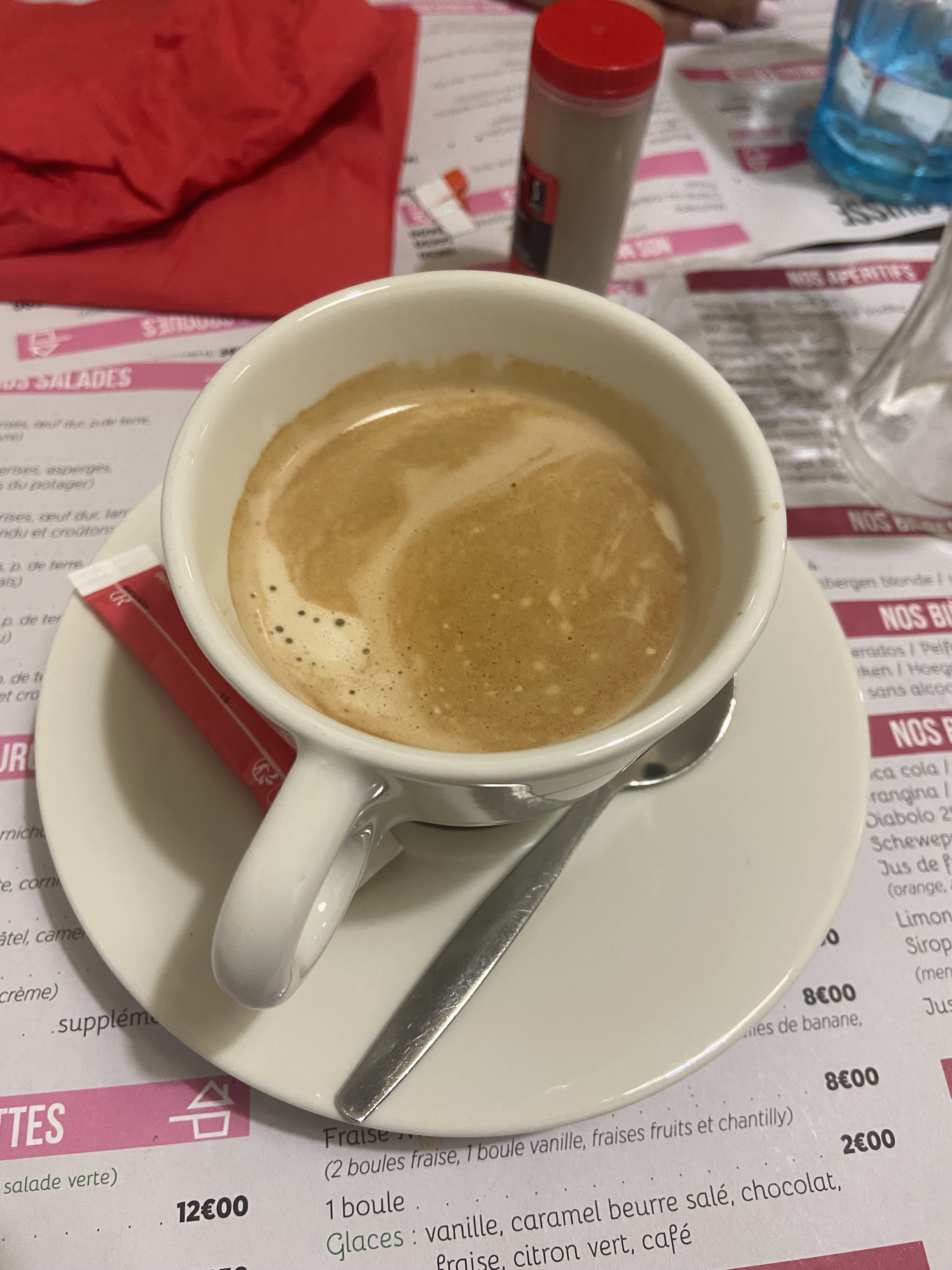 Chocolat chaud qui ne prenais que la moitié de la tasse qui n’était pas chaud
