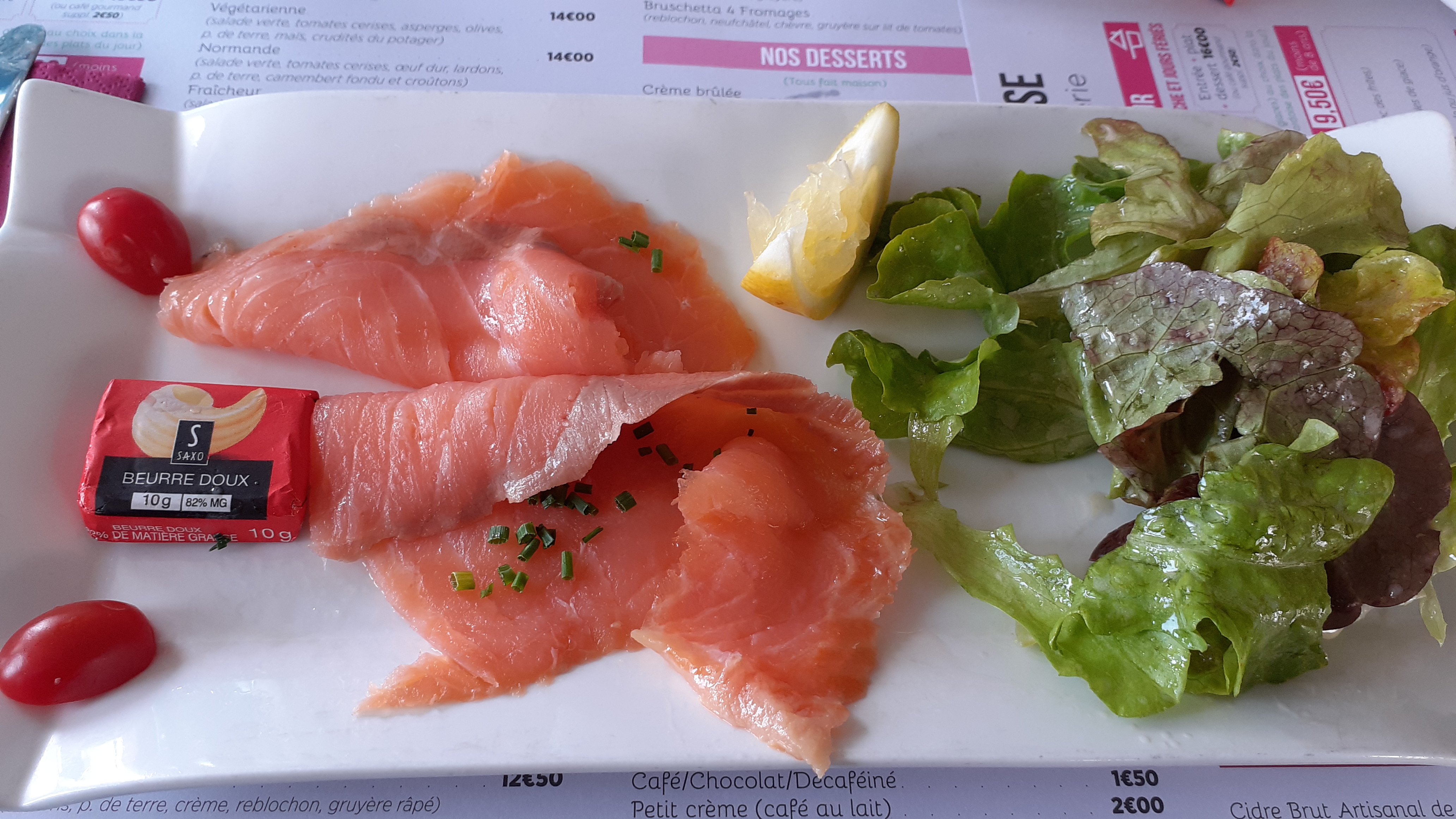 Tout a été très bon. J'ai prit une salade, filet de bar ainsi qu'une galette saumon excellent propre et super bien présenté. Personnel très accueillant, souriant, au top. Je recommande à 100% au passage à Dieppe, j'y retournerais volontiers