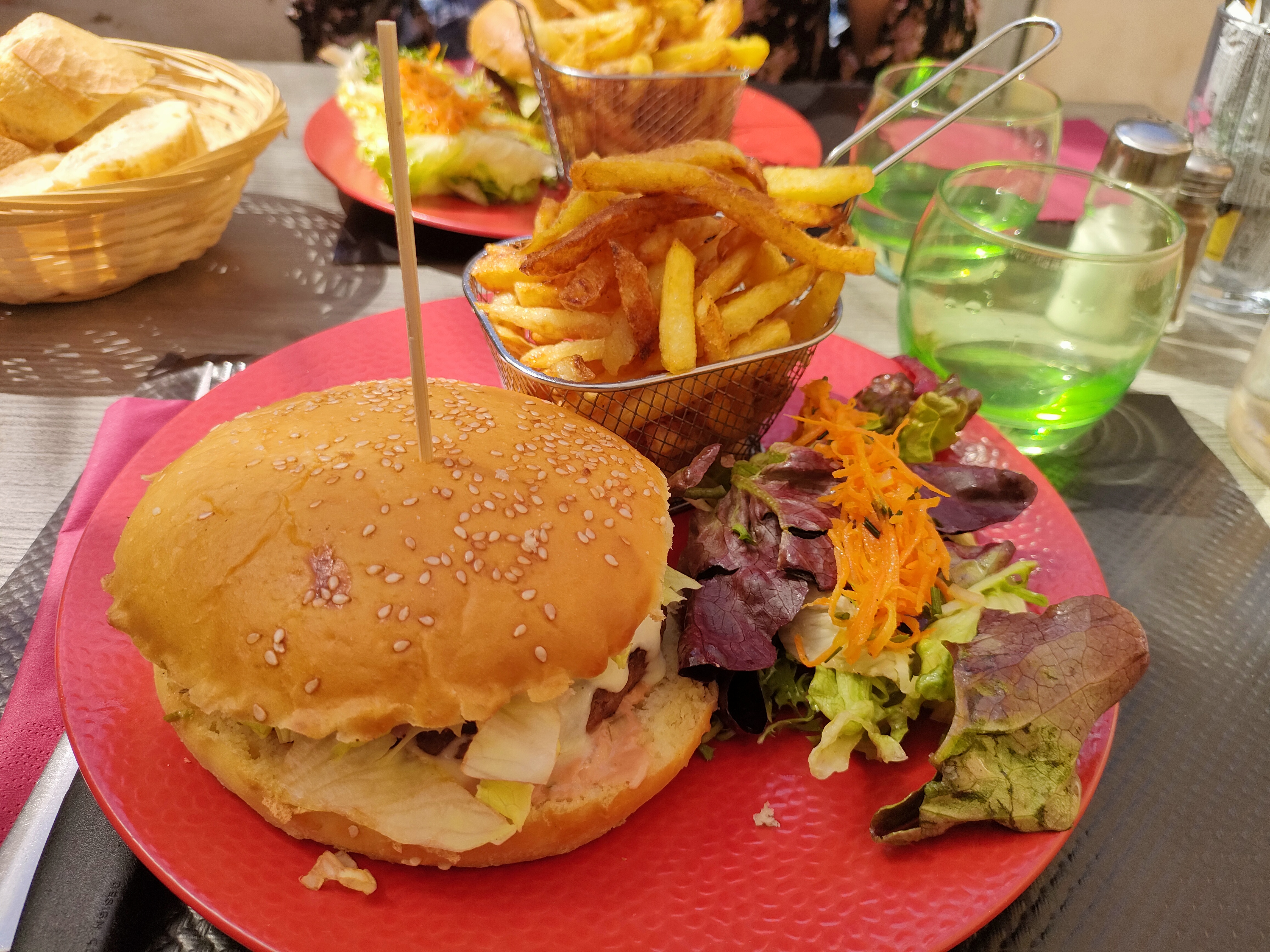 Personnel sympathique et terrasse derrière le restaurant très agréable. Bonne initiative de mettre des burgers végétariens a la carte ! Burgers bons avec pain maison qui manque à mon goût d'un fromage un peu plus fort et d'un côté croustillant 😉 Desserts maisons variés, copieux et prix raisonnables. Je reviendrai !