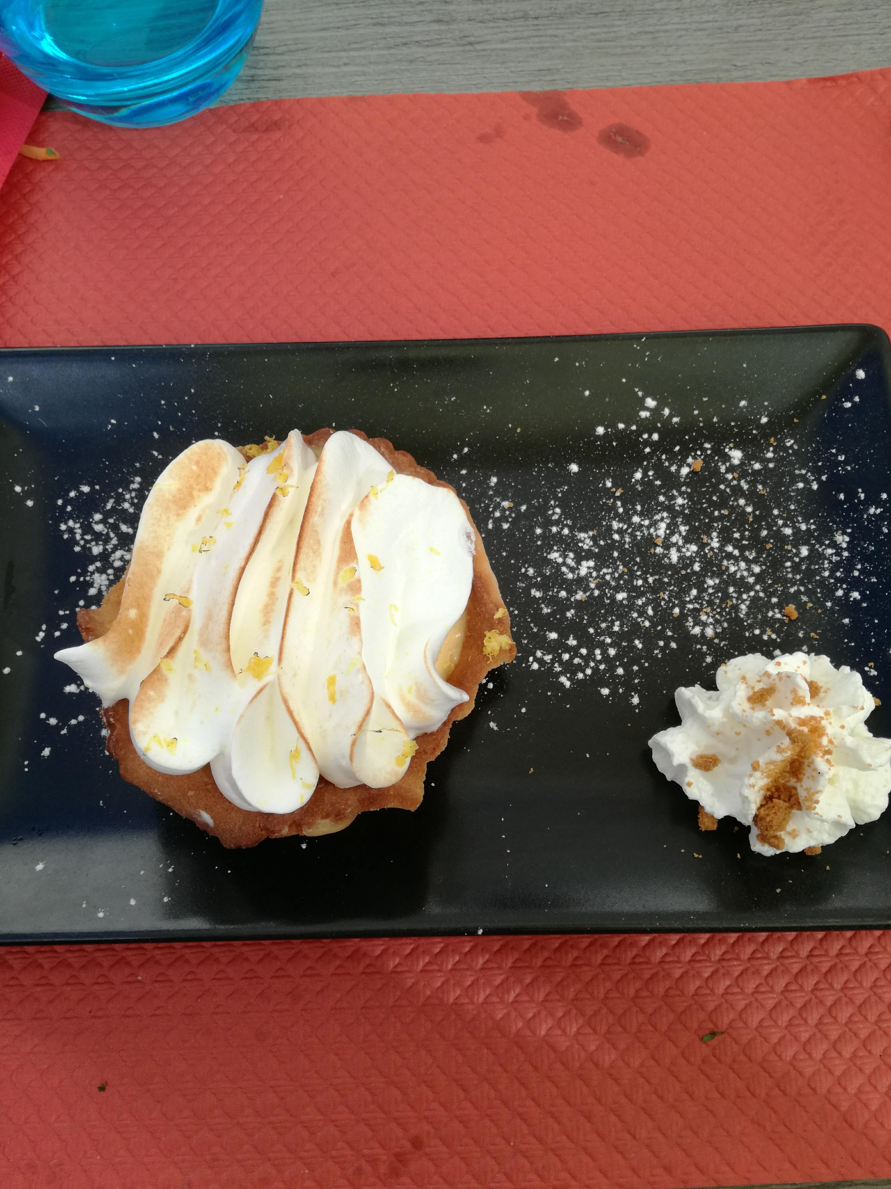 Propriétaires très accueillants, terrasse très sympa, et repas fait maison dont cette tarte citron délicieuse!😊 je recommande vivement cet établissement!😀