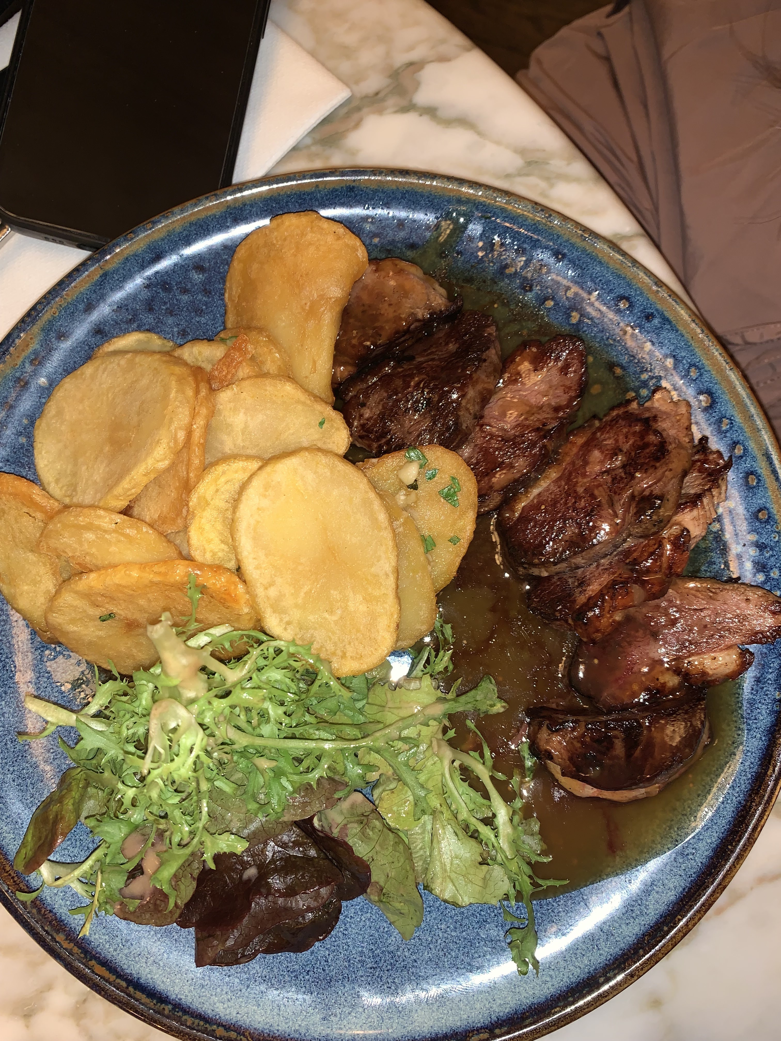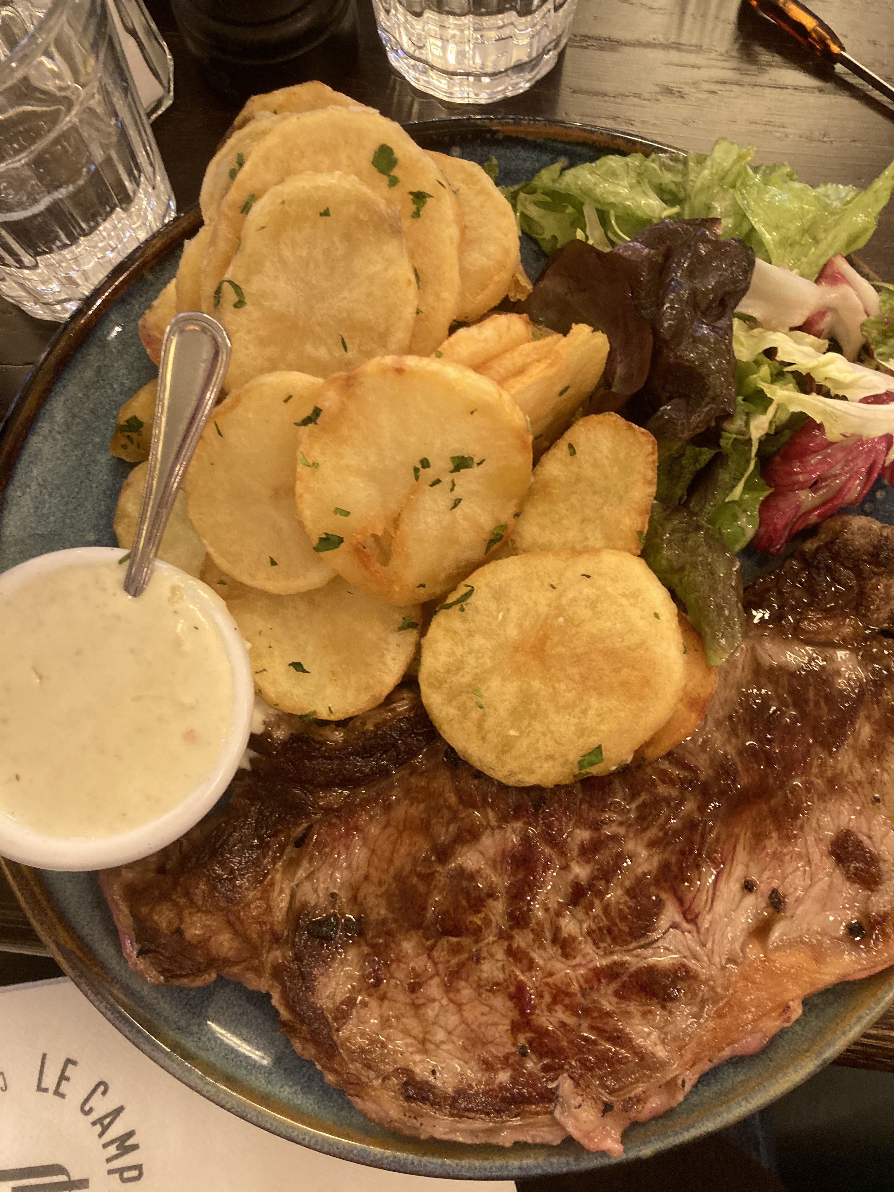 Viandes bonnes, frites vraiment ps terrible. Verre de rouge bon.
