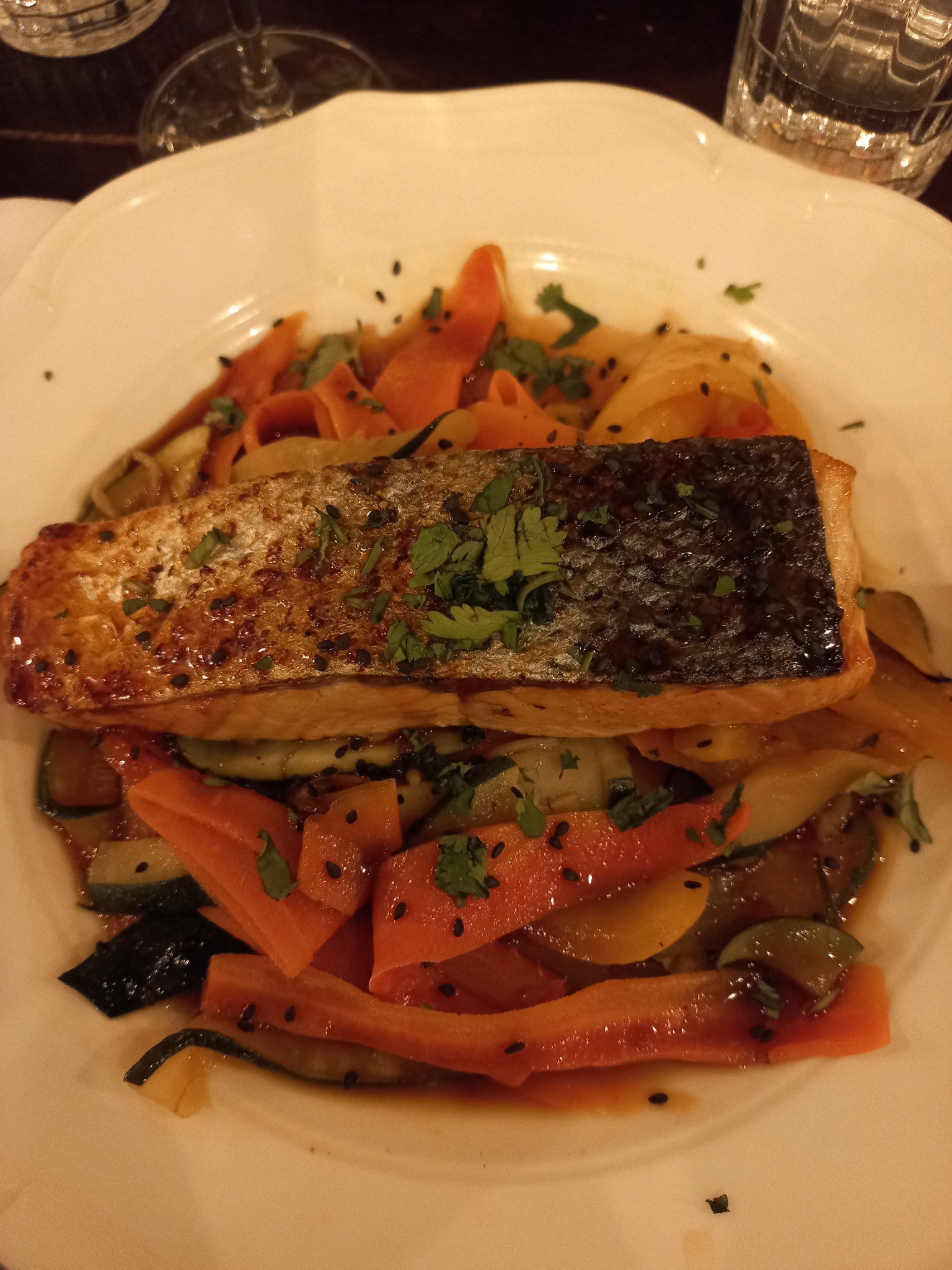 Très bien, notre serveur impec, les plats excellents seule fausse note le tartare de saumon fade, manquant d'assaisonnement.