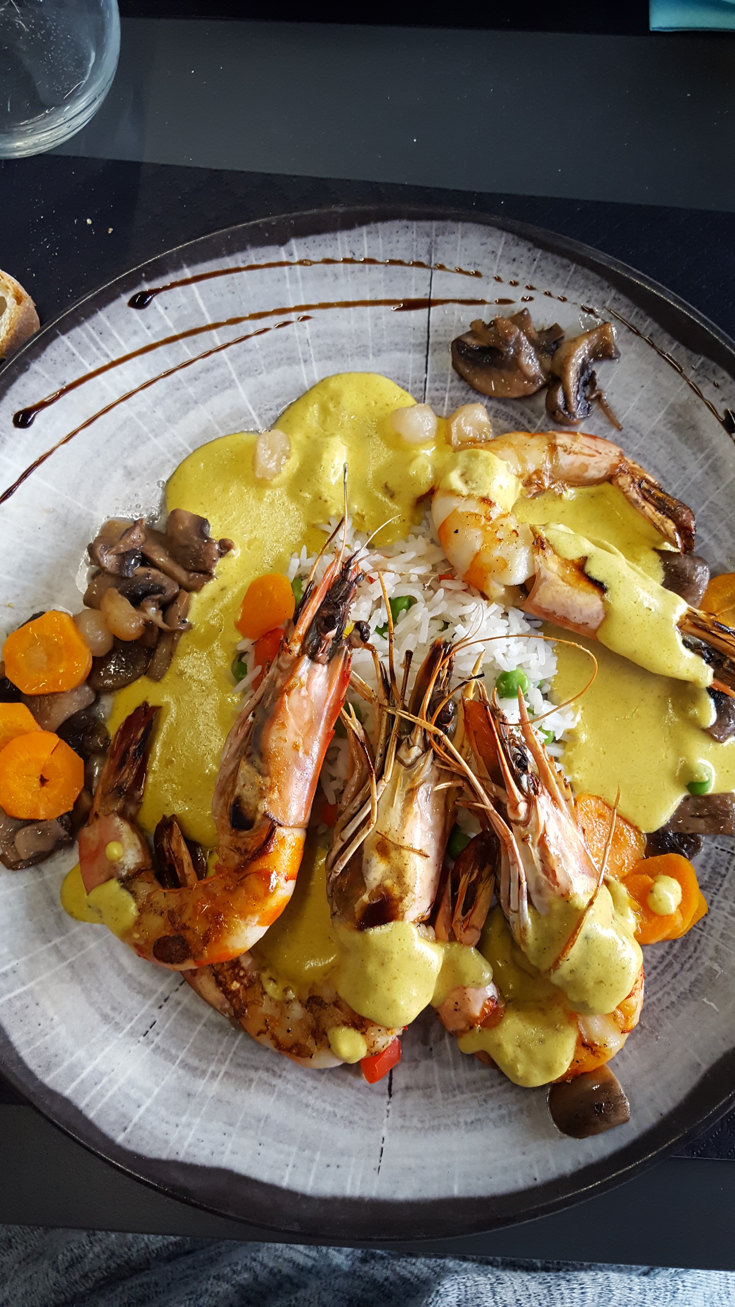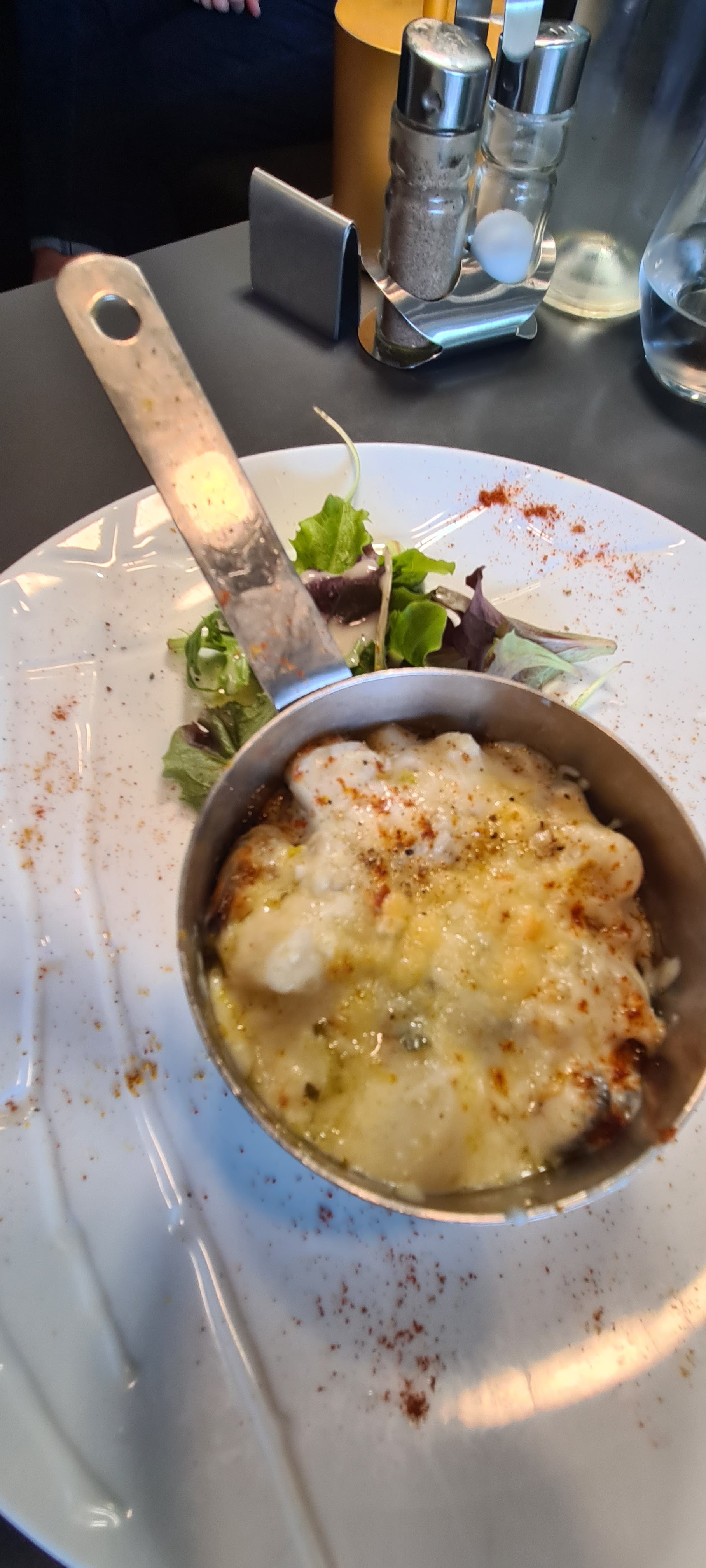 Réservé pour 20h, notre table nous attendait devant la baie vitrée ! Endroit très accueillant muni de bleu et noir. Un large choix dans les menus, concrètement, même en ayant regardé la carte avant de venir, nous avons mis du temps à nous décidés car tout avait l’air bon. On s’est rabattu sur les deux menus bien garni ! Un délice du début à la fin tellement que La gourmandise en aurait voulu plus ! Petit bémol pour le serveur qui se contente juste de prendre les assiettes sans sourire. Ça n’empêche pas son professionnalisme. Dommage qu’il ait été un peu fermé, on a le droit de pas être souriant tout les jours. Et pour conclure : Très bonne ambiance de brasserie avec un service dynamique.
