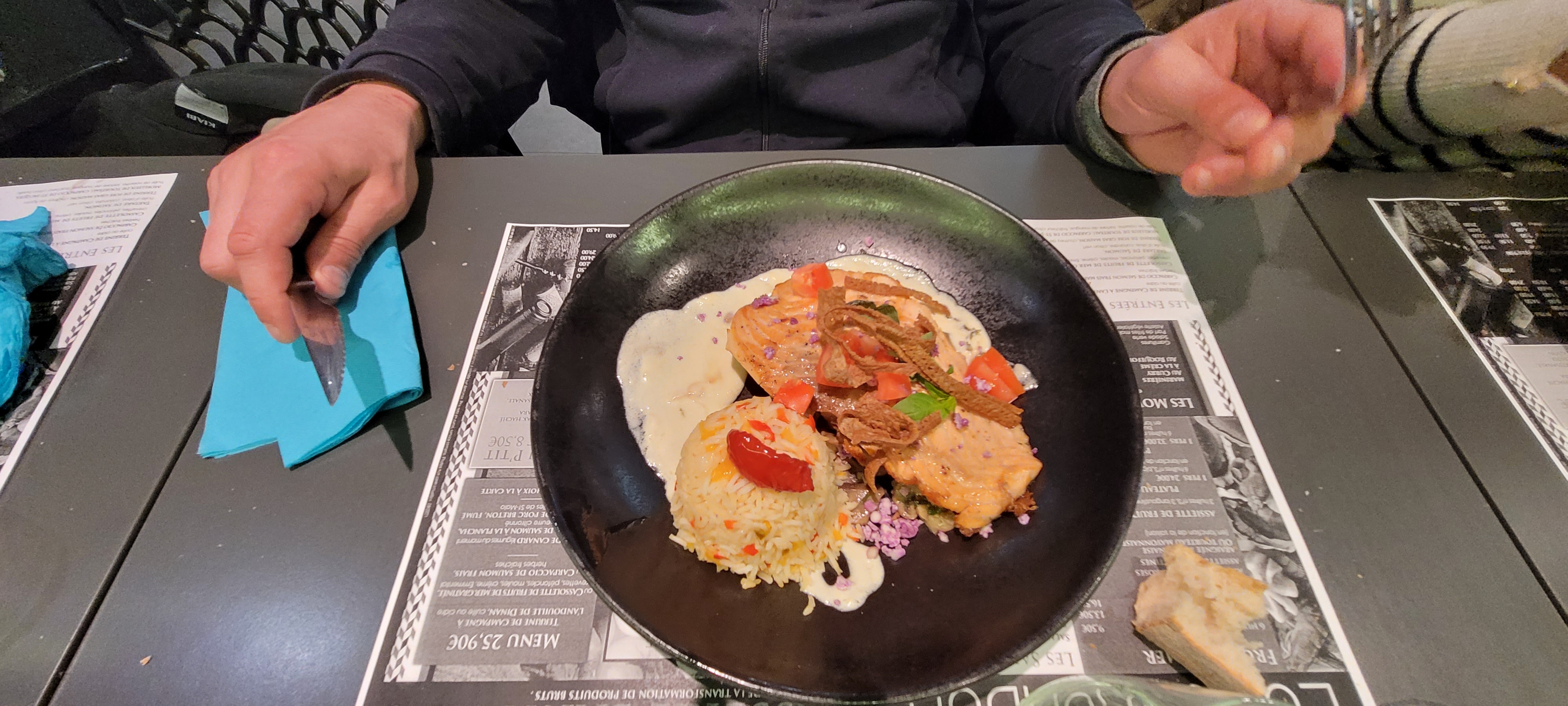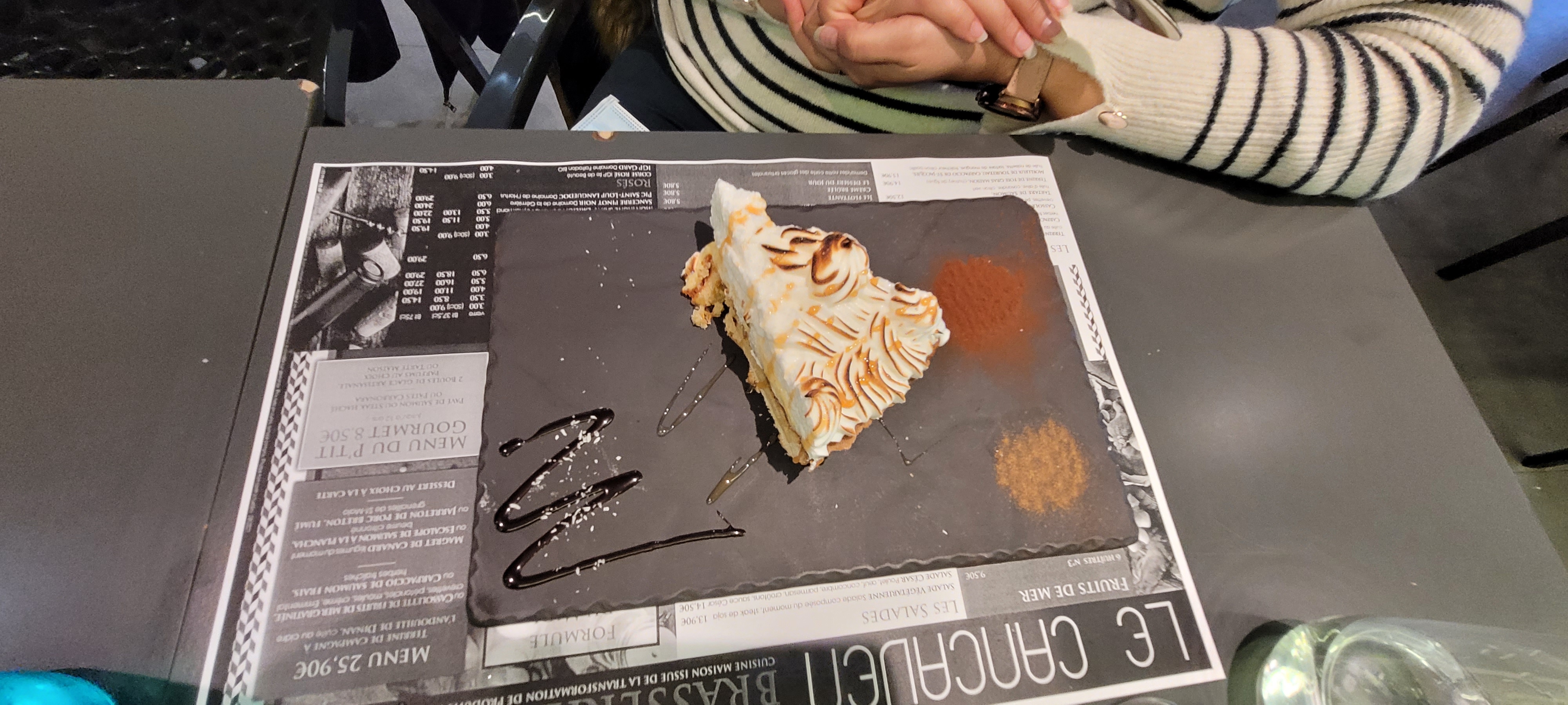 On y est allé un peu par dépit -trouver un restau à dans le centre de Dinard un Lundi midi de mars sans vous faire arracher un bras niveau tarif, ça limite le choix -, eh bien très bonne pioche : ambiance bistro des habitués, mais franchement bon accueil, service rapide et c'est bon. Dorade petit légumes et Purée de céleri pour moi, rien à dire, et madame prend ses sempiternelles pâtes carbo et pour une fois n'est pas déçue 😁. Les desserts sont bien, et le prix ne vous assomme pas. On reviendra bien volontiers.