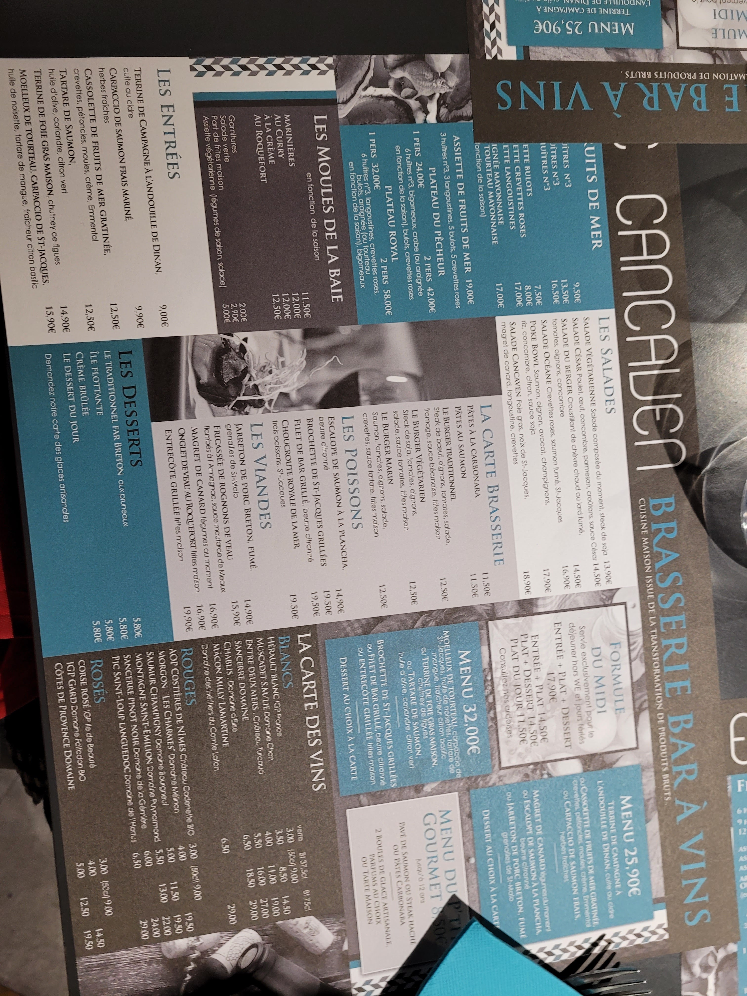 Etablissement sympa de prime abord. Plats intéressants proposés (salade, viande, poisson, moules). Nous l'avons testé à 6 le samedi 16 juillet vers 19h30. Malheureusement s'en suit quelques erreurs qui peuvent être corrigées. Les moules sont servis seules, l'accompagnement est à commander en supplément, certes cela est noté sur la carte, mais une petite précision lors de la prise de la commande n'aurait pas été déplaisante tout au contraire. Ensuite commande d'une salade Cancaven (mélange terre et mer). J'ai du attendre que le plat me soit servi et commencer à manger pour me rendre compte qu'un ingrédient le canard avait été remplacé par du jambon cru.... J'interpelle la serveuse qui a l'air au courant (mais qui ne précise rien lors du choix du plat), elle me dit que c'est dû à la grippe aviaire et qu'ils en ont parlé aux infos, cela me laisse perplexe. Du coup aucune ristourne proposée ou changement de plat. Dommage car le cadre est beau, avec un extérieur sympa et certains employés se démènent lors du service.