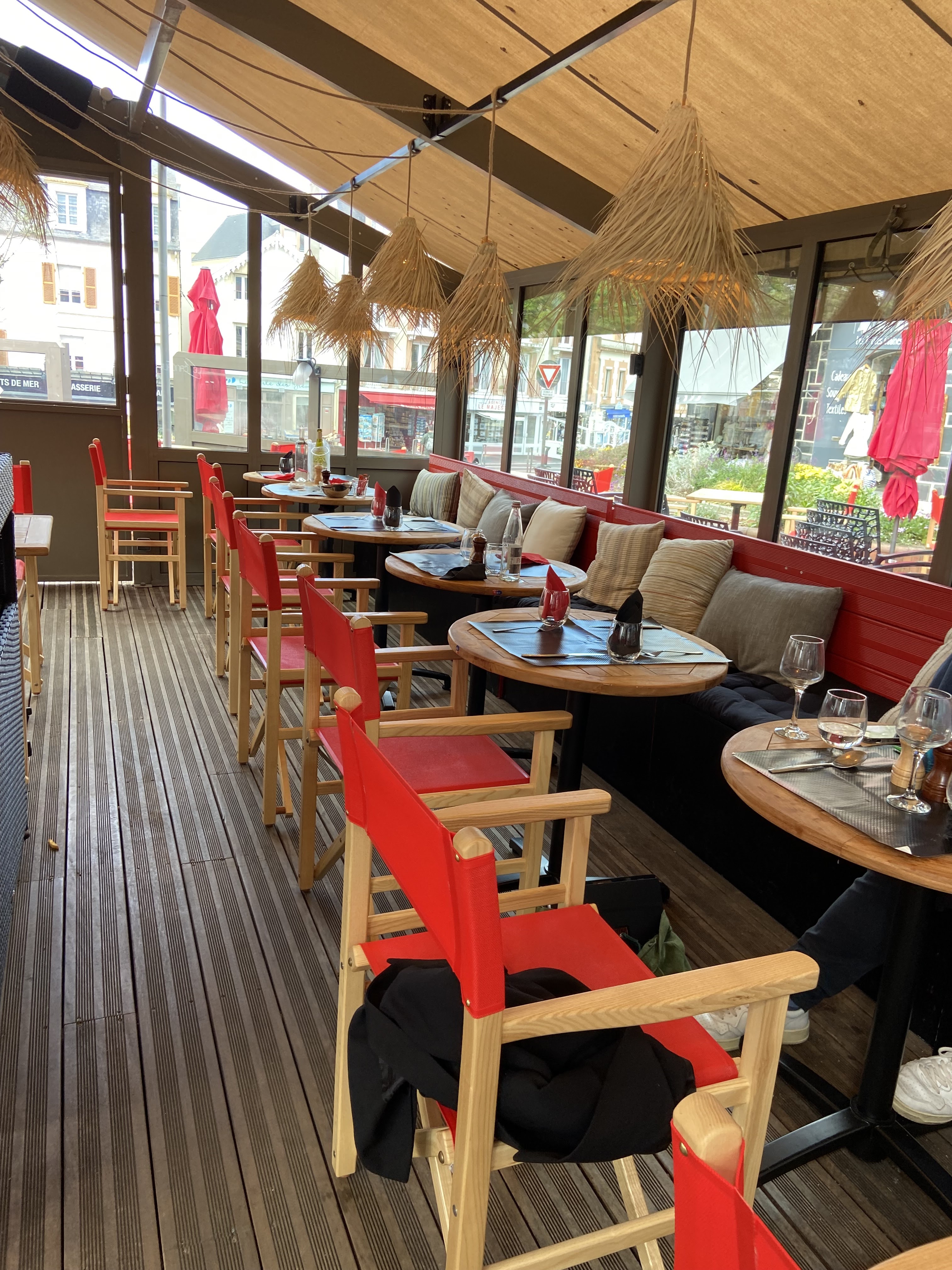 Menu du marché abordable à 19.90€ avec un espace intérieur très lumineux et accessible PMR. Déception du côté des plats : moules marinières sans persil ni oignons (... et un serveur qui ne connaît pas non plus la recette des moules marinières) servies avec des frites en même temps que l'entrée des autres personnes, légumes congelés qui baignent dans l'huile, il ne restait plus que 2 choix de desserts parmi les 6 proposés dans le menu pour une fin de repas à 14:00.