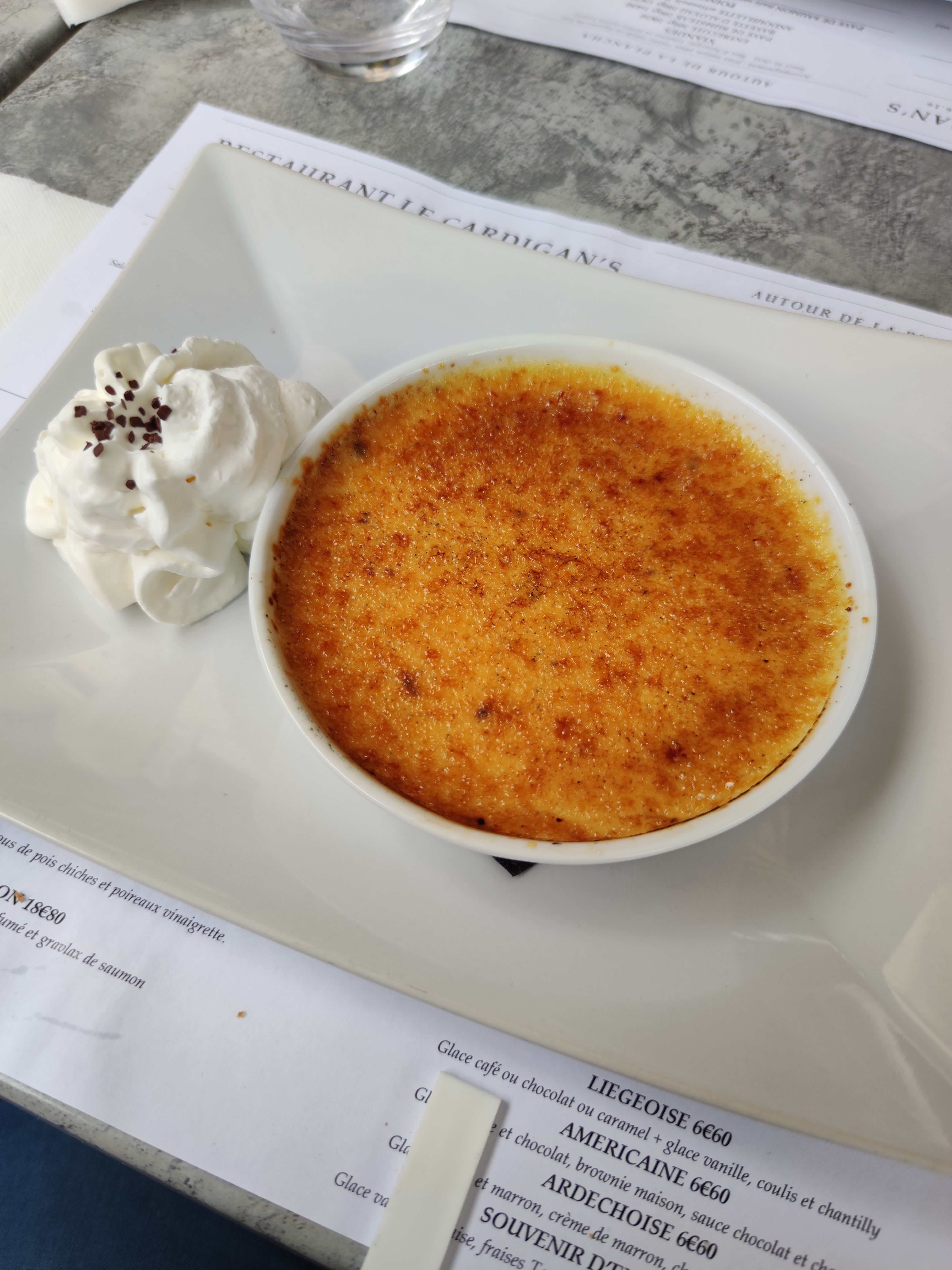 Le plat principal était très bon,cuisse de pintade farcie avec du veau. Pour le dessert il nous a apporté une panacotta au caramel alors qu'on avait demandé une panacotta à la verveine. Une croûte s'était formée sur le dessus. Pas agréable du tout.