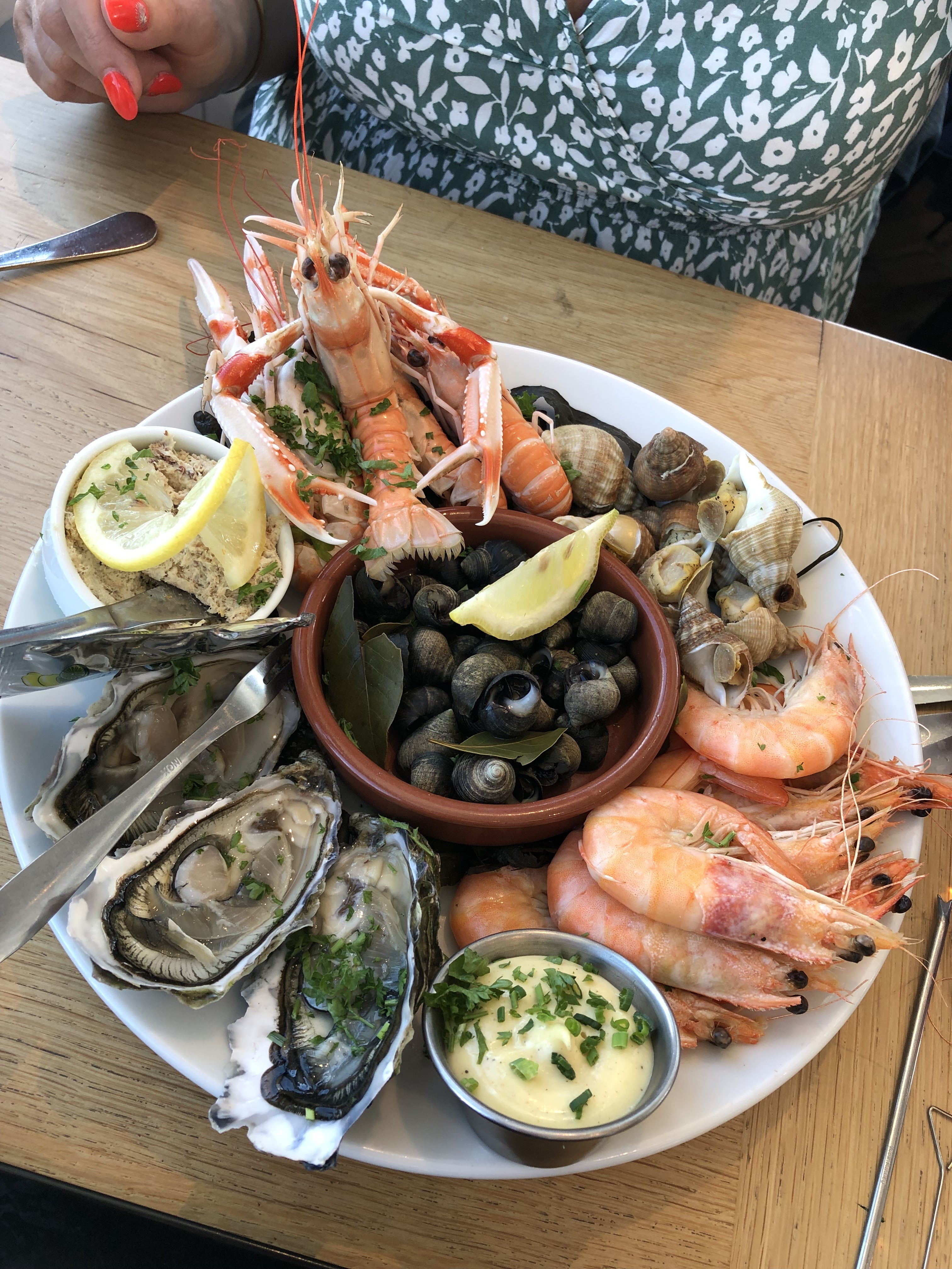 Huîtres un peu maigrichonnes mais délicieux plat principal avec fameux espadon mi-cuit au curcuma, sauce au curry et petits légumes. Très bon Muscadet. Serveuse très sympathique.
