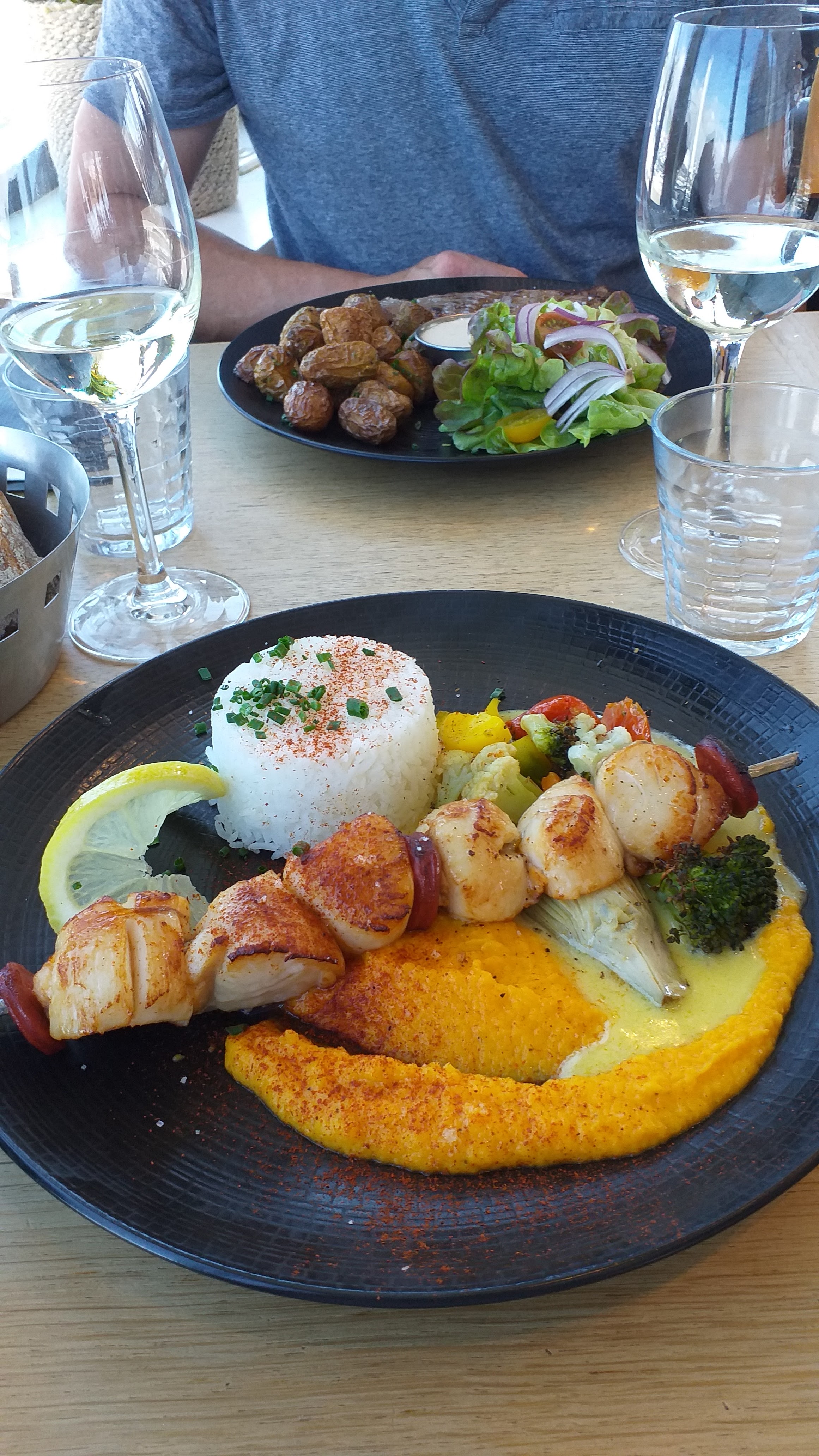 Au top, repas avec des enfants : ils se sont régalés Je conseil, un bon moment et une superbe vue et bravo pour les st Jacques 😁 Merci