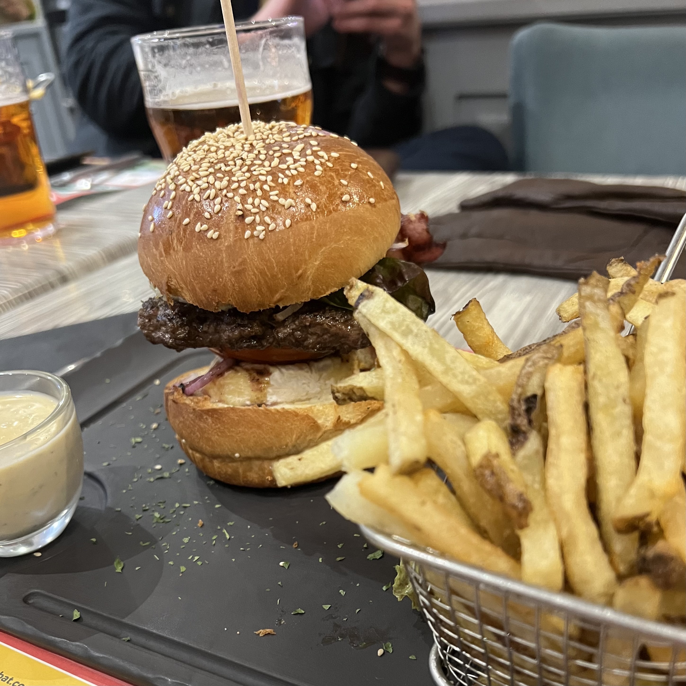 Parfait pour boire un coup. En revanche côté cuisine c’est différent, la cuisson n’est pas respectée et les burgers sont décevants !!! 2 toastinettes, 2 morceaux d’oignon et une rondelle de tomate et un gros pain, seule la viande est correcte. Pour ce tarif élevé je m’attendais à beaucoup mieux 🤨