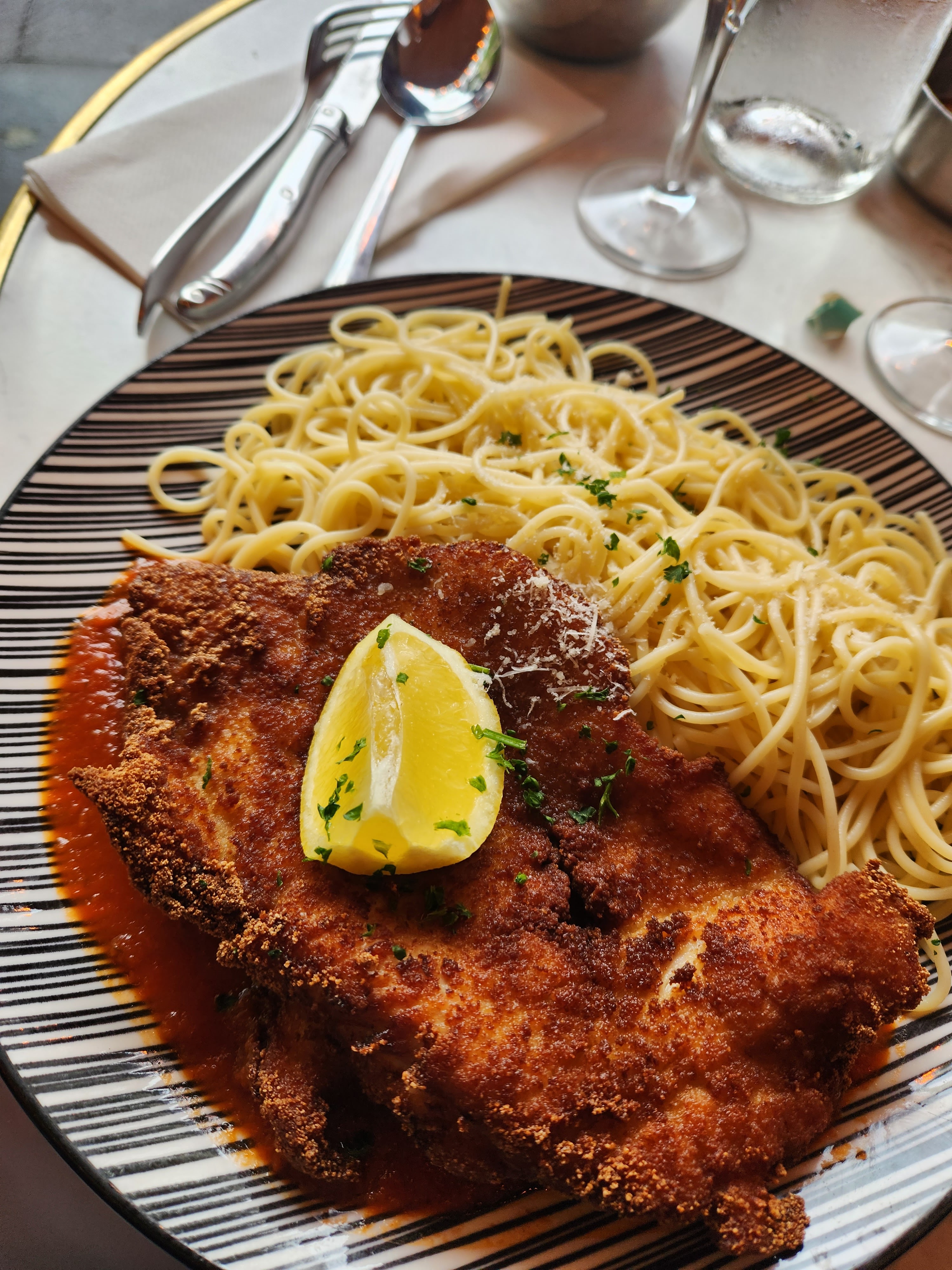 Super bistrot, très convivial et plats excellents, très copieux (pavé de saumon et escalope à la milanaise). Serveur super sympa. On s'est régalé et on a passé un super moment